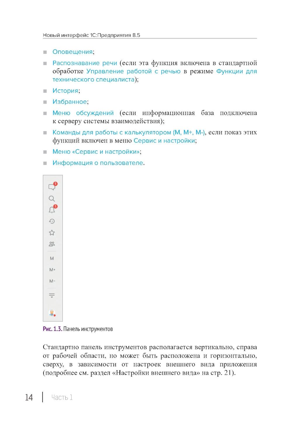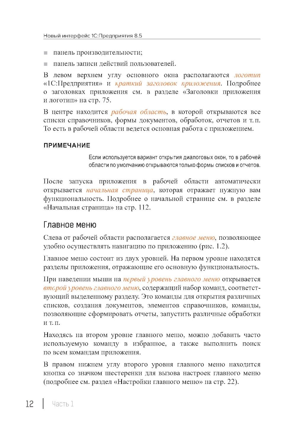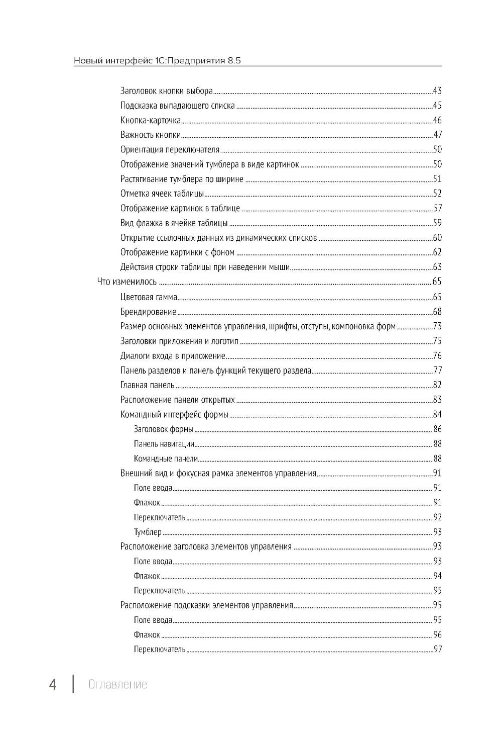 Книга содержит описание новых возможностей и изменившихся функций интерфейса, реализованных в «1С:Предприятии 8.5». Появление нового интерфейса связано с активным развитием облачных решений, веб-приложений, веб-сайтов и приложений на мобильных устройствах. Первая часть книги адресована пользователям. Она рассказывает о том, из каких элементов состоит интерфейс и как можно настраивать внешний вид и функции приложения. Вторая часть книги адресована разработчикам. Она рассказывает о том, как управлять возможностями интерфейса при разработке настольных приложений. Третья часть посвящена интерфейсу мобильных приложений. Она рассказывает о его составе, использовании и особенностях разработки. Отдельный раздел книги содержит рекомендации по переводу существующих приложений на новый интерфейс и по созданию новых приложений на платформе «1С:Предприятие 8.5». Для написания книги использована версия 8.5.1.227 платформы «1С:Предприятие 8».| Издательство | 1С-Паблишинг |