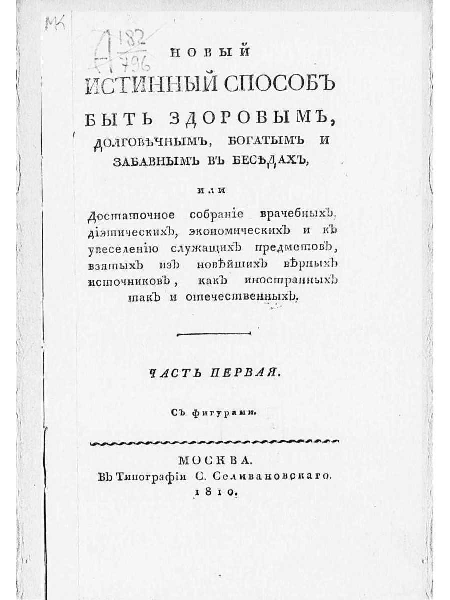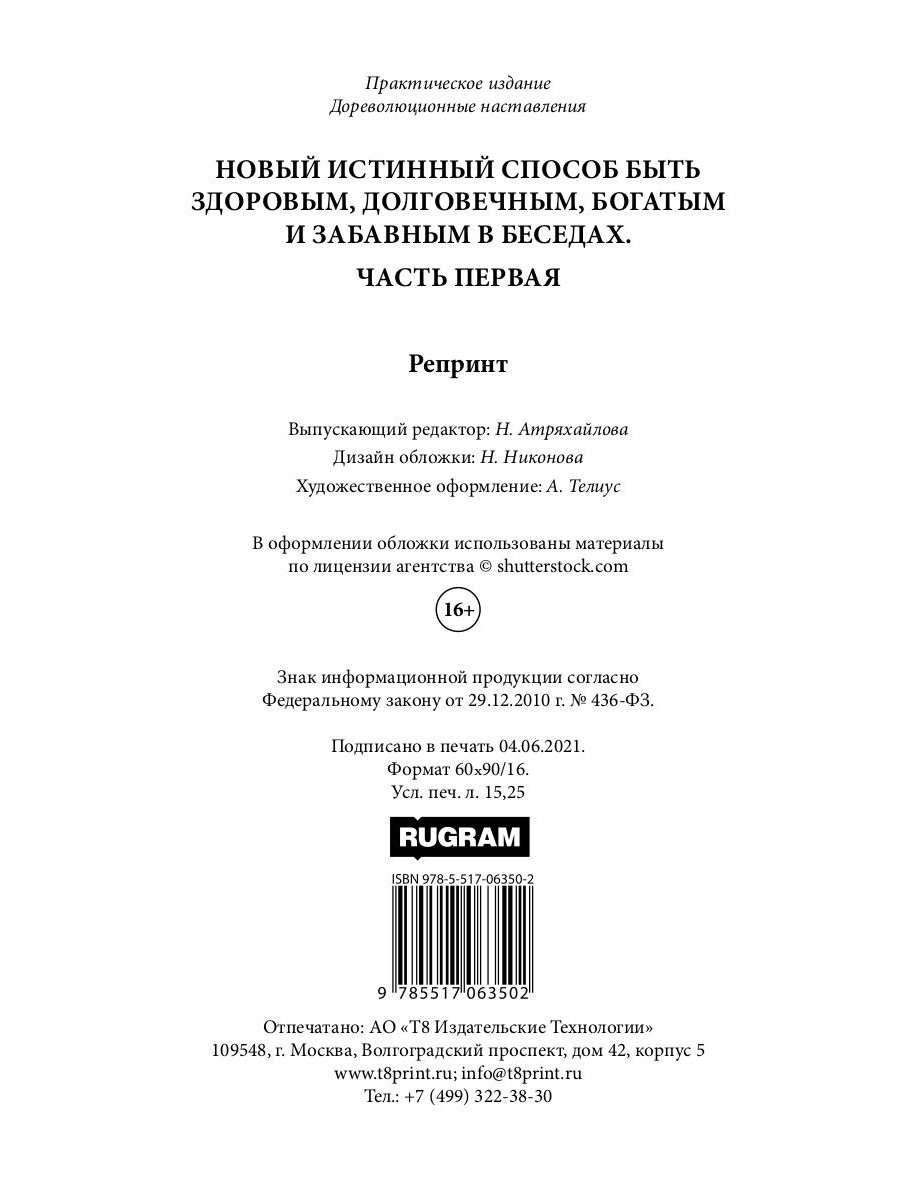 Новый истинный способ быть здоровым, долговечным, богатым и забавным в беседах. Ч. 1 (репринтное изд.)