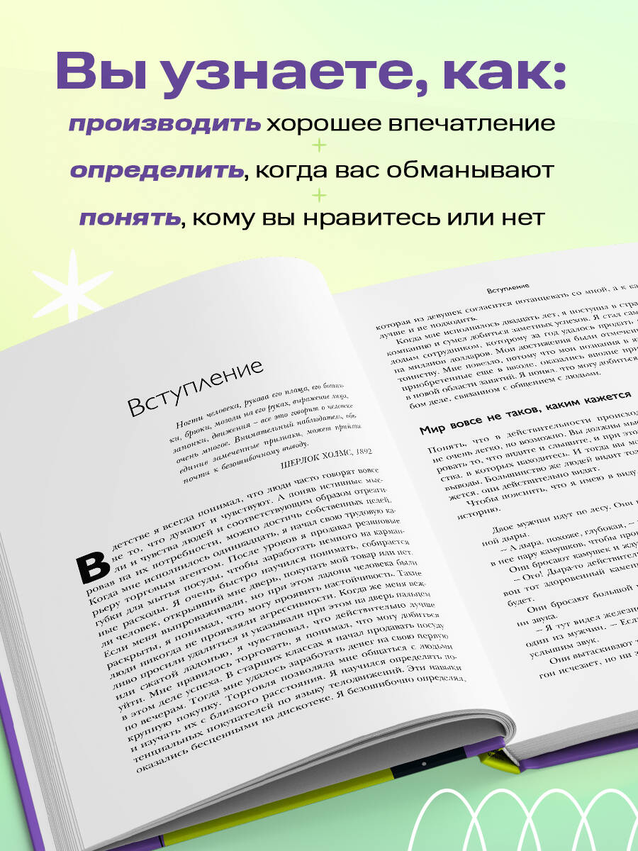 Об авторах: Аллан и Барбара Пиз - ведущие специалисты в области коммуникаций, всемирно известные психологи, авторы многочисленных международных бестселлеров по психологии общения. Для кого эта книга: Для всех, кто хочет стать мастером невербального общения. Для женщин и мужчин, желающих добиться успеха в карьере и личной жизни: • Производить хорошее впечатление. • Понимать, что вас обманывают. • Узнать, кому вы нравитесь. • Успешно проводить переговоры. Фишки: - Эффективные приемы и техники общения. - Примеры из жизни. - Расшифровка жестов в иллюстрациях. - Упражнения для усвоения материала. - «Живой» ироничный стиль повествования. - Международный бестселлер, переведенный на 48 языков. «Ногти человека, рукава его плаща, его ботинки, брюки, мозоли на его руках, выражения лица, запонки, движения - все это говорит о человеке очень многое. Внимательный наблюдатель, объединив замеченные признаки, может прийти почти к безошибочному выводу». - Шерлок Холмс| Издательство | ООО "Издательство "Эксмо" |
