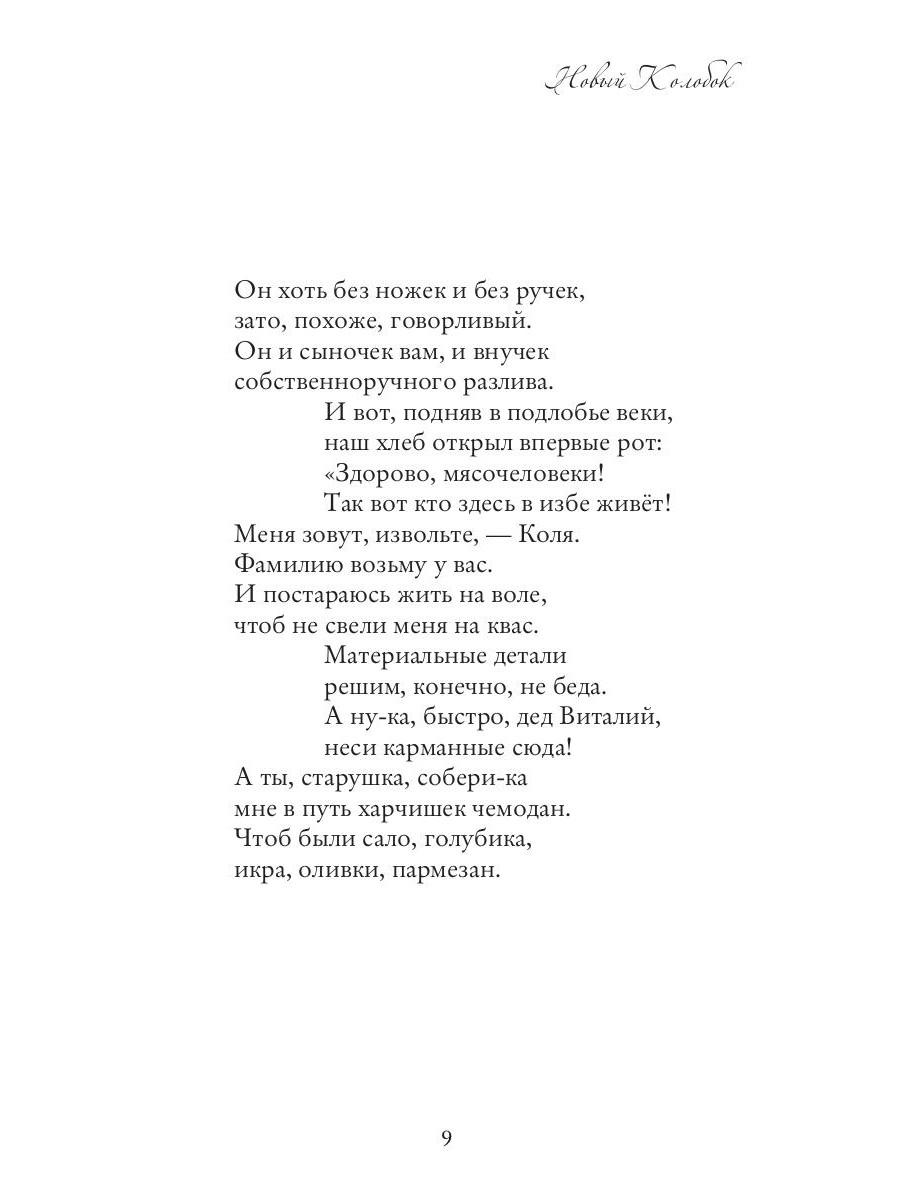 «Новый Колобок» - это стихотворная сказка современного автора о приключениях Николая Витальевича Колобкова, хлебочеловека, собранного по сусекам крестьянского дома, из которого он уходит в самостоятельное турне по родному лесу, российским просторам и Москве, встречая на пути неожиданных персонажей и выходя из непростых, зачастую, ситуаций. Никто никого не съедает, все остаются живы и здоровы (это основной принцип сказок Дедушки Вовы). Лёгкий слог автора и ненавязчивый юмор повествования доставят вам огромное удовольствие и обеспечат незабываемые впечатления.| Издательство | Рипол Классик |