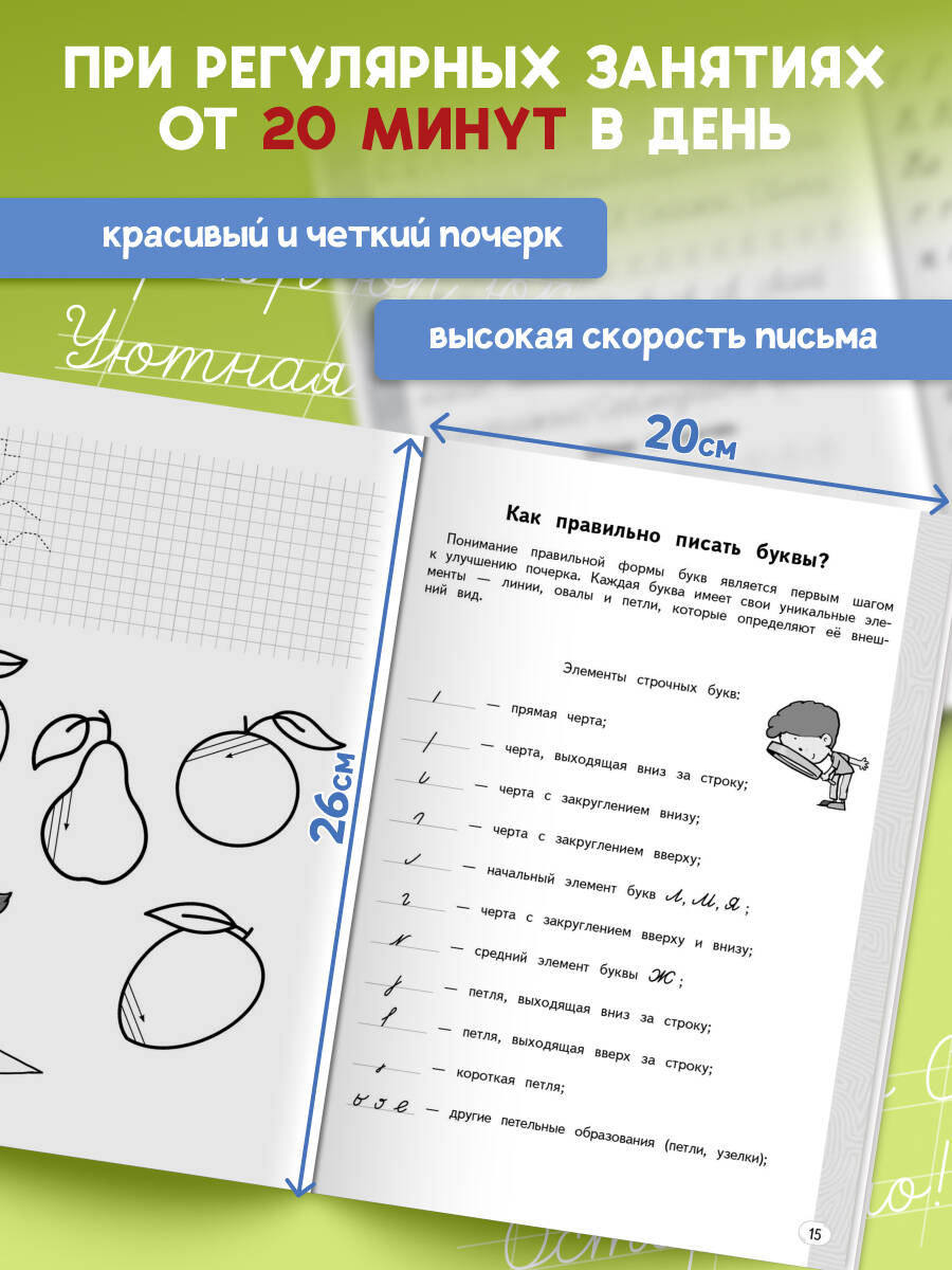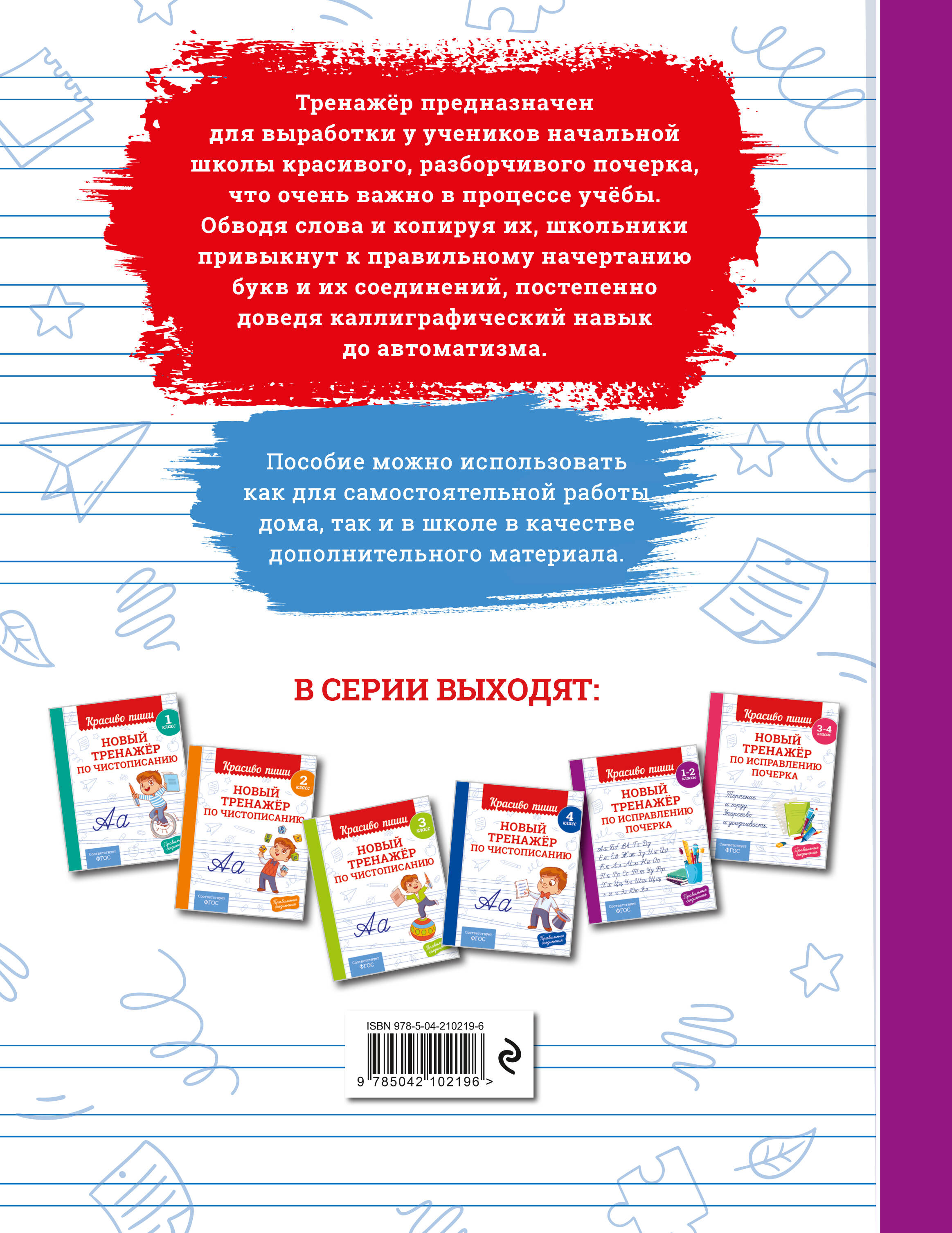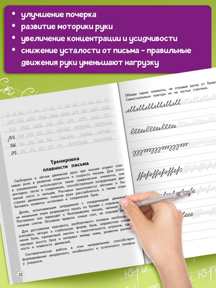 Чистописание способствует развитию устной речи, памяти и интеллекта, потому что при письме активизируются соответствующие области мозга. Помимо этого, красивый и чёткий почерк улучшает мелкую моторику, координацию движений и глазомер. Неверное написание букв и неправильное их соединение может привести к проблемам не только с правописанием, но и с изложением своих мыслей на письме. Уникальные задания по каллиграфии позволят ученикам начальной школы не только значительно улучшить почерк, но и повысить скорость письма.| Издательство | ООО "Издательство "Эксмо" |
