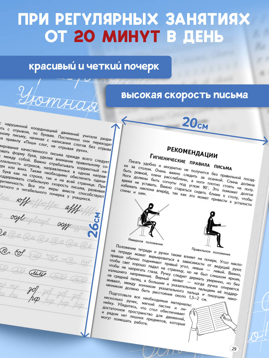 Чистописание способствует развитию устной речи, памяти и интеллекта, потому что при письме активизируются соответствующие области мозга. Помимо этого, красивый и чёткий почерк улучшает мелкую моторику, координацию движений и глазомер. Неверное написание букв и неправильное их соединение может привести к проблемам не только с правописанием, но и с изложением своих мыслей на письме. Уникальные задания по каллиграфии позволят ученикам начальной школы не только значительно улучшить почерк, но и повысить скорость письма.| Издательство | ООО "Издательство "Эксмо" |