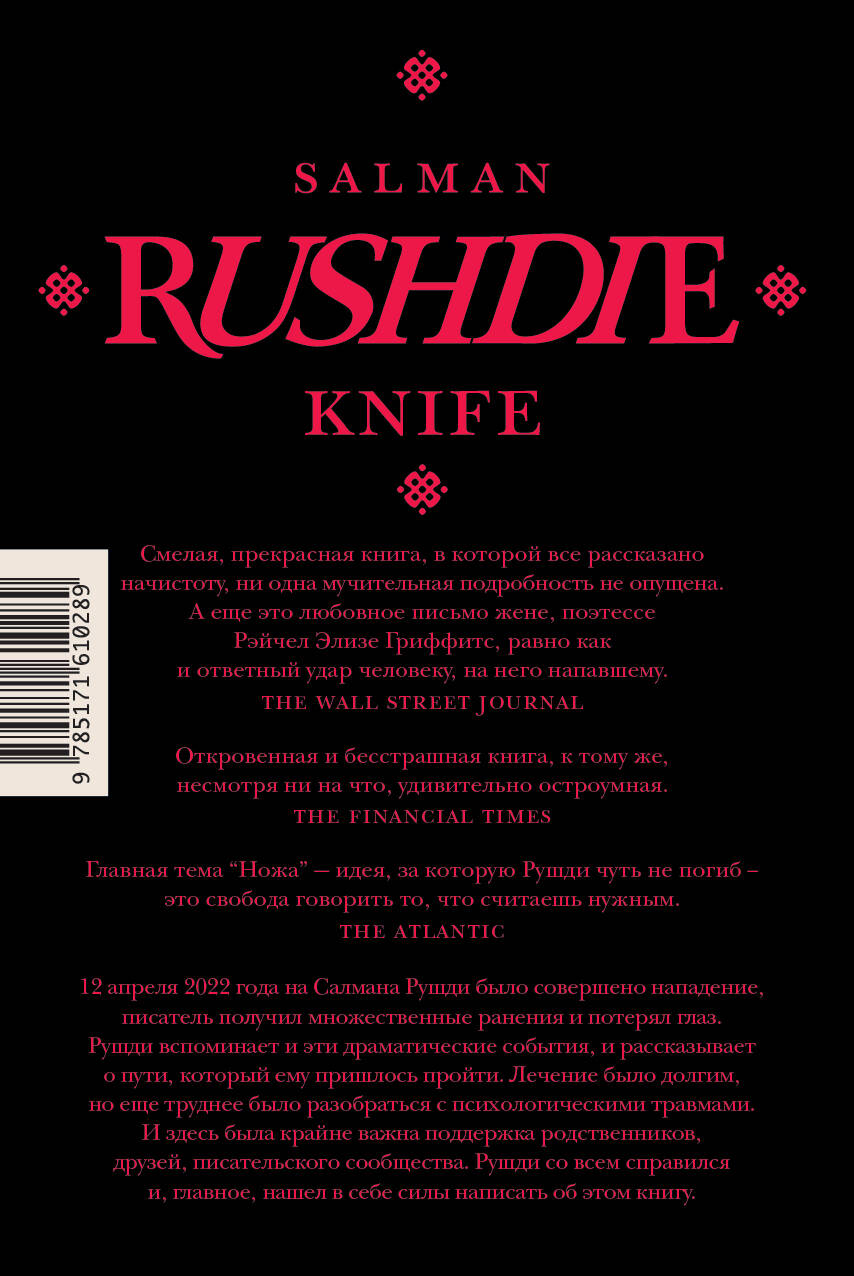 12 августа 2022 года Салман Рушди собирался выступить в городе Чатокуа, штат Нью-Йорк, с лекцией о том, как опасна может быть жизнь писателя. На Рушди напал человек, который вскочил на сцену и несколько раз ударил его ножом. Нападавший был задержан, Рушди был экстренно доставлен в больницу. Последовали долгие месяцы лечения, а потом еще и восстановления после психологической травмы. Но Рушди нашел в себе силы не только выдержать все испытания, но и написать об этом правдивую и смелую книгу. Да, ему была очень важна поддержка родственников и собратьев по писательскому цеху, но главное - он вновь отстоял право писать и говорить о том, что для него важно.| Издательство | Издательство "АСТ" |