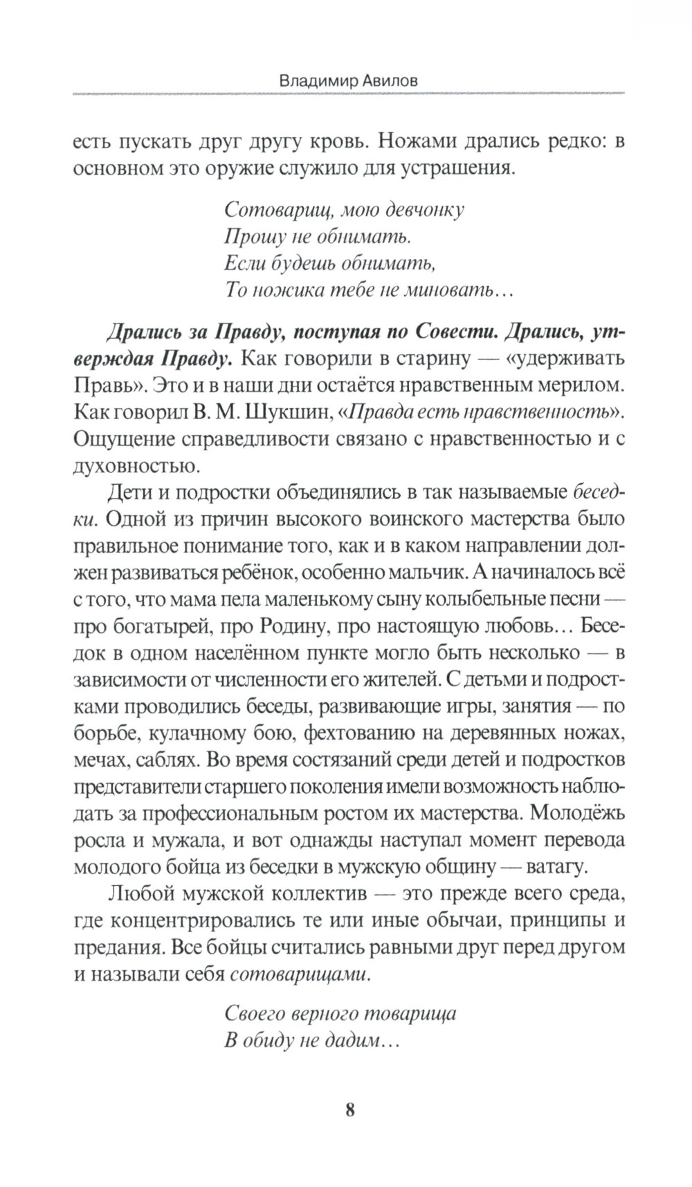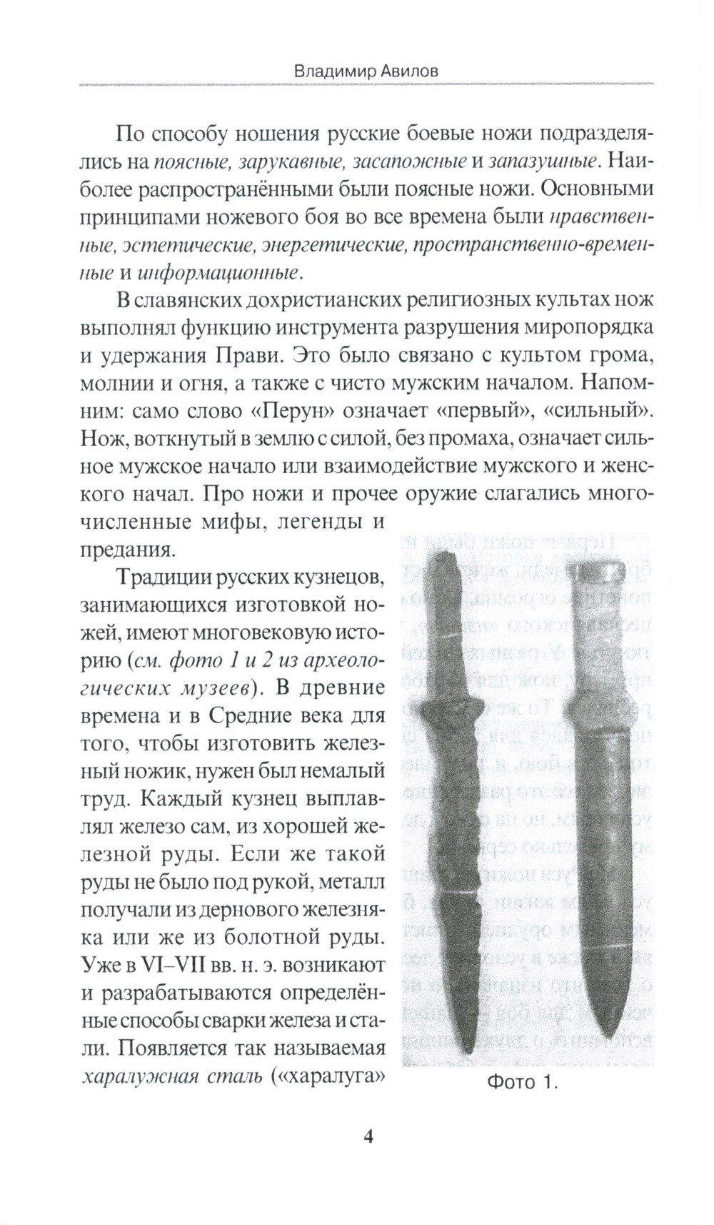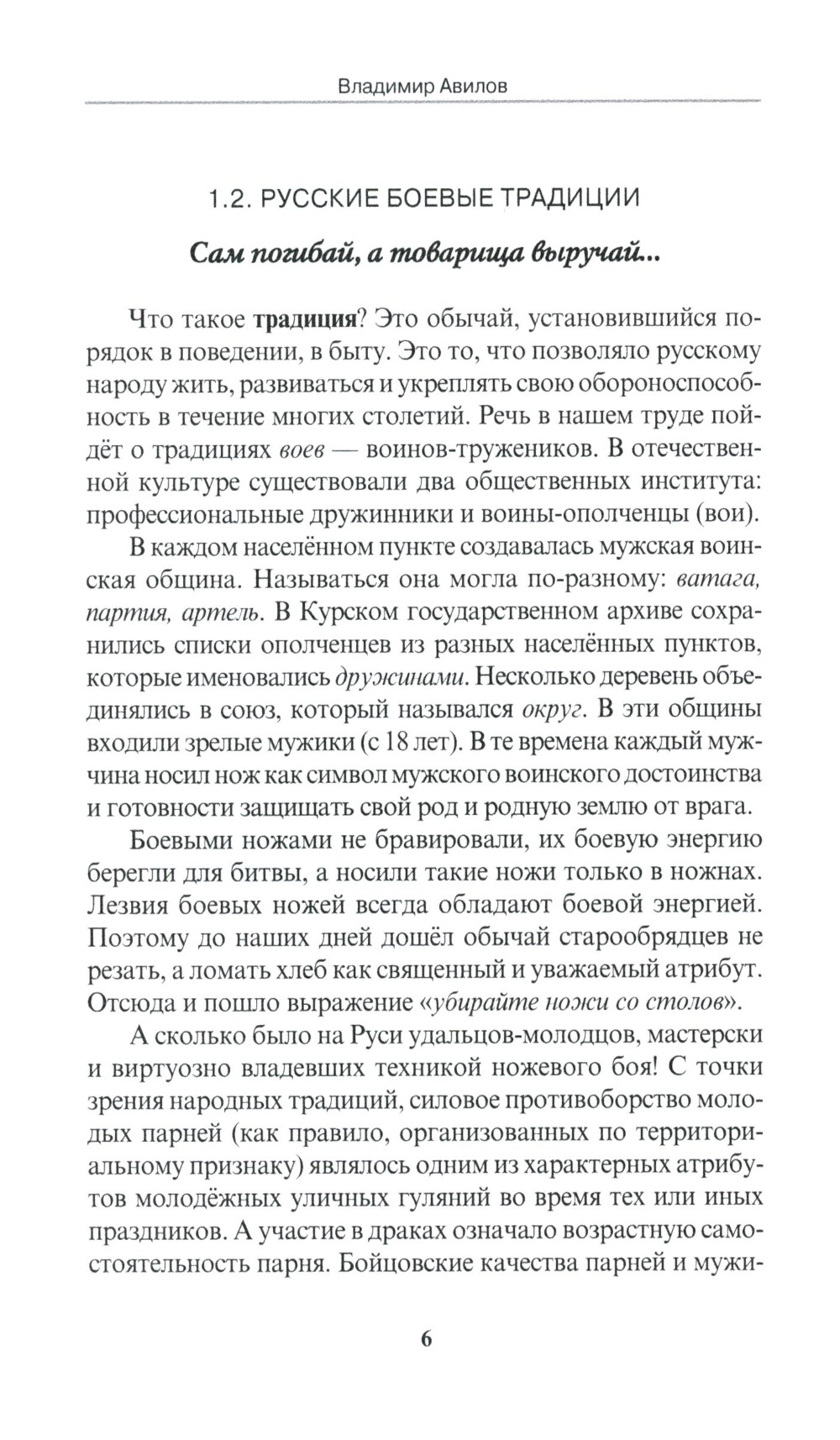 В данном учебно-методическом пособии представлены технические приёмы владения ножом и защиты от ударов ножом. Рассмотрены следующие вопросы: история ножа, отечественные боевые традиции, этнография, юридические аспекты ношения и применения ножа с позиции современных условий, а также оказание первой доврачебной помощи и психологическая подготовка. Приведены основные подготовительные упражнения, удары и способы защиты ножом, техника ведения поединка с ножом, а также методика обучения ножевому бою. Пособие адресовано всем занимающимся ножевым боем и прочими боевыми искусствами, историкам и этнографам. Владимир Иванович Авилов - тренер-инструктор по рукопашному бою, автор боевой системы «Сибирский кулак» (прикладное самбо). Фотографии сделаны Виктором Евгеньевичем Калугиным (Алтайский край, р. п. Тальменка). Ассистенты: Павел Александрович Шугалей, стаж занятий боевыми искусствами - 20 лет; Александр Шешуков (Алтайский край, р. п. Тальменка).| Издательство | Профит Стайл |
