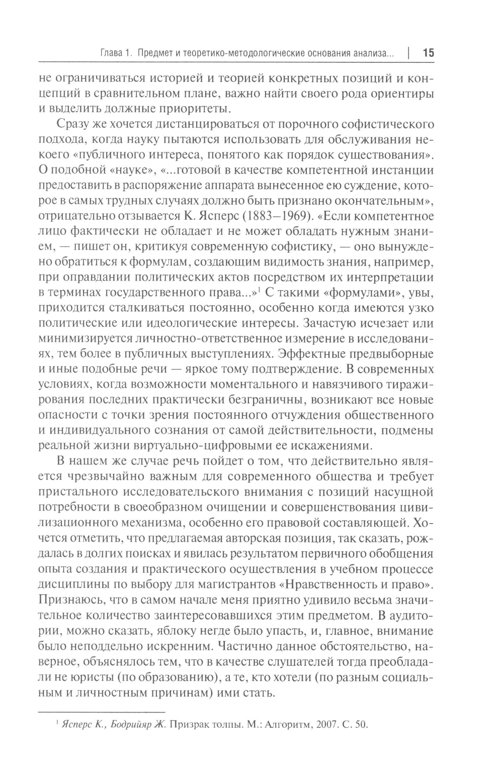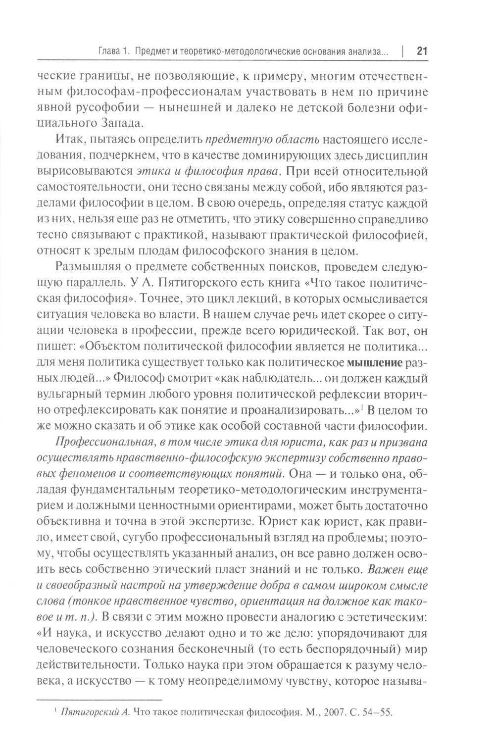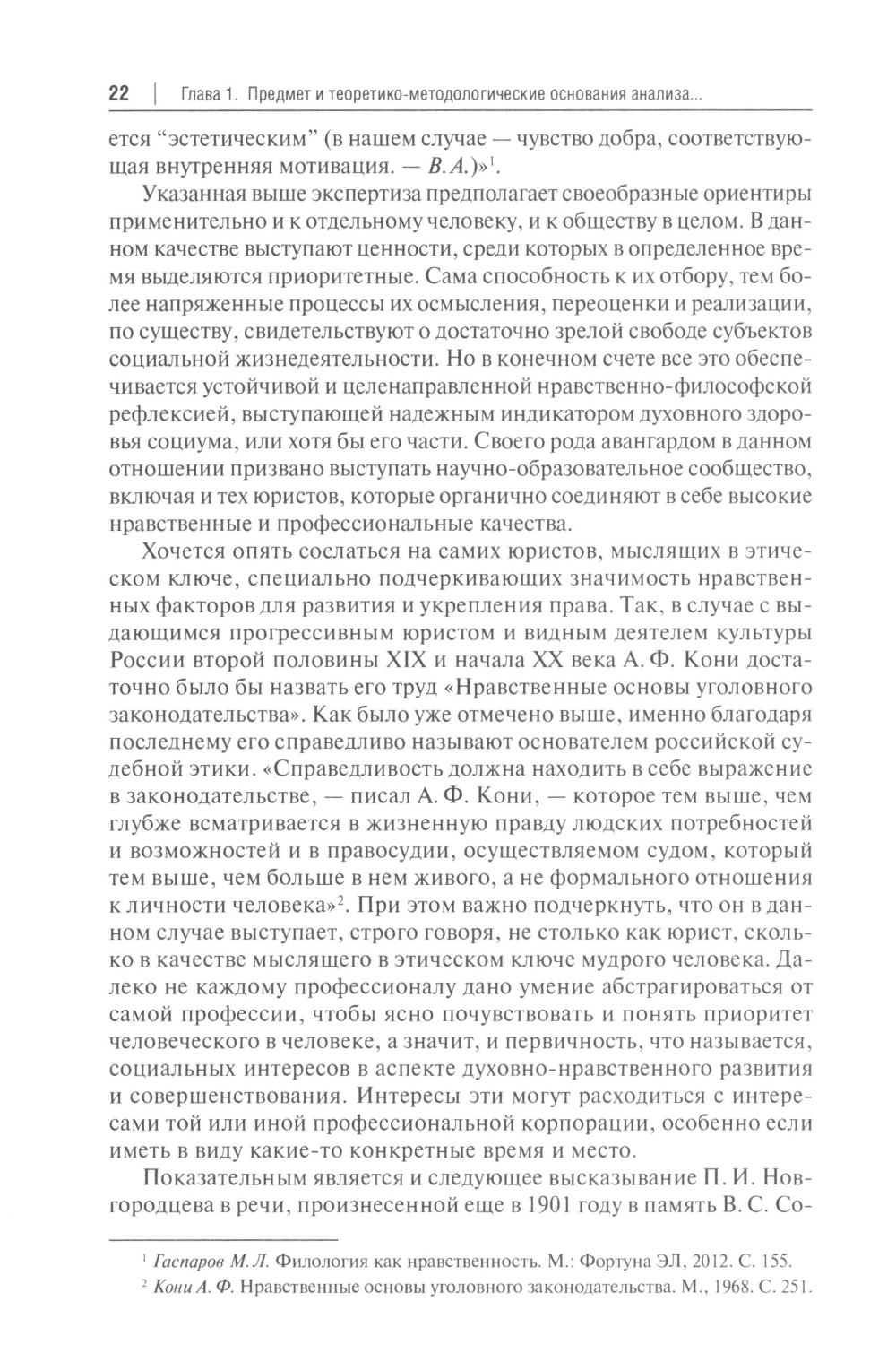 В предлагаемом издании ставится и своеобразно решается вечная и вместе с тем весьма актуальная проблема соотношения нравственности и права. Показывается, что она по существу пронизывает любую отрасль права, требуя к себе постоянного и целенаправленного внимания, прежде всего с задачей развития и совершенствования самого права и общества в целом. Прицельно рассматриваются различные этические идеи и концепции, их особенности и влияние на поиски ее адекватного решения. Автор позиционирует точку зрения, согласно которой в современных условиях спасительным и перспективным является неуклонное движение от классической концепции В. С. Соловьева («право есть минимум нравственности») к последовательной, дифференцированно взвешенной максимизации нравственности в праве. Особое внимание уделяется мировоззренческим, аксиологическим, этическим и иным философским основаниям юридической науки и практики. Настоящая работа может быть использована в качестве учебного пособия (полностью соответствует новым стандартам высшего образования по направлению «Юриспруденция») для студентов бакалавриата и магистратуры, аспирантов юридических факультетов и вузов, а также может представлять интерес для всех, кто интересуется этикой и правом в их взаимосвязи, включая преподавателей.| Издательство | Проспект |