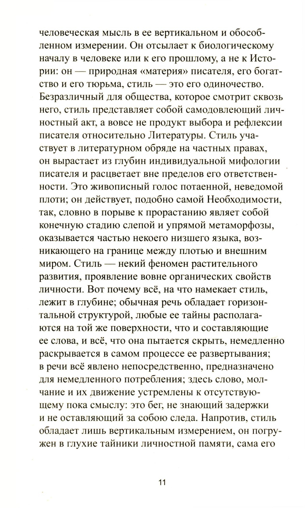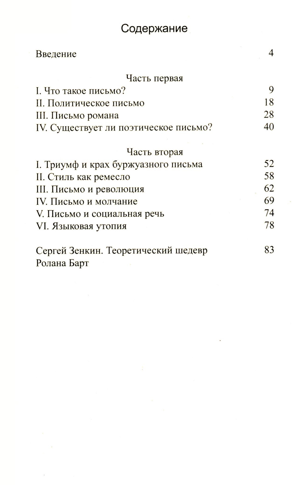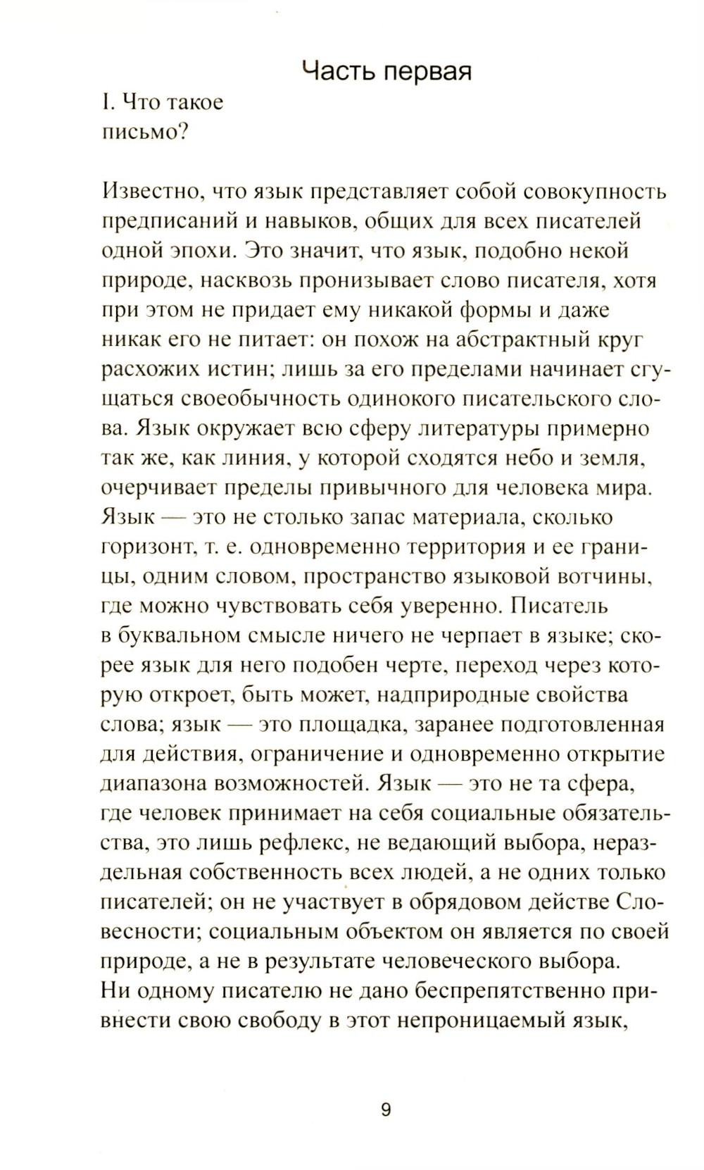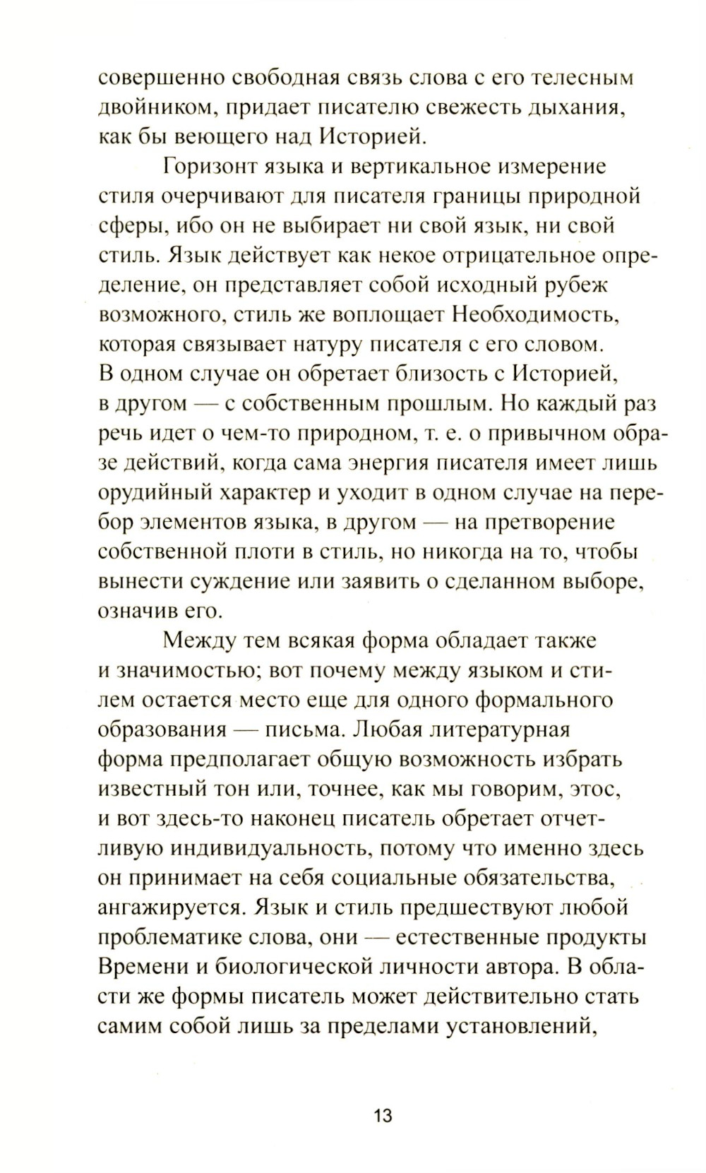 «Нулевая степень письма» (1953) - первая полноценная книга Ролана Барта, выросшая из журнальных статей 1940-х годов и написанная под впечатлением от эссе Жан-Поля Сартра «Что такое литература?». В этом основополагающем для своего дальнейшего творчества тексте Барт проводит различие между языком и стилем и определяет понятие «письмо», рассматривая этапы его эволюции, а также предлагает идею «нейтрального письма» - или «нулевой степени письма», - которое преодолевает литературу как буржуазную форму культуры. Работа стала манифестом эпохи «нового романа» и провозвестила структуралистскую революцию 1960-х. В 1999 году вошла в список ста лучших книг XX века, составленный газетой Le Monde.| Издательство | Ад Маргинем Пресс |