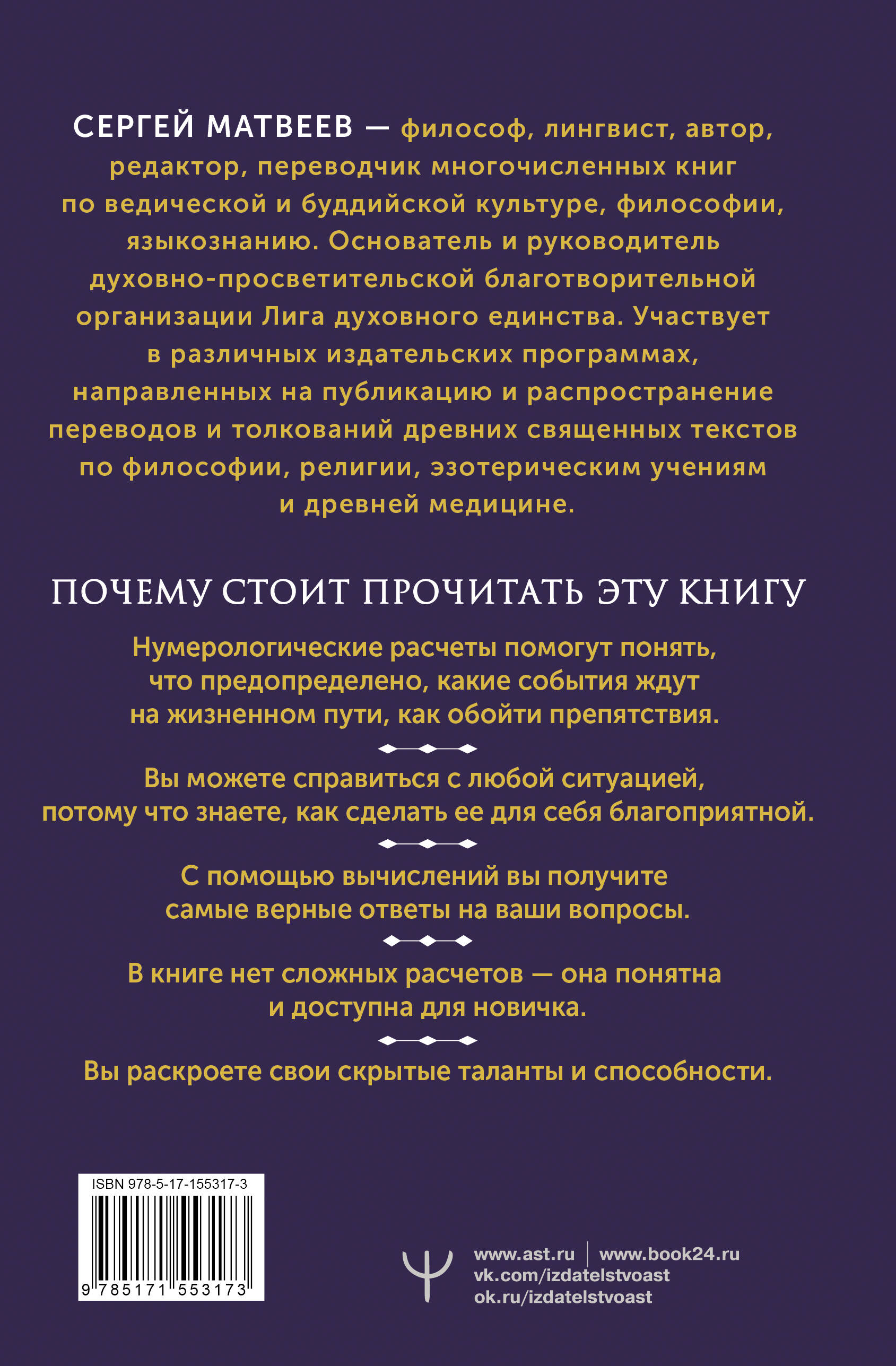 Многие великие ученые, философы, мыслители опирались на нумерологию, искали (и находили!) в ней судьбоносные подсказки. Еще Пифагор считал, что дата рождения содержит информацию о всей нашей жизни. Галилей утверждал, что математика - язык, на котором Бог написал Вселенную. Эта книга поможет вам изучить числа, которые связаны с вашей жизнью и оказывают огромное влияние на вашу судьбу. Зная законы нумерологии, вы поймете, в чем ваша настоящая сила и слабость, где кроются ваши таланты, какие препятствия встретятся на жизненном пути и как их преодолеть. Нумерология откроет вам код счастливой жизни - алгоритм достижения успеха. В этой книге вы найдете самое подробное руководство по работе с датами вашей судьбы и огромное количество нумерологических методик. - Подробные, простые и доступные даже новичку инструкции. - Расчеты, которые помогут лучше понять себя и окружающих. - Предсказание судьбы и важнейших событий жизни. - Числовой код вашего имени. Книга написана так, чтобы материал был доступен самому широкому кругу читателей.| Издательство | ИЗДАТЕЛЬСТВО "АСТ" |