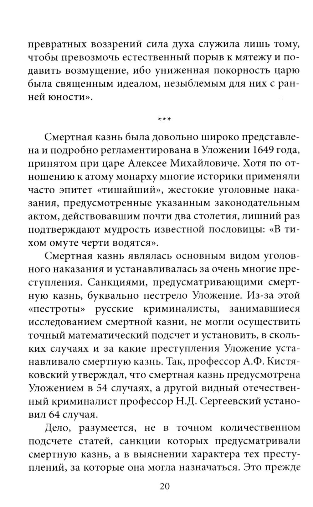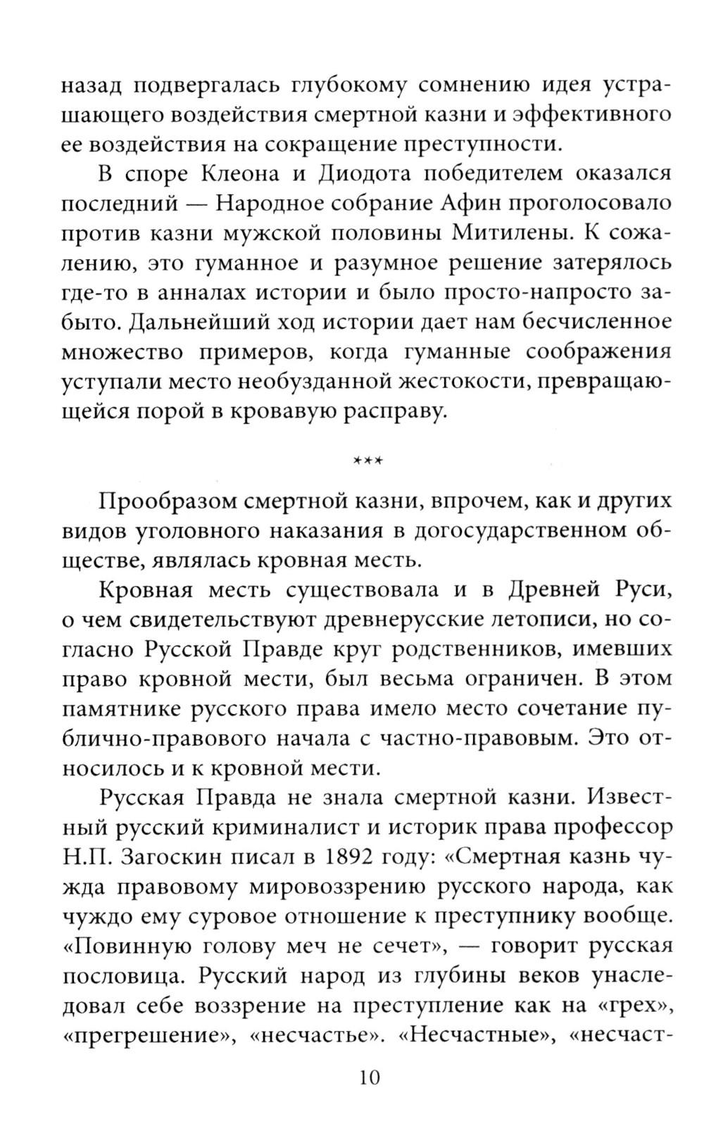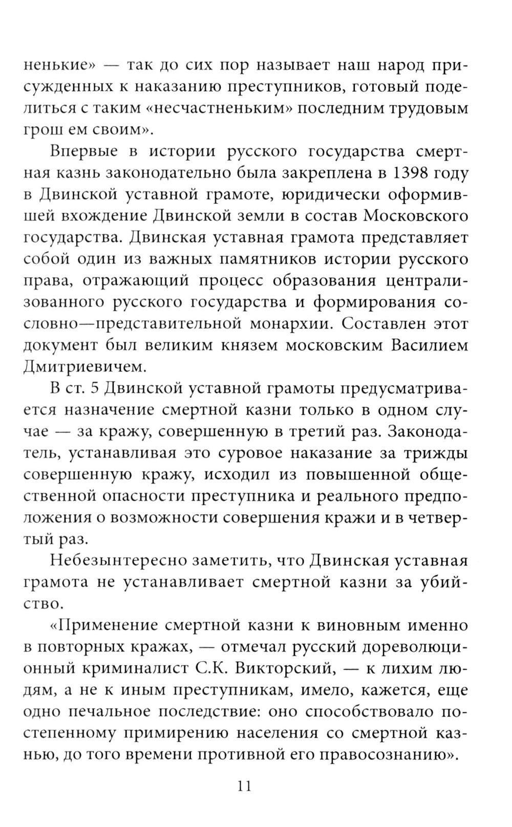 «Смертная казнь! У одних эти два коротких слова вызывают чувство ужаса и содрогание, у других - решительный протест. Можно встретить и рассуждения иного характера: если в обществе не применяется смертная казнь, преступность не сократится», - говорится в этой книге. История смертной казни в России и Европе, ее виды, многие ужасающие подробности показаны здесь для того, чтобы наглядно представить, что это такое. Аргументы за и против смертной казни приводятся как с юридической, так и с моральной точки зрения. Среди авторов книги выдающиеся русские мыслители В. С. Соловьев, С. Н. Булгаков и другие, правоведы А. Ф. Кистяковский и И. Я. Фойницкий. а также зарубежные писатели и публицисты А. Камю и А. Кёстлер.| Издательство | Родина |