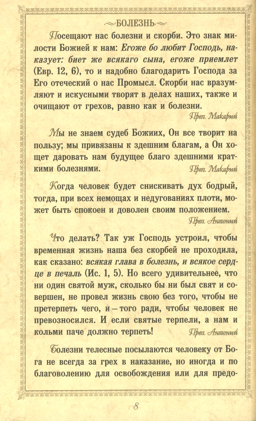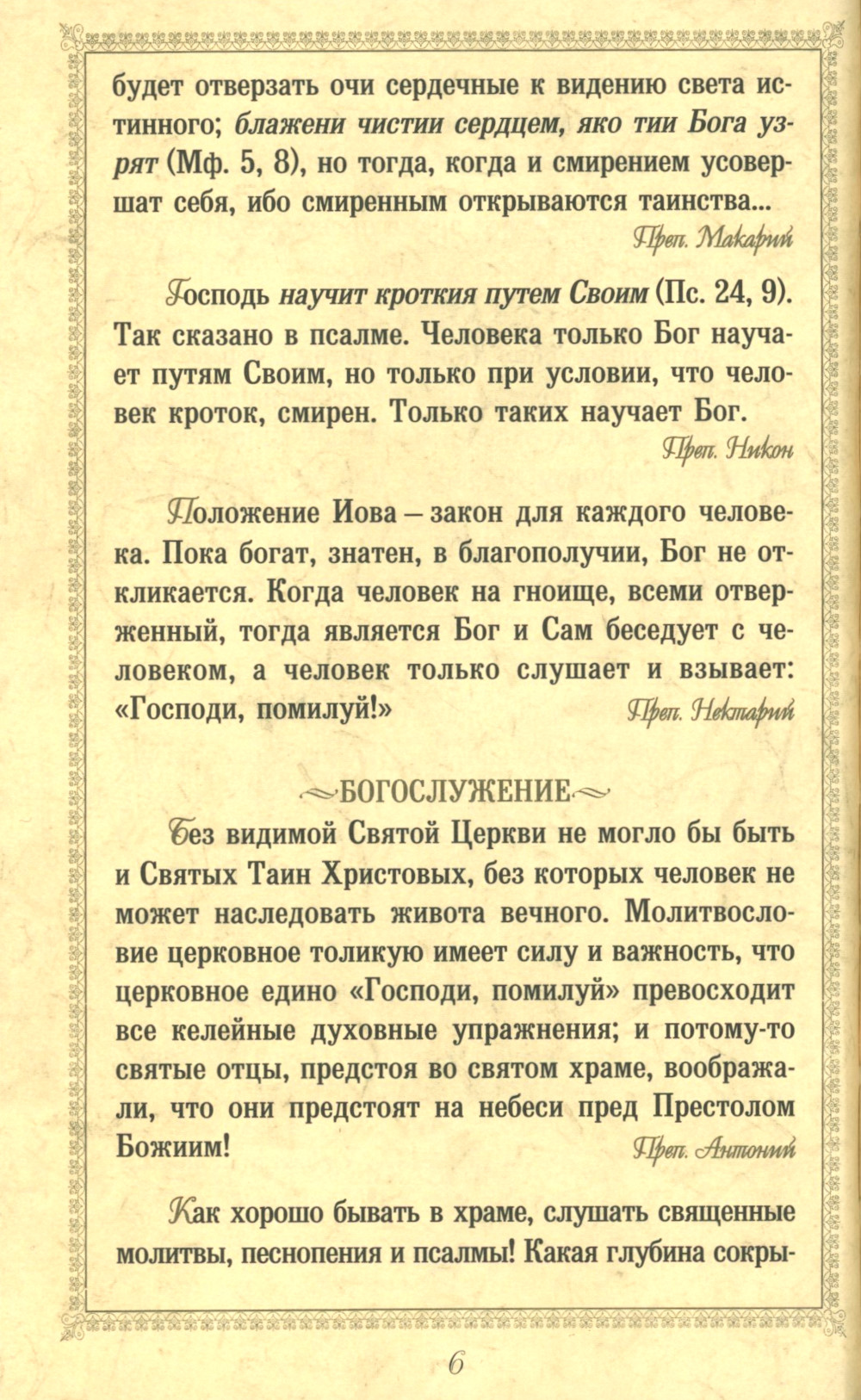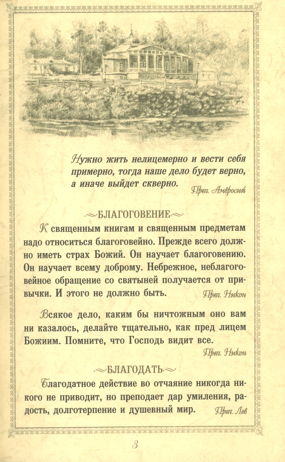 К священным книгам и священным предметам надо относиться благоговейно. Прежде всего должно иметь страх Божий. Он научает благоговению. Он научает всему доброму. Небрежное, неблагоговейное обращение со святыней получается от привычки. И этого не должно быть. Всякое дело, каким бы ничтожным оно вам ни казалось, делайте тщательно, как пред лицем Божиим. Помните, что Господь видит все. Благодатное действие во отчаяние никогда никого не приводит, но преподает дар умиления, радость, долготерпение и душевный мир.| Издательство | Введенский муж. монастырь Оптина Пустынь |
