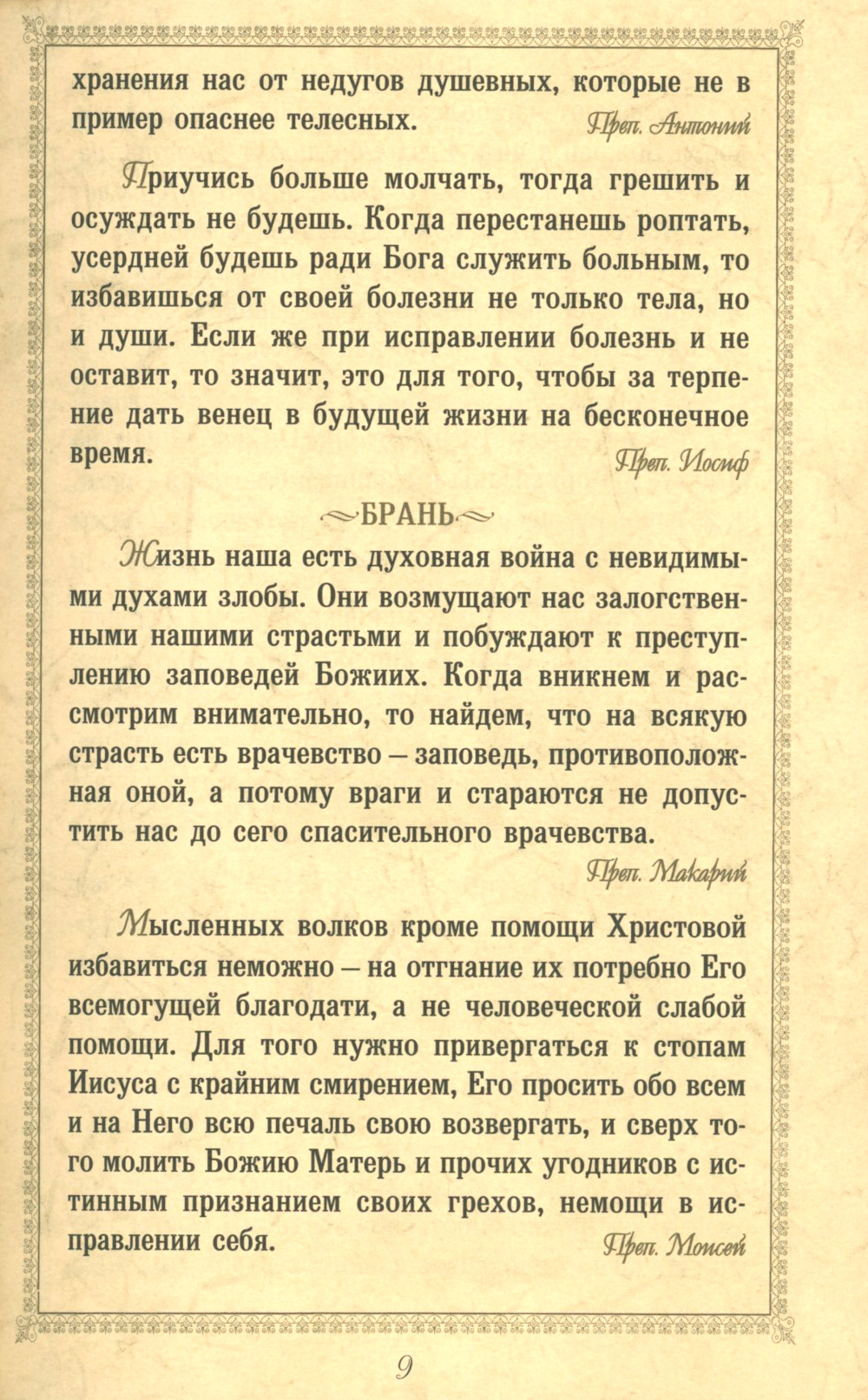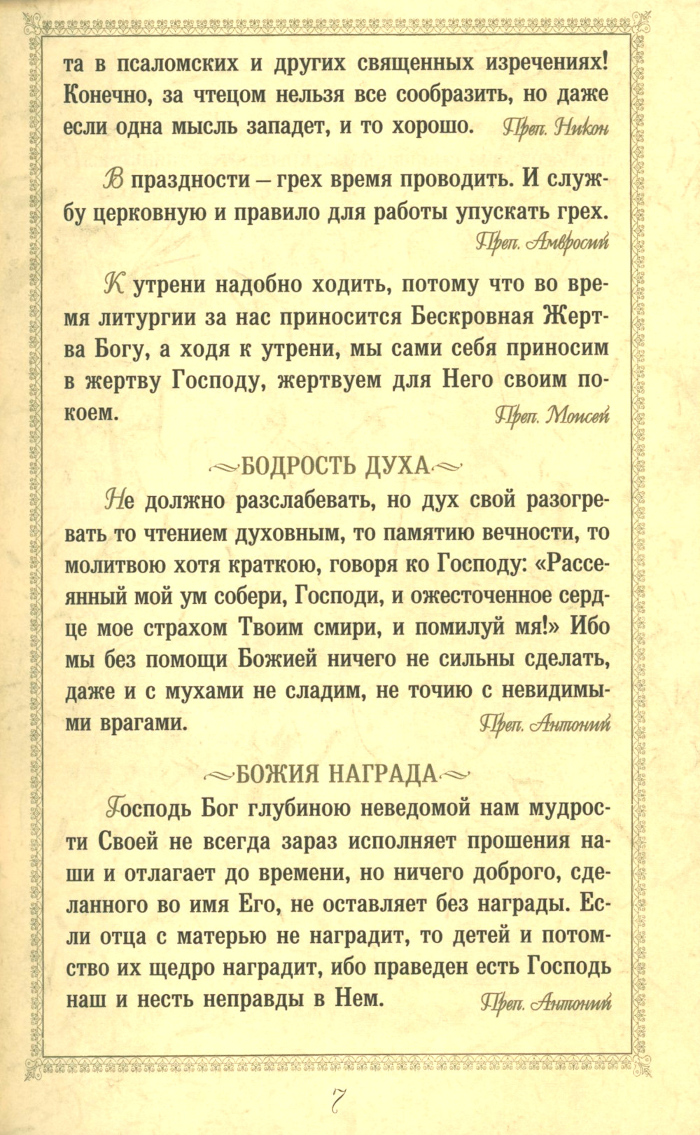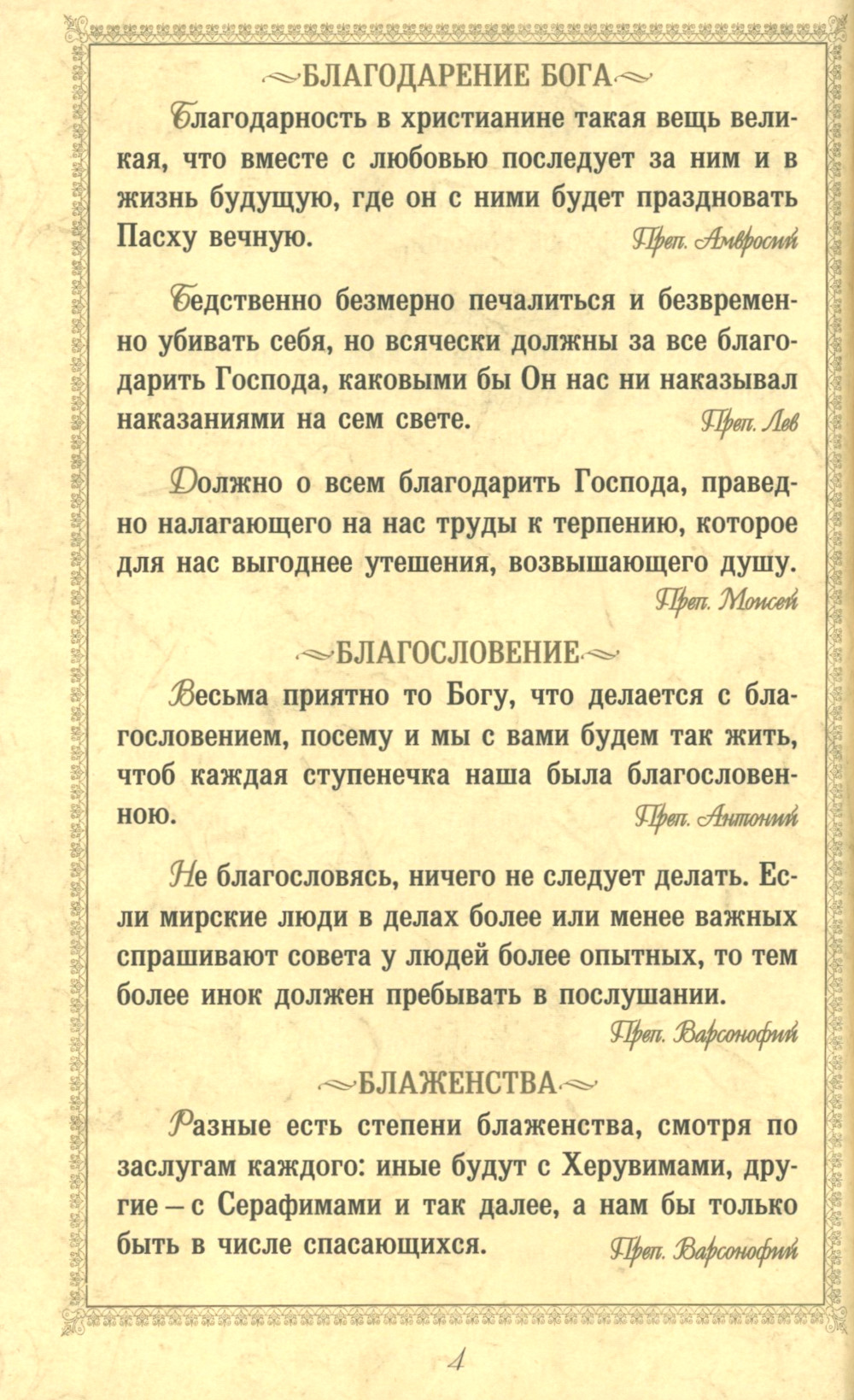 К священным книгам и священным предметам надо относиться благоговейно. Прежде всего должно иметь страх Божий. Он научает благоговению. Он научает всему доброму. Небрежное, неблагоговейное обращение со святыней получается от привычки. И этого не должно быть. Всякое дело, каким бы ничтожным оно вам ни казалось, делайте тщательно, как пред лицем Божиим. Помните, что Господь видит все. Благодатное действие во отчаяние никогда никого не приводит, но преподает дар умиления, радость, долготерпение и душевный мир.| Издательство | Введенский муж. монастырь Оптина Пустынь |