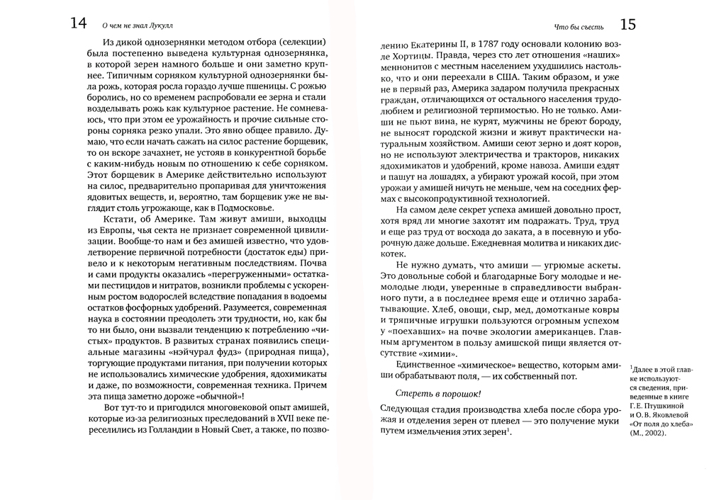 Римский военачальник Лукулл понимал толк в пирах, но вряд ли задумывался о том, какие биологические процессы лежат в основе гастрономических предпочтений. А если и задумывался, то точно был далек от правильных ответов. Многие же вопросы, которые волнуют нас, в принципе не могли у Лукулла возникнуть, поскольку он ничего не знал о продуктах, обычных на нашем столе. Но у нас-то эти вопросы появляются... Например: откуда взялся маргарин, так ли уж полезна минеральная вода, кто придумал водку, для чего в колбасе нитриты, кто и как вывел кукурузу, что такое индексы Е и зачем они нужны, почему так долго не признавали картошку, нужен ли человеку весь «витаминный алфавит» и как разобраться в противоречивых сведениях о кофе, который то ли вреден, то ли полезен? И так далее. Все то о еде, чего не мог знать Лукулл, знает научный журналист Петр Образцов, автор многих книг и разоблачитель антинаучных мифов. Разве что вопрос о происхождении русской водки он оставляет открытым, но и на этот счет рассказывает много интересного.| Издательство | ЛомоносовЪ |