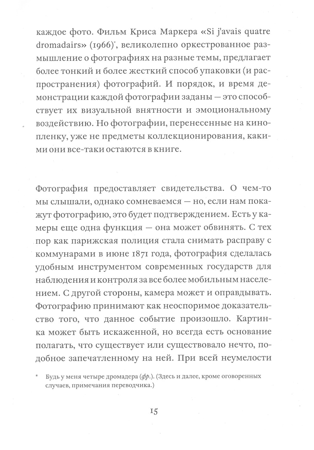Коллекция эссе Сьюзен Сонтаг «О фотографии» впервые увидела свет в виде серии очерков, опубликованных в New York Review of Books между 1973 и 1977 годами. В книге, сделавшей ее знаменитой, Сонтаг приходит к выводу, что широкое распространение фотографии приводит к установлению между человеком и миром отношений «хронического вуайеризма», в результате чего все происходящее начинает располагаться на одном уровне и приобретает одинаковый смысл. Главный парадокс фотографии заключается, согласно Сонтаг, в том, что человек, который снимает, не может вмешаться в происходящее, и, наоборот, - если он участвует в событии, то оказывается уже не в состоянии зафиксировать его в виде фотоизображения.| Издательство | Ад Маргинем Пресс |