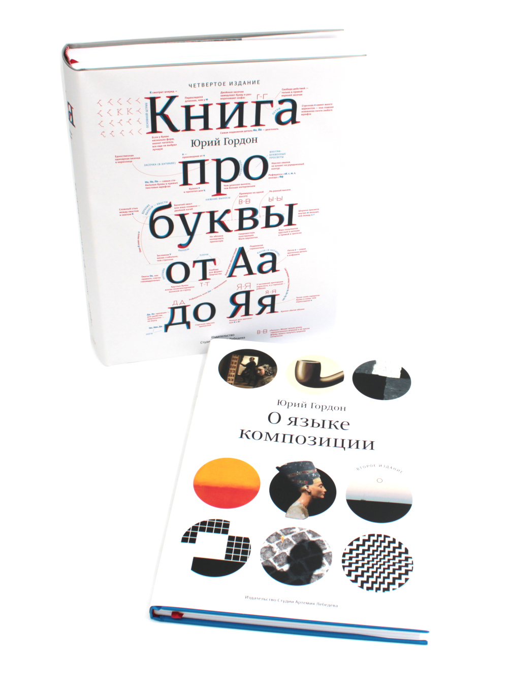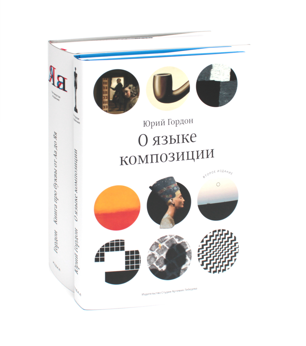 Комплект из 2 книг: «О языке композиции» и «Книга про буквы от Аа до Яя». «О языке композиции» - сборник эссе известного графика, шрифтового дизайнера и художника Юрия Гордона. Десятки лет дизайнерской практики привели его к мысли о том, что едва ли не все области человеческой деятельности подчиняются единым композиционным законам. В рамках этой теории возможны такие необычные термины, как интерфейс Сикстинской капеллы, силовые точки киноплаката и глубина проработанности шрифта. В «Книге про буквы» автор тщательно анализирует каждую букву русского алфавита, рассуждает о том, почему наши знаки для письма не столь красивы, как их латинские родственники, и что с этим может сделать дизайнер (не обязательно профессиональный шрифтовик). Книга посвящена в основном кириллическим буквам, но по ходу дела также затрагивается тема греко-римских корней нашей азбуки.| Издательство | Изд. Студии Артемия Лебедева |