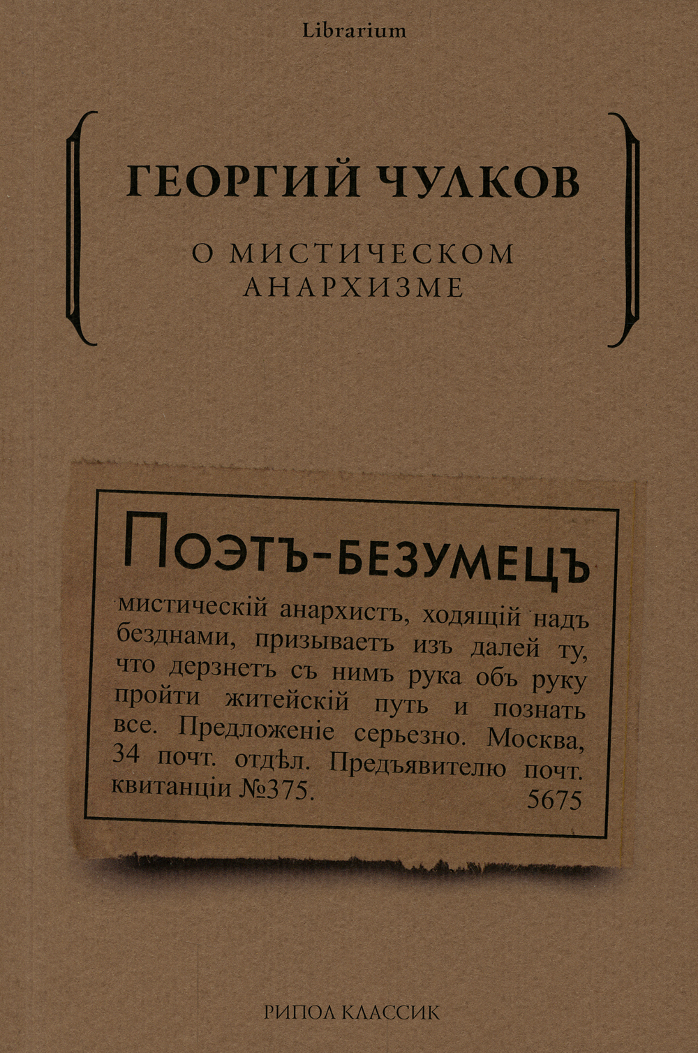 «О мистическом анархизме» - это брошюра Георгия Чулкова со вступительной статьей Вяч. Иванова, изданная «Факелами» в 1906 году. С этого безуспешного и экзотического манифеста открылась партия буквально из двух человек - авторов, попытавшихся политизировать поэзию символистов. Мы включили в сборник и статью Дмитрия Философова «Мистический анархизм» - одну из полных рецензий на издание Чулкова-Иванова. Философов, конечно, ругает за использование «соборности», рассказывая о времени, в котором подобные «идеи витали в воздухе». Помимо очевидного возмущения были и милые отклики, примером может служить объявление о поиске подруги одним «мистическим анархистом», которое мы вынесли на обложку этой книги. Предваряет издание статья Александра Маркова, в которой он помогает читателю разобраться с реакциями и контекстом, больше узнать о Георгии Чулкове.| Издательство | Рипол Классик |