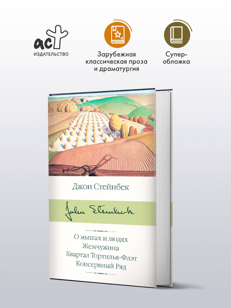 "О мышах и людях". Крестный путь двух бродяг, колесящих по охваченному Великой депрессией американскому Югу и нашедших пристанище на богатой ферме, где их появлению суждено стать толчком для жестокой истории любви, убийства и страшной, безжалостной мести… "Жемчужина". Очаровательная и поэтичная притча о загадочной жемчужине, перевернувшей жизнь веселых обитателей бедного квартала приморского городка, - история о человеческой жадности, настоящей дружбе и неизбывной любви к красоте. "Квартал Тортилья-Флэт" и "Консервный ряд" - два произведения, посвященные колоритному миру трущоб калифорнийского города Монтерея 1930-х годов. Читателю предстоит знакомство с очень необычными персонажами, потомками индейцев, мексиканцев и американцев, - благородными плутами и самоотверженными хитрецами.| Издательство | ИЗДАТЕЛЬСТВО "АСТ" |