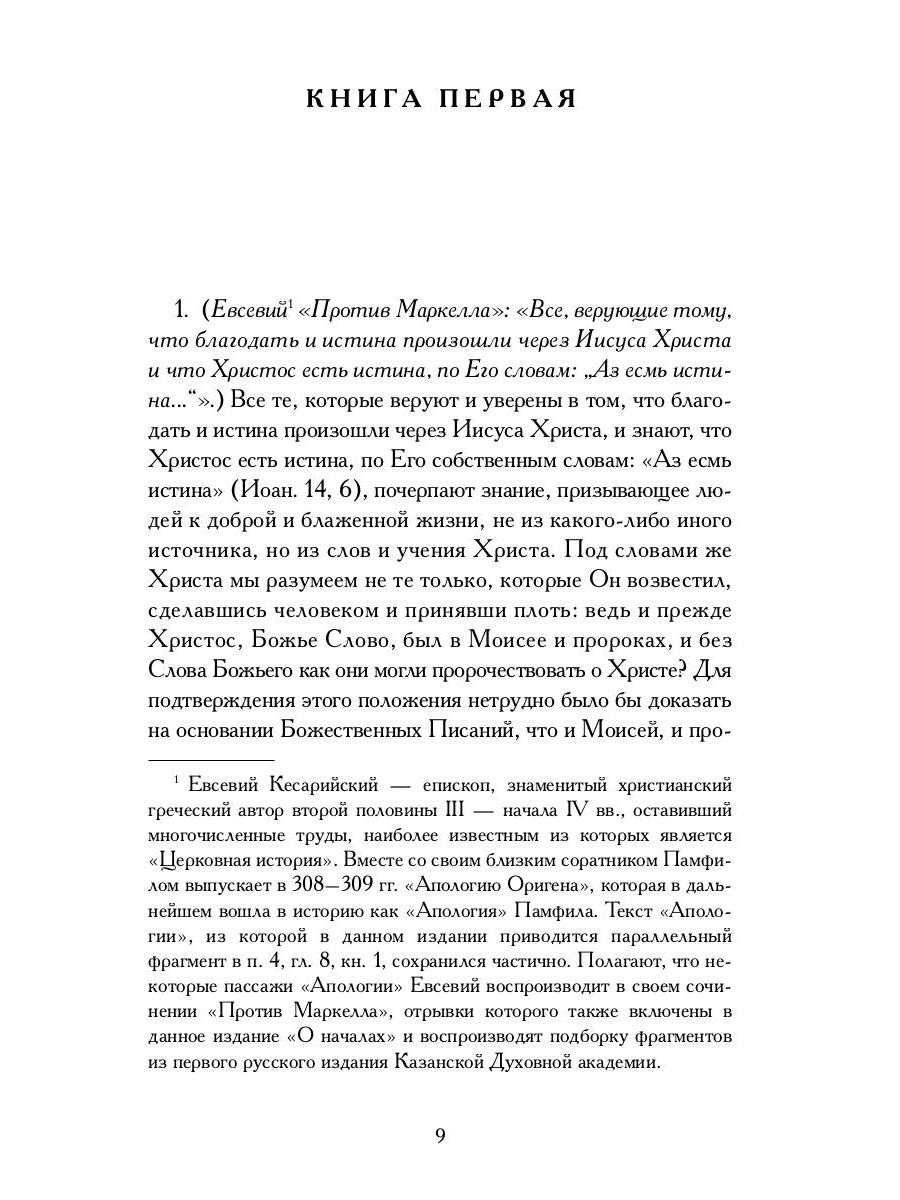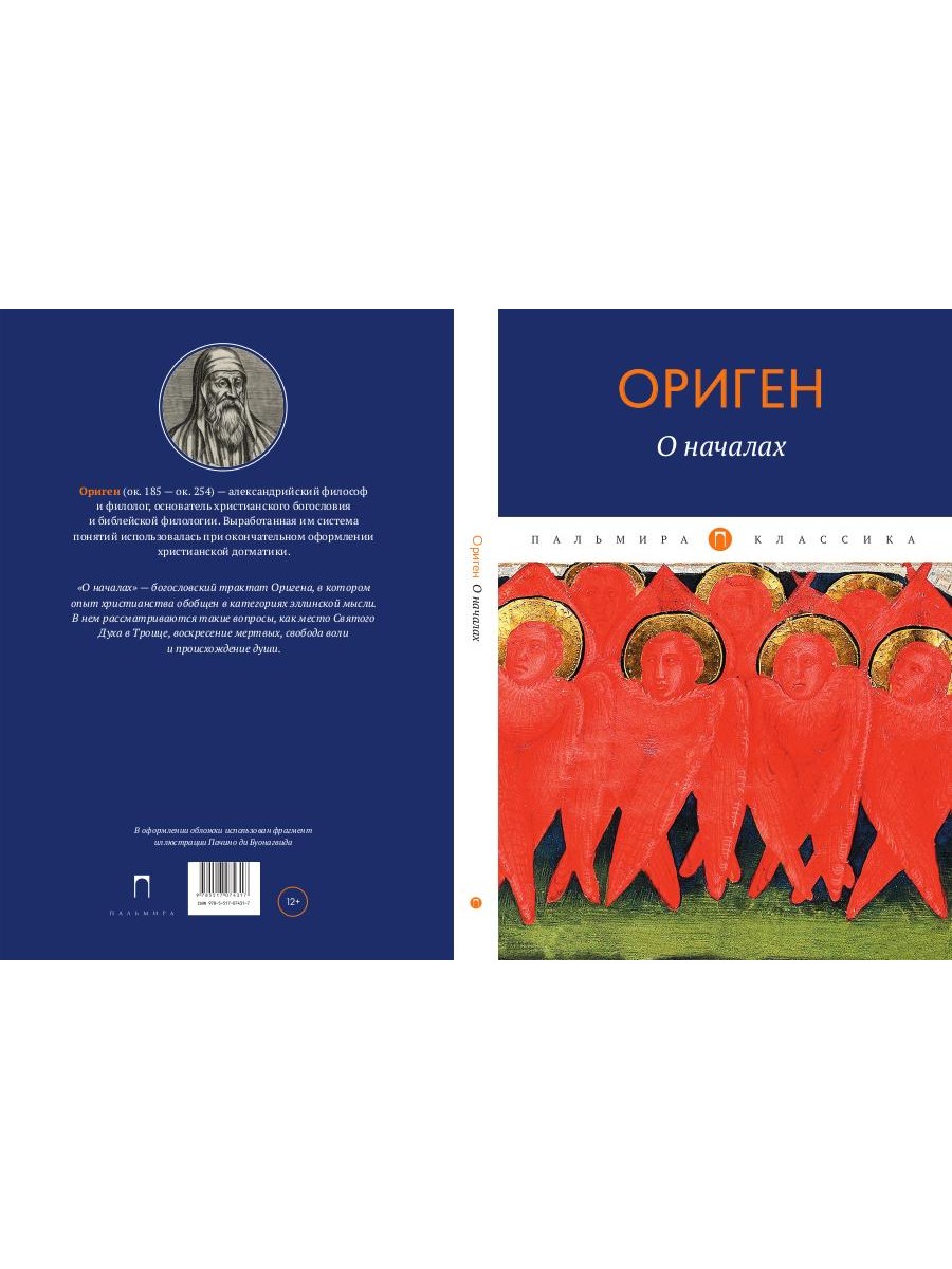 В знаменитом трактате "О началах" александрийского философа Оригена (ок. 185 - ок. 254) опыт христианства обобщен в категориях эллинской мысли. В нем рассматриваются такие вопросы, как место Святого Духа в Троице, воскресение мертвых, свобода воли и происхождение души. Комментированный перевод с латинского выполнен Н. Петровым в Казанской духовной академии в конце XIX века.