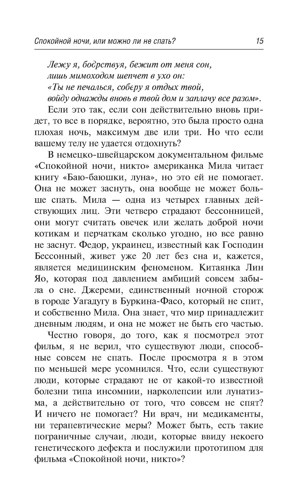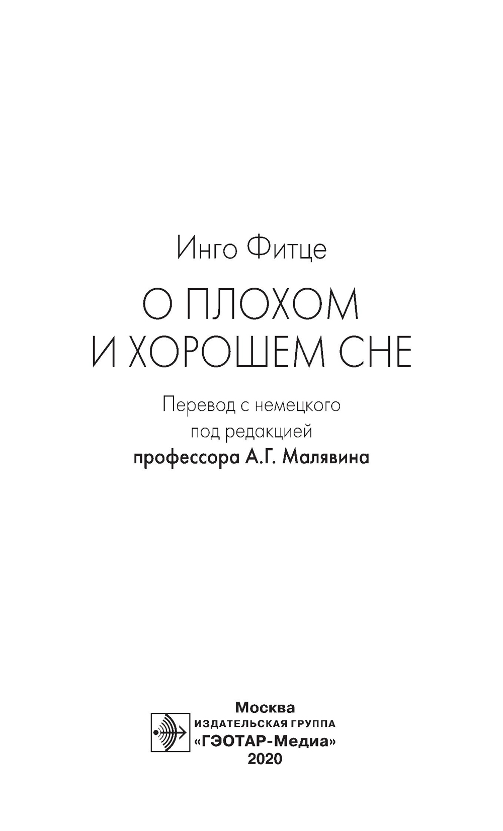 Сон жизненно необходим для нашего отдыха, памяти, развития, работы головного мозга и иммунной системы, к тому же спать еще и просто приятно! Но в современном обществе многие люди спят слишком мало. Профессор Инго Фитце из берлинской больницы Шарите уже многие годы исследует поведение людей во время сна и его нарушения. В своей книге автор освещает все важнейшие факты и феномены, относящиеся ко сну, рассказывает о бессоннице, лунатизме и других болезнях, разъясняет причины их возникновения и возможные способы лечения. Книга «О плохом и хорошем сне» - это собрание частых, редких и курьезных случаев из практики, дополненное необычными фактами, благодаря которым можно узнать очень много нового о сне. Издание предназначено для врачей, а также будет интересно широкому кругу читателей.| Издательство | ГЭОТАР-Медиа |