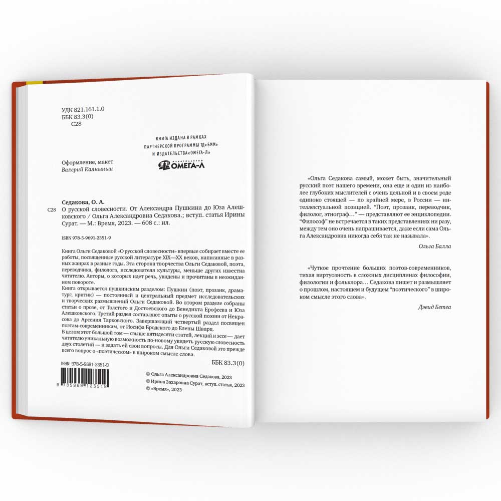 Книга Ольги Седаковой «О русской словесности» впервые собирает вместе ее работы, посвященные русской литературе XIX-XX веков, написанные в разных жанрах в разные годы. Эта сторона творчества Ольги Седаковой, поэта, переводчика, филолога, исследователя культуры, меньше других известна читателю. Авторы, о которых идет речь, увидены и прочитаны в неожиданном повороте. Книга открывается пушкинским разделом: Пушкин (поэт, прозаик, драматург, критик) - постоянный и центральный предмет исследовательских и творческих размышлений Ольги Седаковой. Во втором разделе собраны статьи о прозе, от Толстого и Достоевского до Венедикта Ерофеева и Юза Алешковского. Третий раздел составляют опыты о русской поэзии от Некрасова до Арсения Тарковского. Завершающий четвертый раздел посвящен поэтам-современникам, от Иосифа Бродского до Елены Шварц. В целом этот большой том - свыше пятидесяти статей, лекций и эссе - дает читателю уникальную возможность по-новому увидеть русскую словесность двух столетий - и задать ей свои вопросы. Для Ольги Седаковой это прежде всего вопрос о «поэтическом» в широком смысле слова.| Издательство | Время |