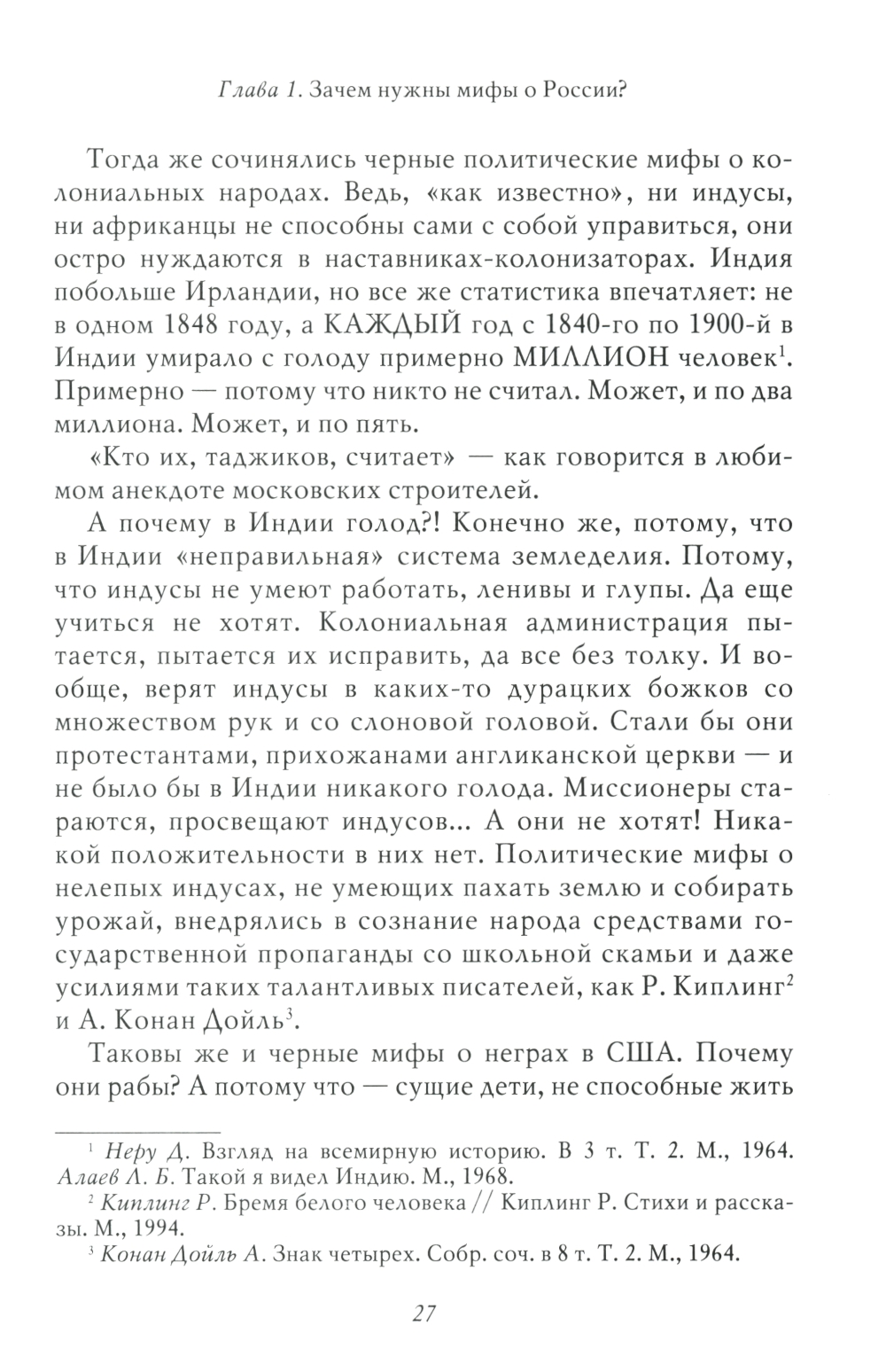 Люди склонны думать о себе хорошо. Обычно даже лучше, чем они есть на самом деле. Это относится и к целым народам, всегда старающимся сформировать о себе самое положительное мнение. Но только не к русским, с удивительным мазохизмом, культивирующим о себе самые негативные стереотипы, причем со ссылкой на классиков: все, мол, «пьют», «воруют» (Карамзин), «ленивы и нелюбопытны» (Пушкин), хотят, чтобы у них, Емель, все было «по щучьему веленью»... Так правда ли это всё или мифы? Откуда это пошло? Сами про себя придумали или подсказал кто? Есть ли у этих утверждений историческая основа и какая? А как с теми же проблемами обстоит дело в «цивилизованных» Европе и Америке? И главное - в чем опасность такого поразительного самоуничижения для современного ДУХА НАЦИИ, для нашей сегодняшней жизни? Давайте окунемся в нашу историю и постараемся разобрать самые живучие, самые яркие и самые нелепые МИФЫ О РОССИИ.| Издательство | Просвещение-Союз |