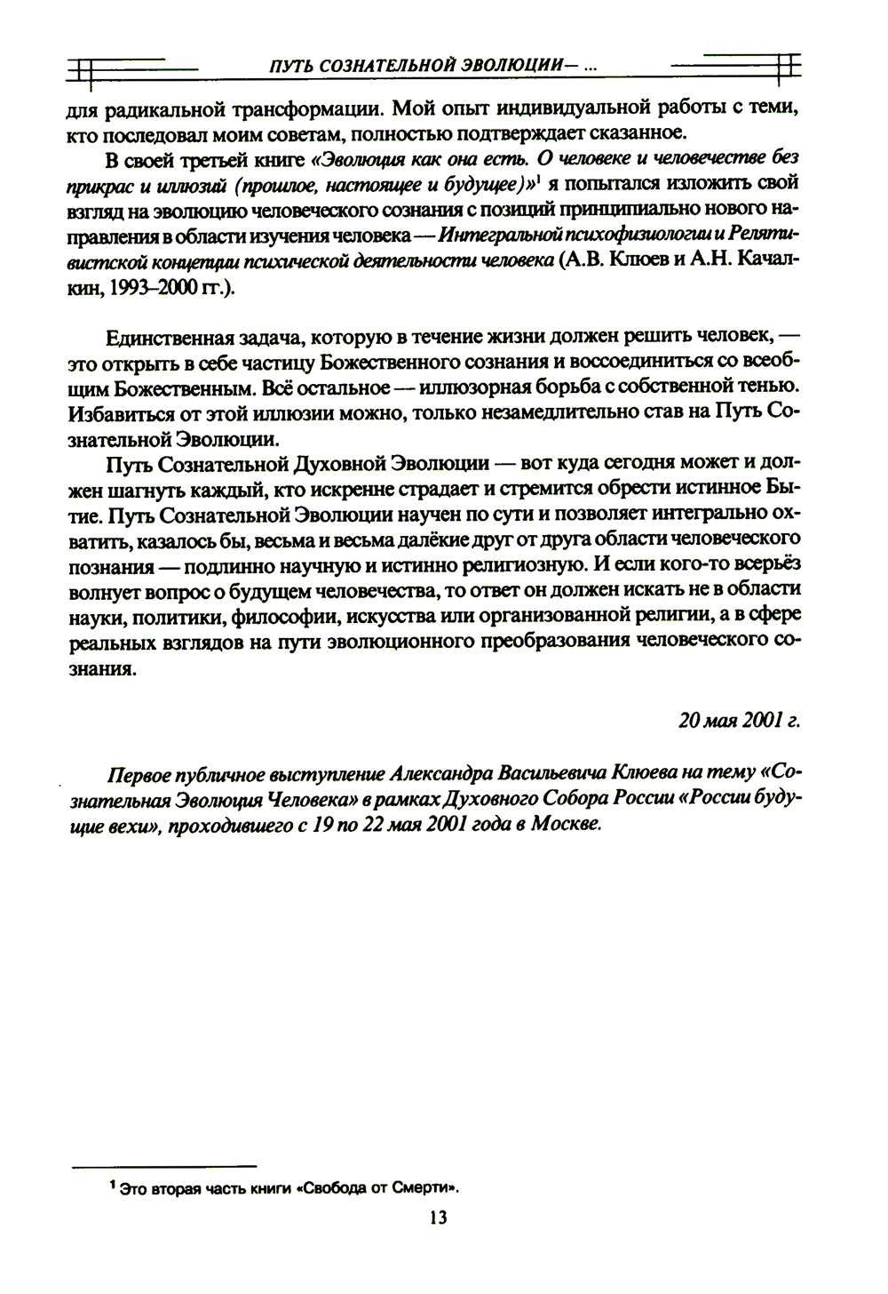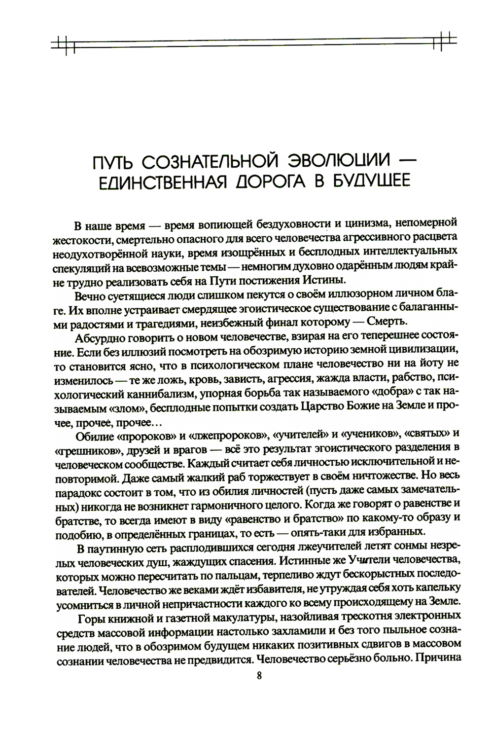 Эту уникальную книгу должны непременно прочесть те, кто искренне озабочен своей собственной судьбой и судьбой человечества. В ней имеется всё необходимое для реализации вашего истинного земного предназначения. Единственная дорога в Будущее - Путь Сознательной Духовной Эволюции, венчающий собой долгие многотрудные духовные поиски человечества в направлении обретения Жизни Вечной. Как относиться к изложенному - дело сугубо личное, но знать то принципиально новое и важное, что касается теоретических и практических аспектов эволюции человека и человечества, - сегодня необходимо каждому. Автор книги - врач-психофизиолог, кандидат медицинских наук, действительный член Международной академии экологии сознания Александр Клюев, практик-эволюционист с более чем двадцатилетним стажем, детально анализирует современное состояние человека и человечества с эволюционных позиций, уделяя особое внимание духовным и психофизическим аспектам. В книге также даны исчерпывающие рекомендации по практической реализации Пути Сознательной Эволюции и представлены живые свидетельства духовного становления людей, сознательно выбравших этот Путь, подтверждающие истинность и практическую ценность данных рекомендаций. Книга выходит в авторской редакции.| Издательство | Профит Стайл |