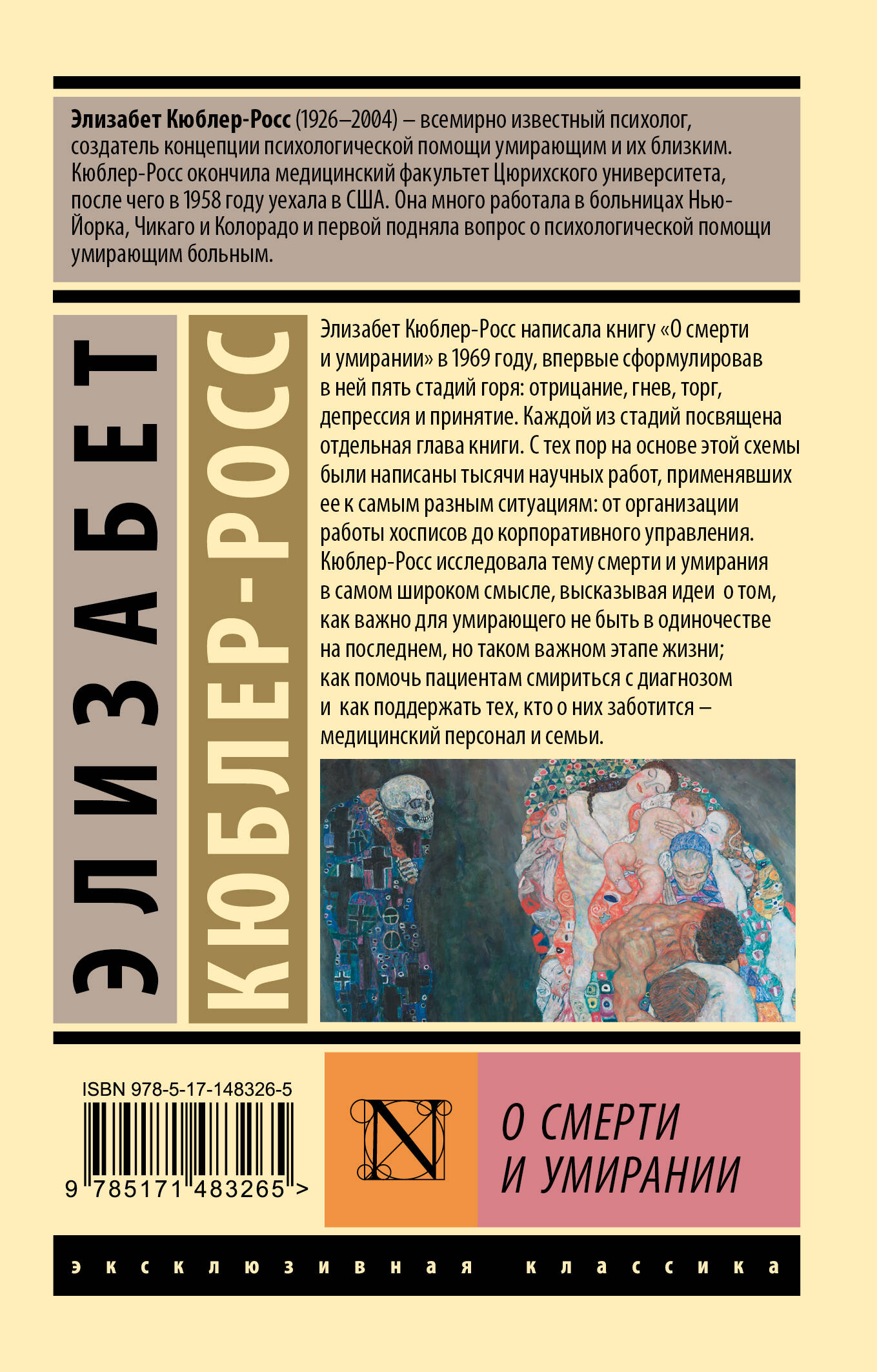 Элизабет Кюблер-Росс написала книгу "О смерти и умирании" в 1969 году, впервые сформулировав в ней пять стадий горя: отрицание, гнев, торг, депрессия и принятие. Каждой из стадий посвящена отдельная глава книги. С тех пор на основе этой схемы были написаны тысячи научных работ, применявших ее к самым разным ситуациям: от организации работы хосписов до корпоративного управления. Кюблер-Росс исследовала тему смерти и умирания в самом широком смысле, высказывая идеи о том, как важно для умирающего не быть в одиночестве на последнем, но таком важном этапе жизни; как помочь пациентам смириться с диагнозом и как поддержать тех, кто о них заботится - медицинский персонал и семьи.