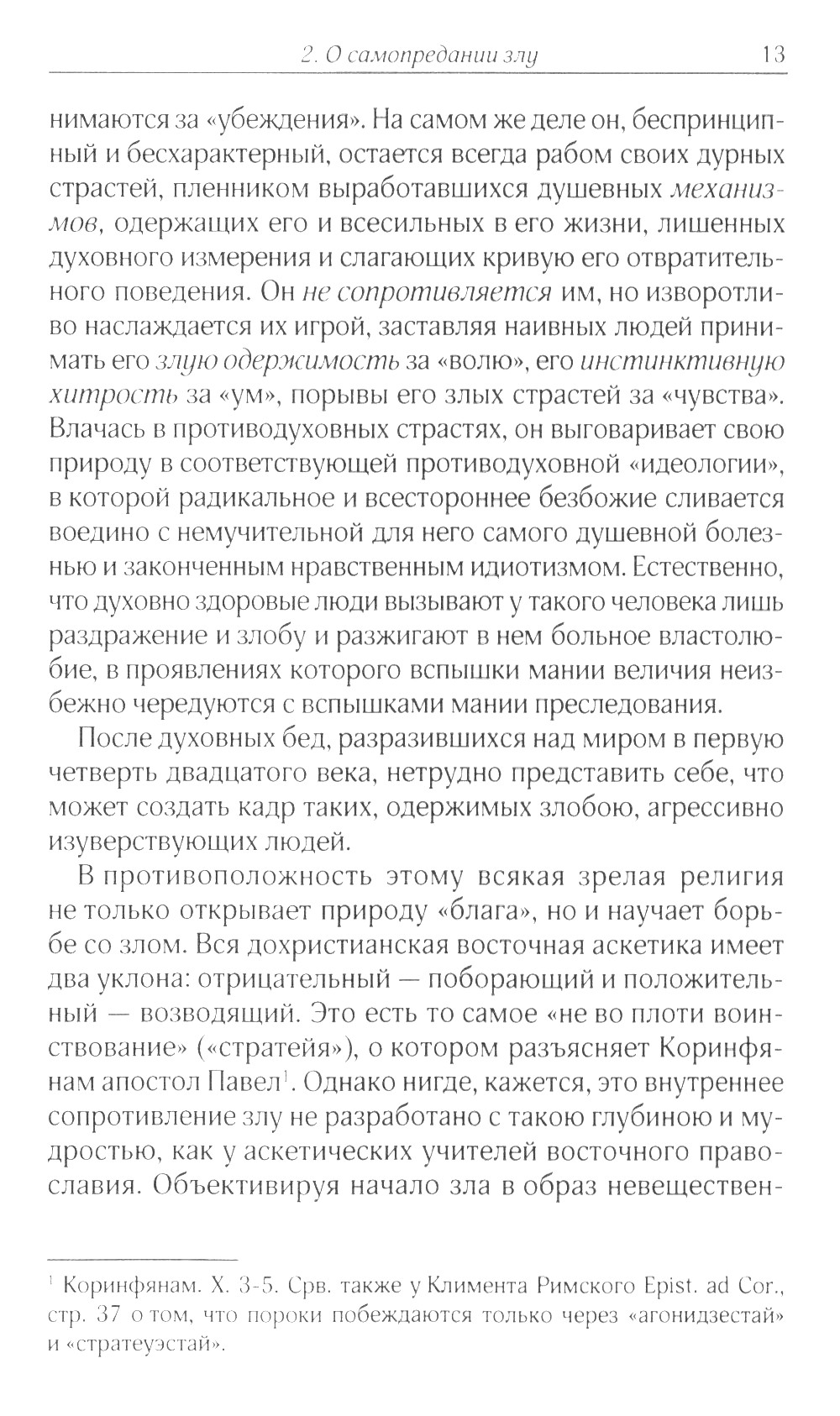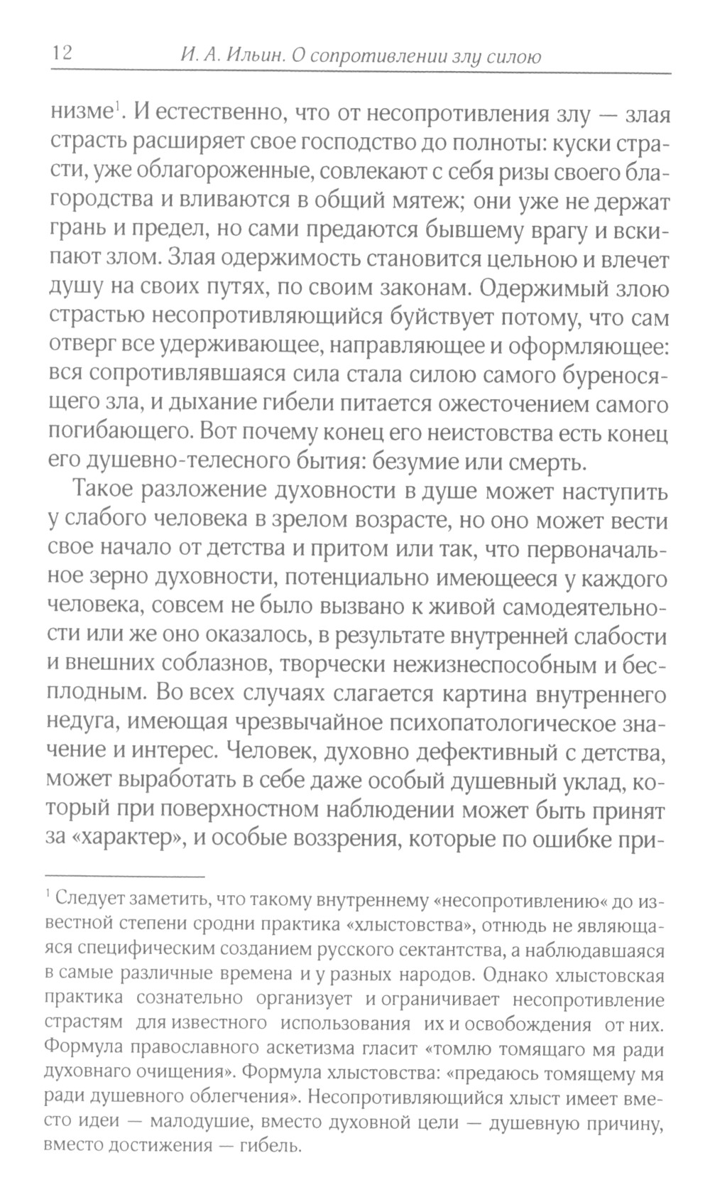 Может ли истинно верующий человек отринуть смирение и бороться со злом силой и мечом? Допустима ли смертная казнь в качестве крайнего способа противостояния злу и является ли физическое его пресечение актом насилия? Труд философа Ивана Ильина «О сопротивлении злу силою» написан в 1925 году в эмиграции как ответ на религиозно-этическое учение Льва Толстого. Толстовцы рассматривали христианство как учение о всепрощении, непротивлении злу силой и отказе от вражды с любым народом. Автор отрицает идею непротивления злу и считает, что не всякая сила - зла и не всякое применение силы есть злодейство. Покориться и подставить другую щеку - значит приспособиться и уподобиться злу, стать его частью. Тогда как остановить злодеяние силой, отступив от собственных нравственных принципов и убеждений, является духовным компромиссом человека во имя исполнения Божьей воли.| Издательство | Субъект |
