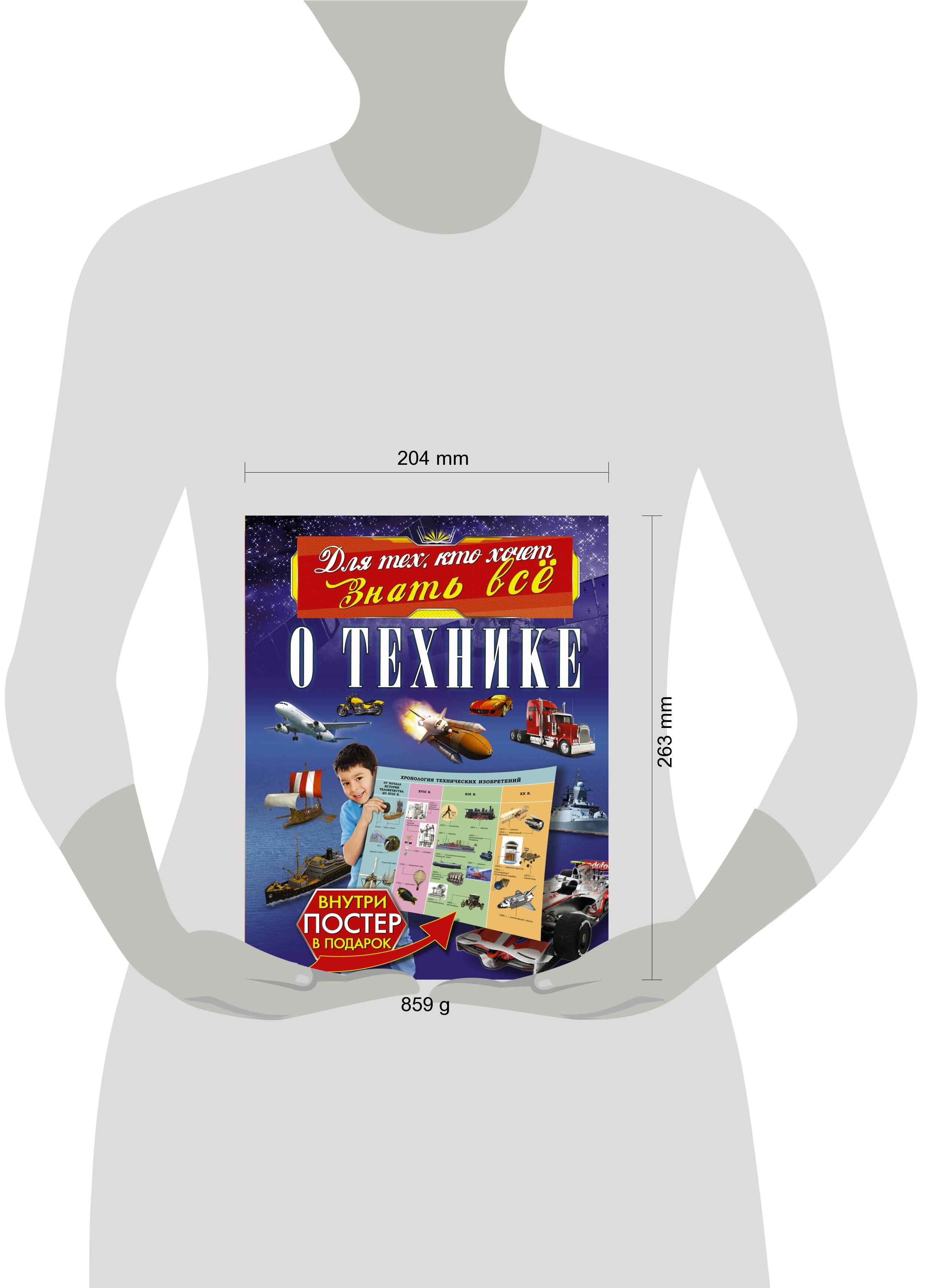 Тебе интересно знать, кто придумал автомобиль? Ты не понимаешь, как летает самолет? Твое воображение поражают танки, грохочущие на параде, или плавно скользящий по волнам огромный круизный лайнер? Узнать все о машинах - от примитивных повозок до современных чудес техники - ты сможешь из этой необычной книги с красочным постером. На ее страницах представлены первые автомобили и новейшие спорткары, модели летающих аппаратов Леонардо да Винчи и схемы самолетов-невидимок, описание такелажа парусников и устройство круизных лайнеров, изображения первого спутника и космической станции последнего поколения и, конечно же, военная техника - опора безопасности нашей страны. Информативные статьи, поясняющие схемы и реалистичные иллюстрации помогут тебе без труда усвоить и запомнить прочитанное. Наградой за проявленную тягу к знаниям станет яркий постер с полезной информацией. Повесь его на стену как напоминание о том, что для увлеченного своим делом человека возможно все.| Издательство | ИЗДАТЕЛЬСТВО "АСТ" |
