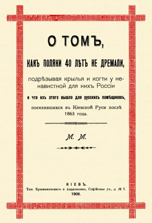 Репринт с издания. Москва - Киев, 1907. О притеснениях русских в Польше и на Украине. Тираж 30 экз. выполнен по технологии print-on-demand.