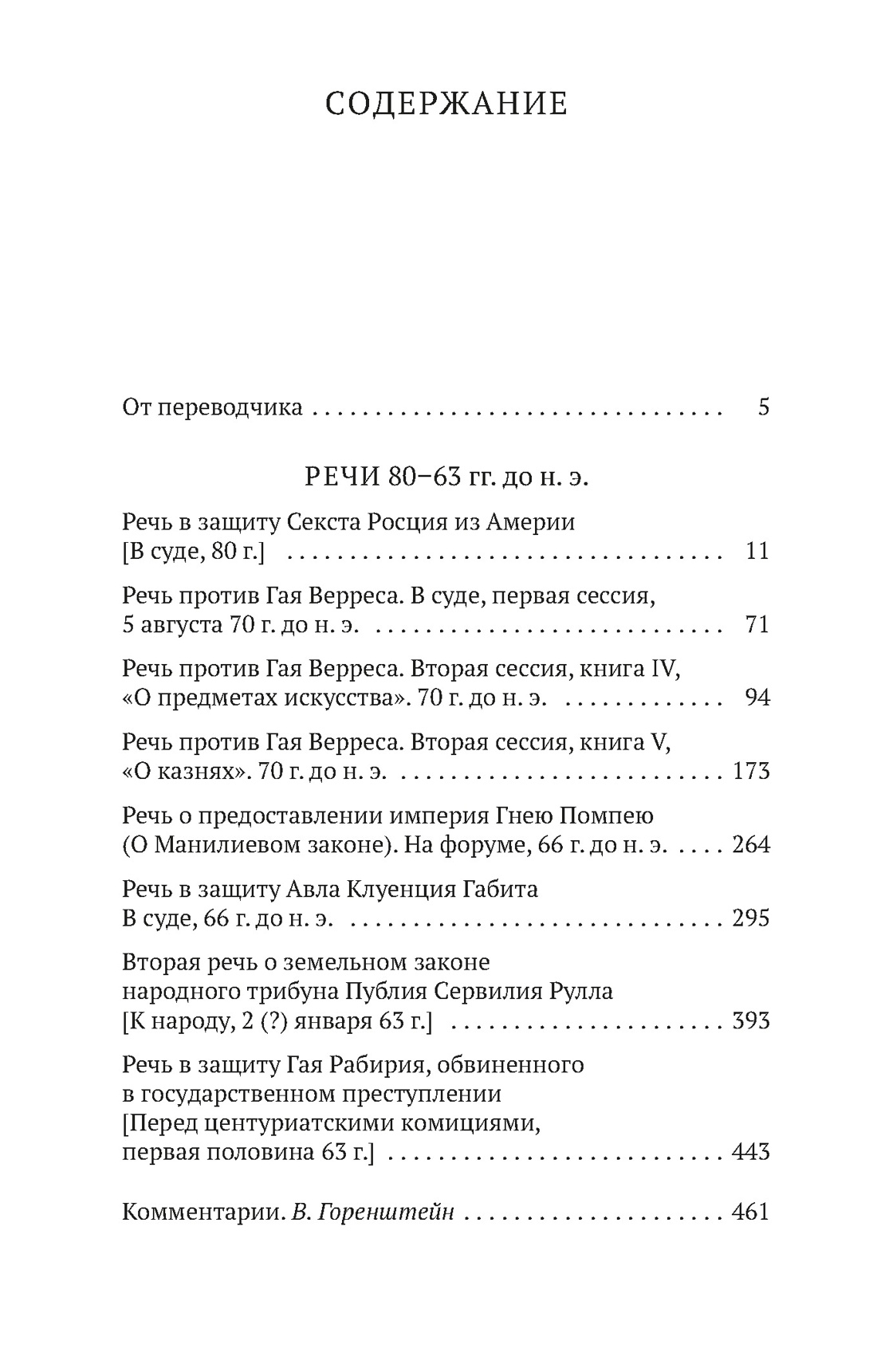 Выдающийся политик-идеалист, добросовестный государственный деятель, непримиримый борец с тиранией и коррупцией, глубокий теоретик риторики и великолепный оратор, гибкий мыслитель, эрудит, близкий к стоикам философ и вдумчивый писатель, на многие столетия ставший законодателем слова и стиля, - Марк Туллий Цицерон (106 г. до н. э. - 43 г. до н. э.) был фигурой неизменно блистательной, временами трагической, но вдохновляющей даже в самые черные периоды своей политической и личной биографии. Наследие Цицерона веками служило европейцам совершенным образцом выразительной точности и богатейшим источником знаний об истории Древнего Рима. Даже спустя два тысячелетия Цицерон остается актуальным, и не только как исторический источник. На материале его речей мы по сей день учимся принципам ведения дискуссии и грамотной аргументации: навыки, особенно полезные сейчас, когда все дискутируют со всеми, порой не слыша ни оппонентов, ни даже себя. В сборник вошли избранные речи Цицерона 80-63 гг. до н. э., в том числе его самая первая речь в уголовном суде в защиту Cекста Росция, создавшая молодому Цицерону славу гениального оратора, и речи против наместника Сицилии, коррупционера, взяточника и тирана Гая Верреса.