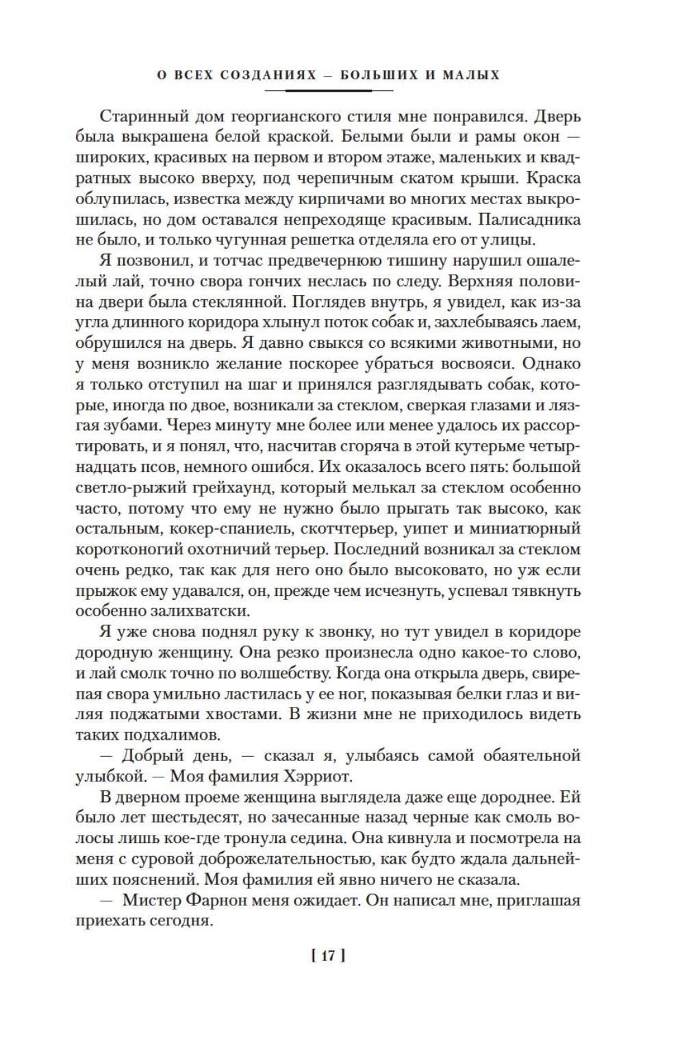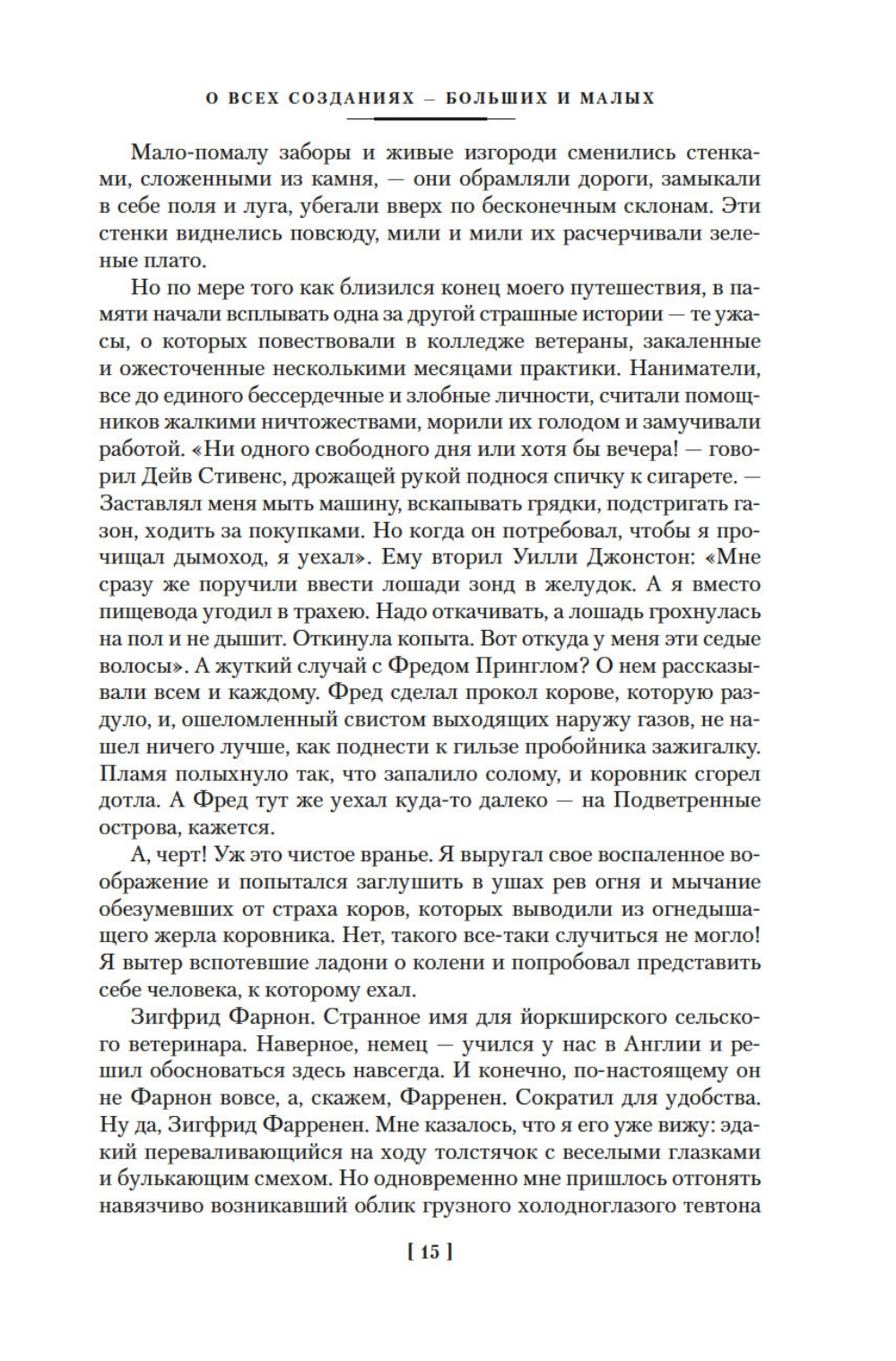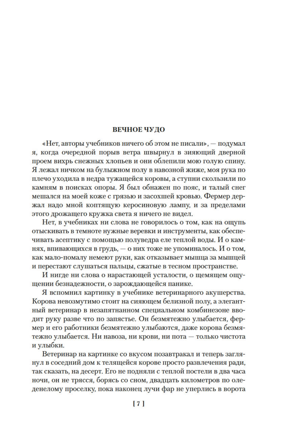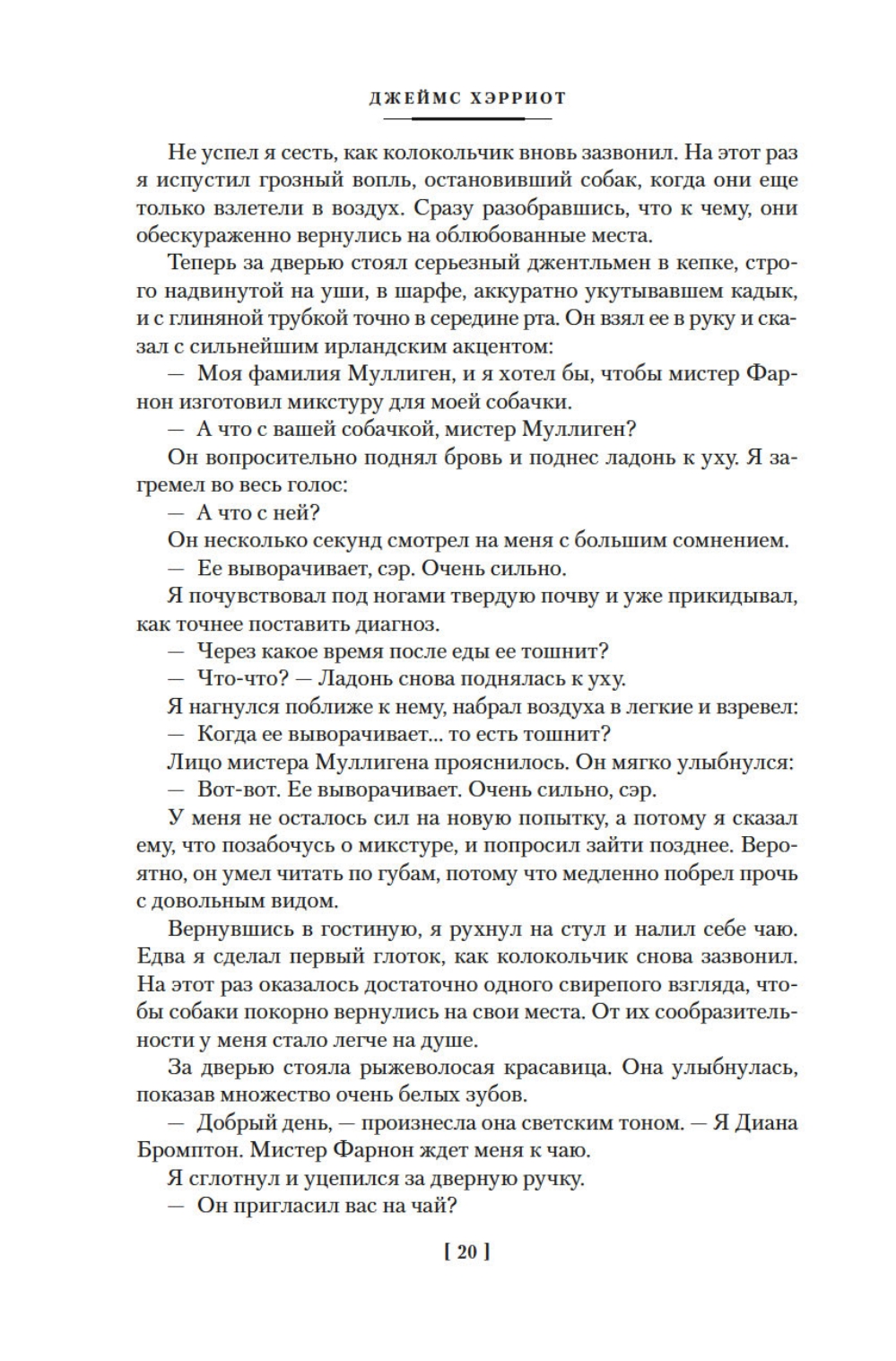 Смешные и трогательные рассказы о животных английского писателя и ветеринара Джеймса Хэрриота переведены на десятки языков. Его добродушный юмор, меткая наблюдательность и блестящий дар рассказчика вот уже несколько десятилетий завоевывают все новых читателей, не переставая удивлять, насколько истории из практики «коровьего лекаря» могут быть интересными. А насколько будни сельского ветеринара далеки от рутины, не приходится и говорить! Попробуйте, например, образумить рассвирепевшего бычка, или сдвинуть с места заупрямившуюся свинью, или превратить в операционную стойло, не забывая при этом об острых зубах и копытах своих четвероногих пациентов - больших и малых, прекрасных и разумных, мудрых и удивительных. В настоящем издании представлены три сборника рассказов Джеймса Хэрриота; автор обращается к первым годам своей ветеринарной практики в Дарроуби, вымышленном городке, за которым проступают черты Тирска, где ныне находится всемирно известный музей Джеймса Хэрриота.| Издательство | Азбука |
