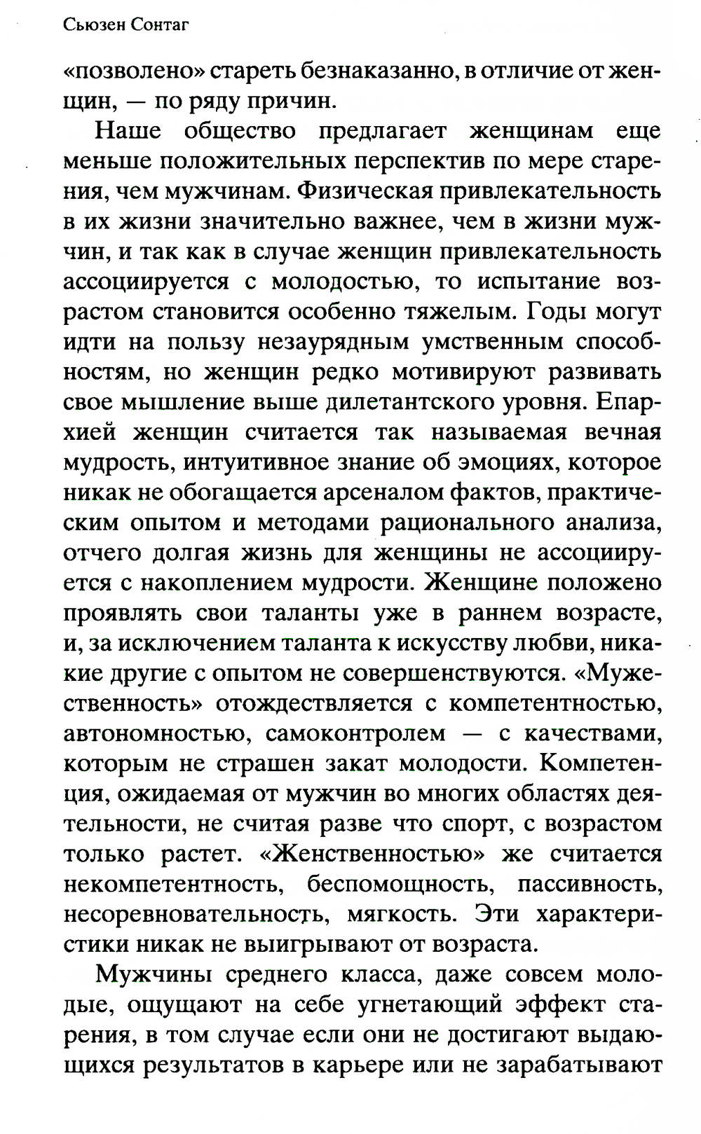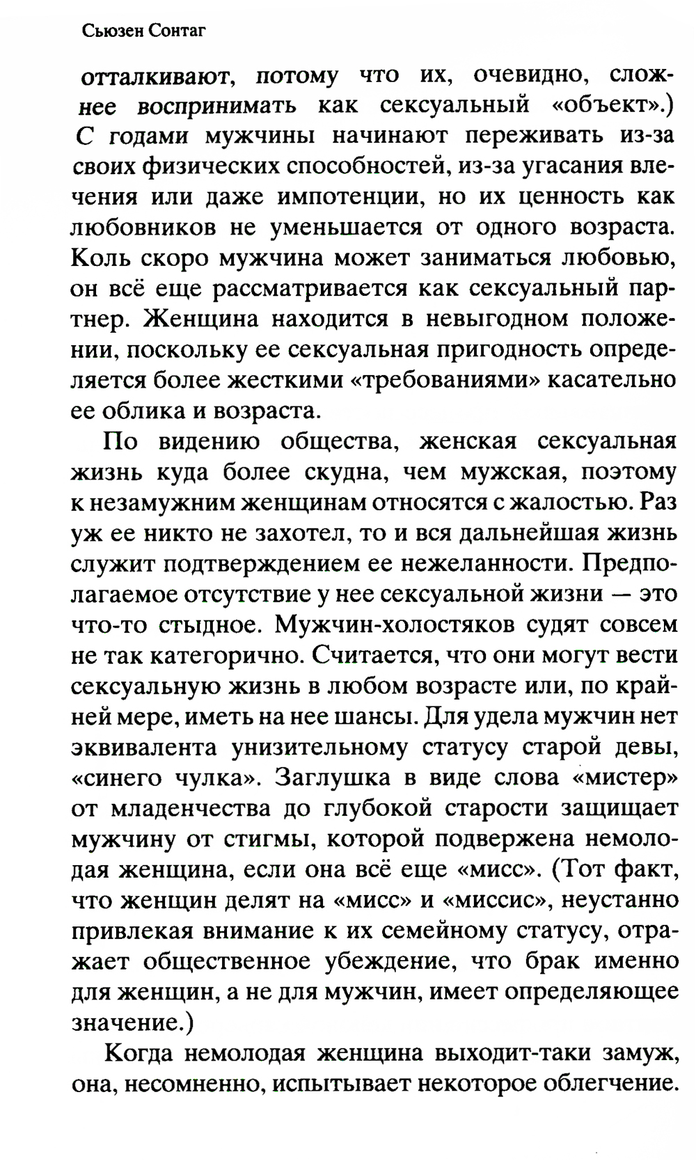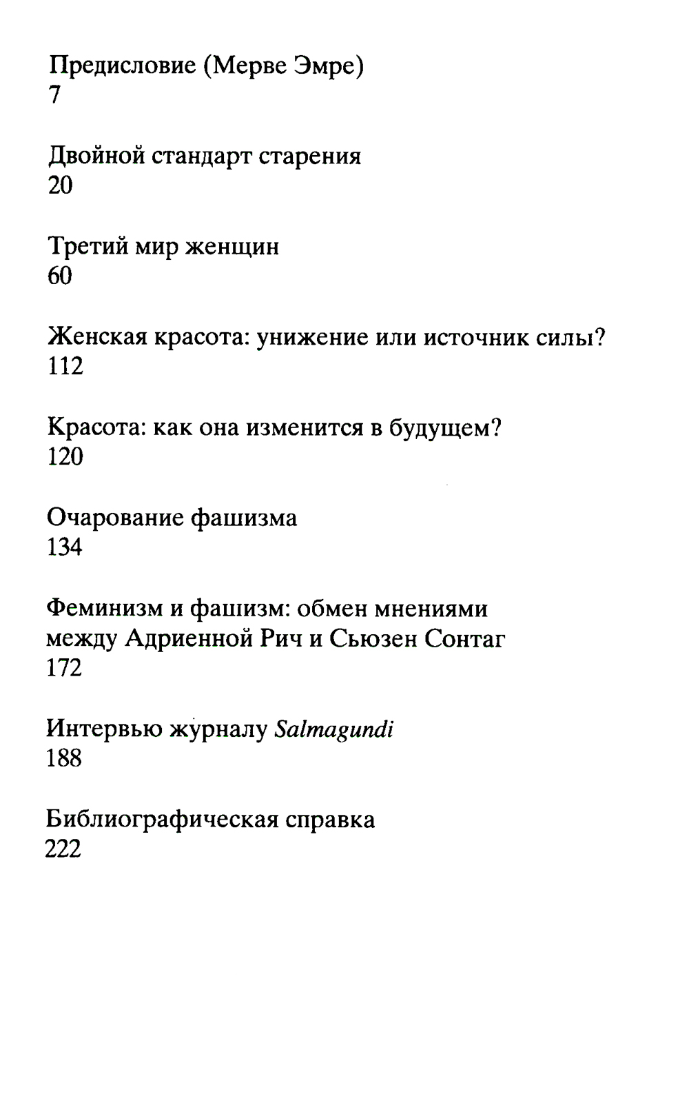 Новый сборник эссе Сьюзен Сонтаг «О женщинах» составлен ее сыном Дэвидом Риффом из текстов, написанных и изданных с 1972 по 1975 год, в один из самых резонансных периодов женского движения в США. Полемические и порой радикальные идеи Сонтаг о том, что значит быть женщиной в современном мире, представлены в критических эссе, журнальных анкетах и интервью, а также в дискуссии в письмах с поэтессой и феминисткой Адриенной Рич. Смешивая живую публицистику и обобщающую аналитику, Сонтаг поднимает вопросы двойного стандарта старения, женской сексуальной валидности, отношения женщин друг к другу, связей женского движения с другими революционными движениями, самоугнетения женщин, функционирования идеалов красоты, эротизации фашизма, плюральности феминистских позиций и прочие. Сборник отражает бурную эпоху начала 1970-х годов, а также путь самой Сонтаг, не теряя критической актуальности и поныне.| Издательство | Ад Маргинем Пресс |