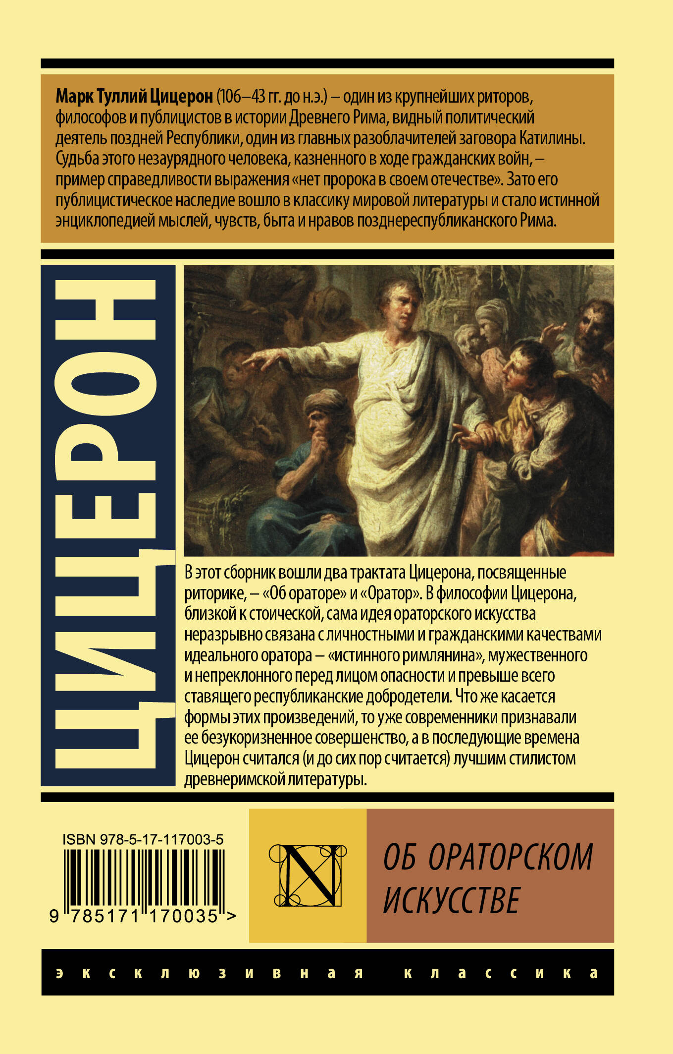В этот сборник вошли два трактата Цицерона, посвященные риторике, - "Об ораторе" и "Оратор". В философии Цицерона, близкой к стоической, сама идея ораторского искусства неразрывно связана с личностными и гражданскими качествами идеального оратора - "истинного римлянина", мужественного, непреклонного перед лицом опасности и превыше всего ставящего республиканские добродетели. Что же касается формы этих произведений, то уже современники признавали ее безукоризненное совершенство, а в последующие времена Цицерон считался (и до сих пор считается) лучшим стилистом древнеримской литературы.| Издательство | ИЗДАТЕЛЬСТВО "АСТ" |