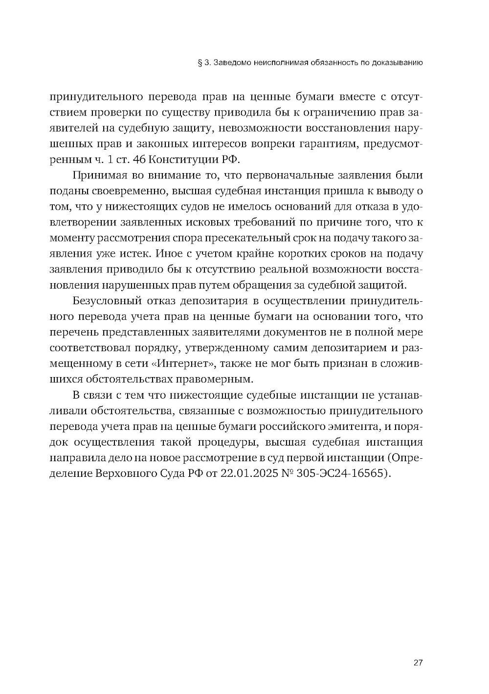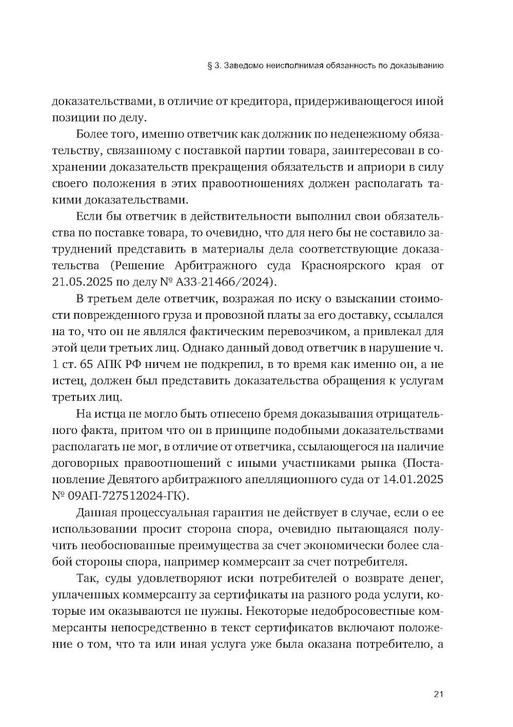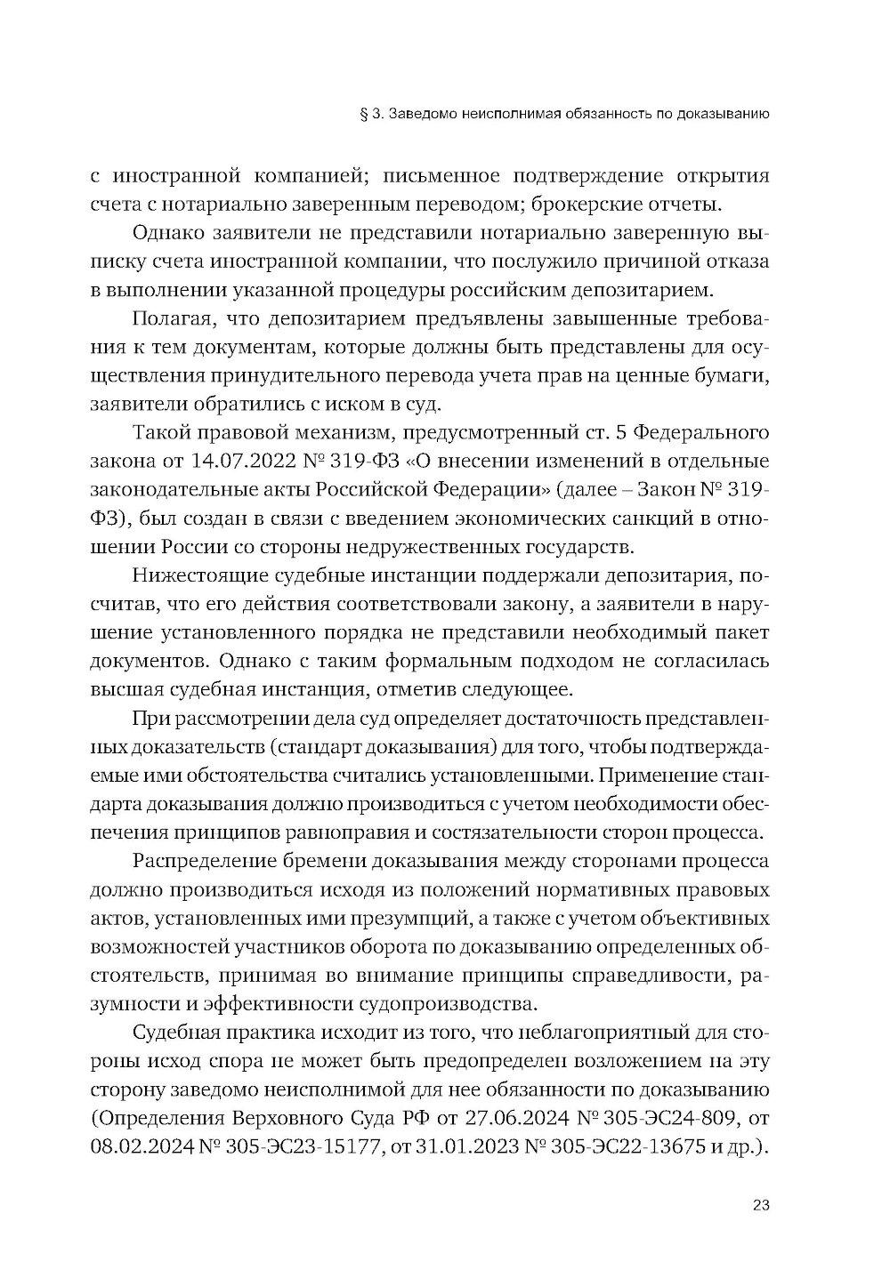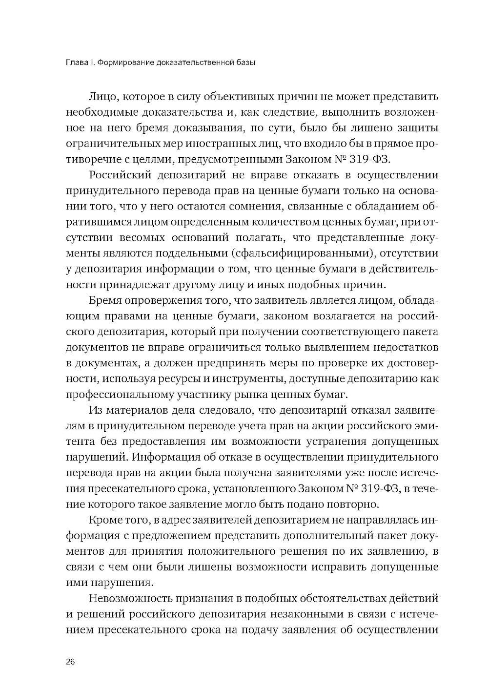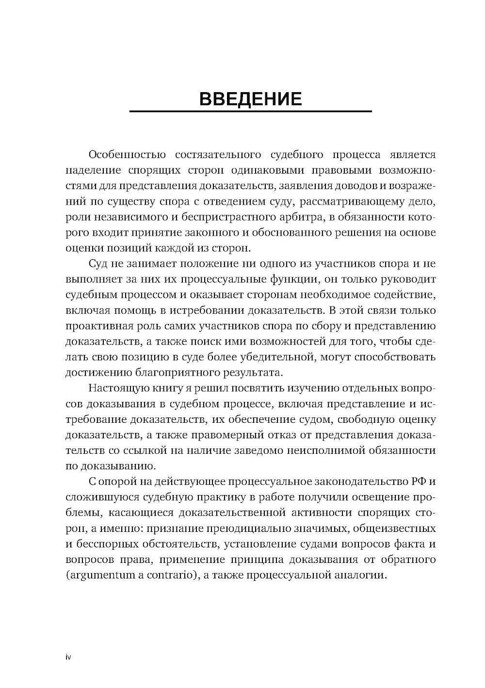 Особенностью состязательного судебного процесса является наделение спорящих сторон одинаковыми правовыми возможностями для представления доказательств, заявления доводов и возражений по существу спора, с отведением суду, рассматривающему дело, роли независимого и беспристрастного арбитра, в обязанности которого входит принятие законного и обоснованного решения на основе оценки позиций каждой из сторон. Суд не занимает положение ни одного из участников спора и не выполняет за них их процессуальные функции, он только руководит судебным процессом и оказывает сторонам необходимое содействие, включая помощь в истребовании доказательств. В этой связи только проактивная роль самих участников спора по сбору и представлению доказательств, а также поиск ими возможностей для того, чтобы сделать свою позицию в суде более убедительной, могут способствовать достижению благоприятного результата. Настоящую книгу я решил посвятить изучению отдельных вопросов доказывания в судебном процессе, включая представление и истребование доказательств, их обеспечение судом, свободную оценку доказательств, а также правомерный отказ от представления доказательств со ссылкой на наличие заведомо неисполнимой обязанности по доказыванию. С опорой на действующее процессуальное законодательство РФ и сложившуюся судебную практику в работе получили освещение проблемы, касающиеся доказательственной активности спорящих сторон, а именно: признание преюдициально значимых, общеизвестных и бесспорных обстоятельств, установление судами вопросов факта и вопросов права, применение принципа доказывания от обратного (аrgumentum a contrario), а также процессуальной аналогии.| Издательство | Инфотропик Медиа |