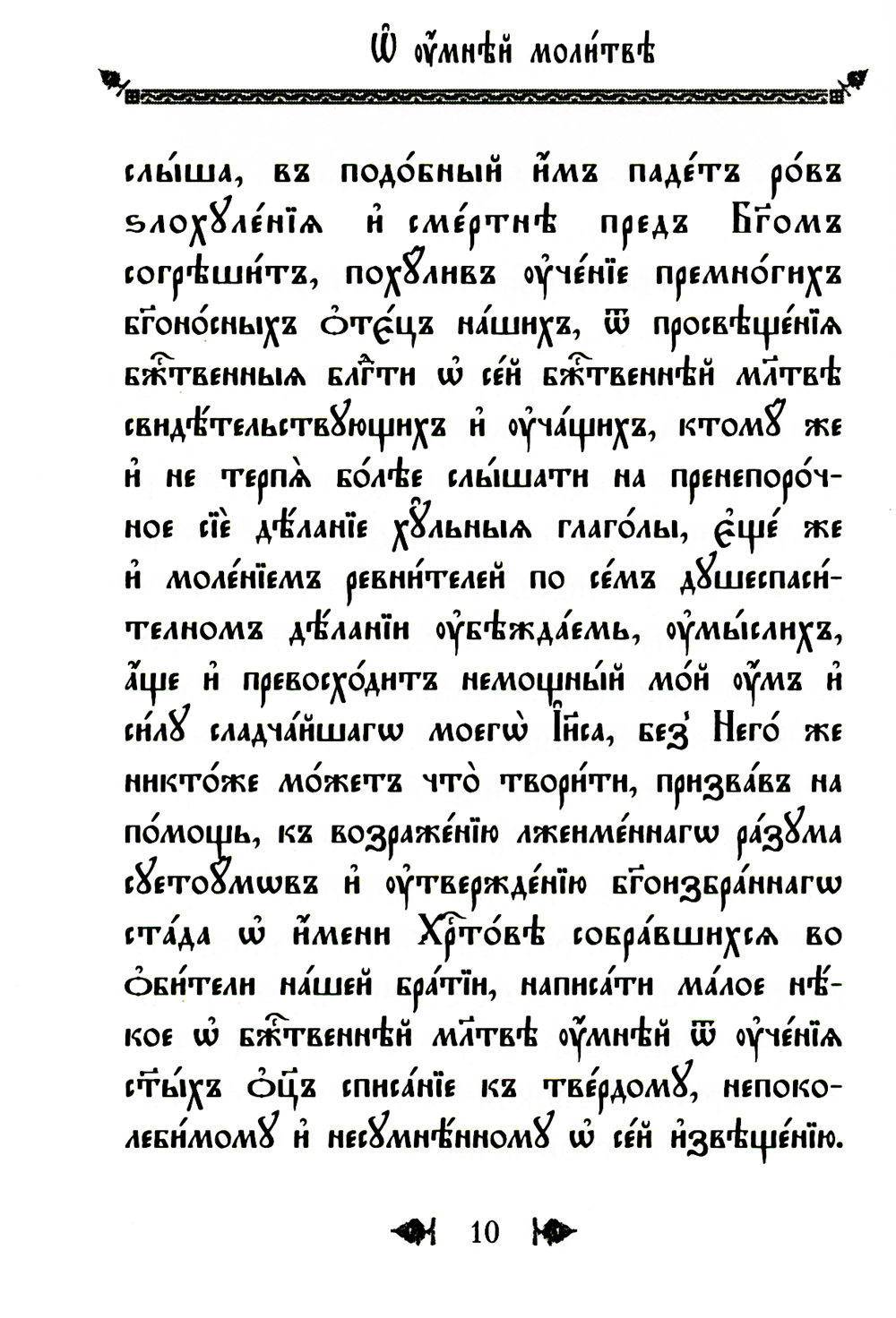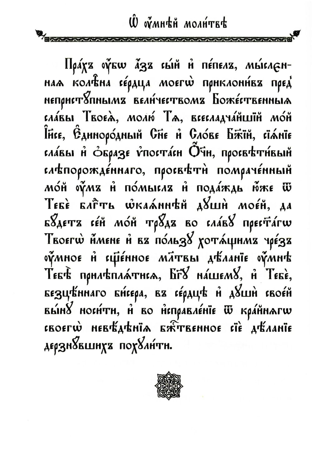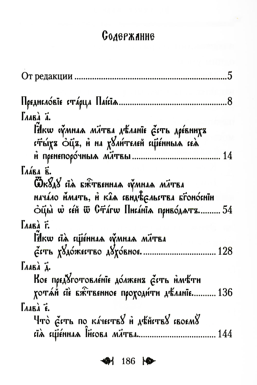 Вниманию благочестивого читателя предлагается труд «Об умной молитве», написанный «отцом русского старчества» - преподобным Паисием (Величковским). В нем собраны выдержки из творений святых отцов об Иисусовой молитве, рассказывается о том, как ее творить и каковы плоды этого таинственного и светоносного делания. Для удобства читателя текст дается на славянском языке с параллельным русским переводом.