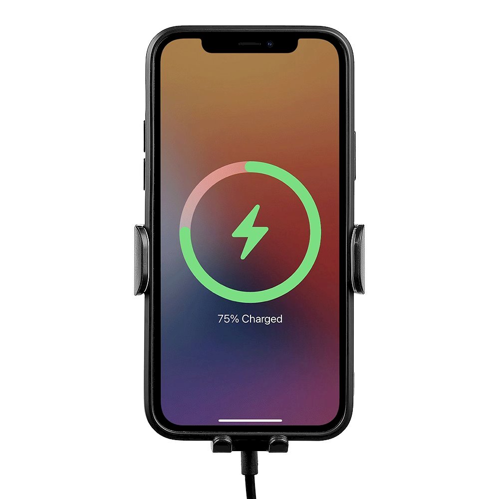 Это автомобильное крепление для беспроводной зарядки отличается удобным расположением и автоматическими фиксирующими рычагами.