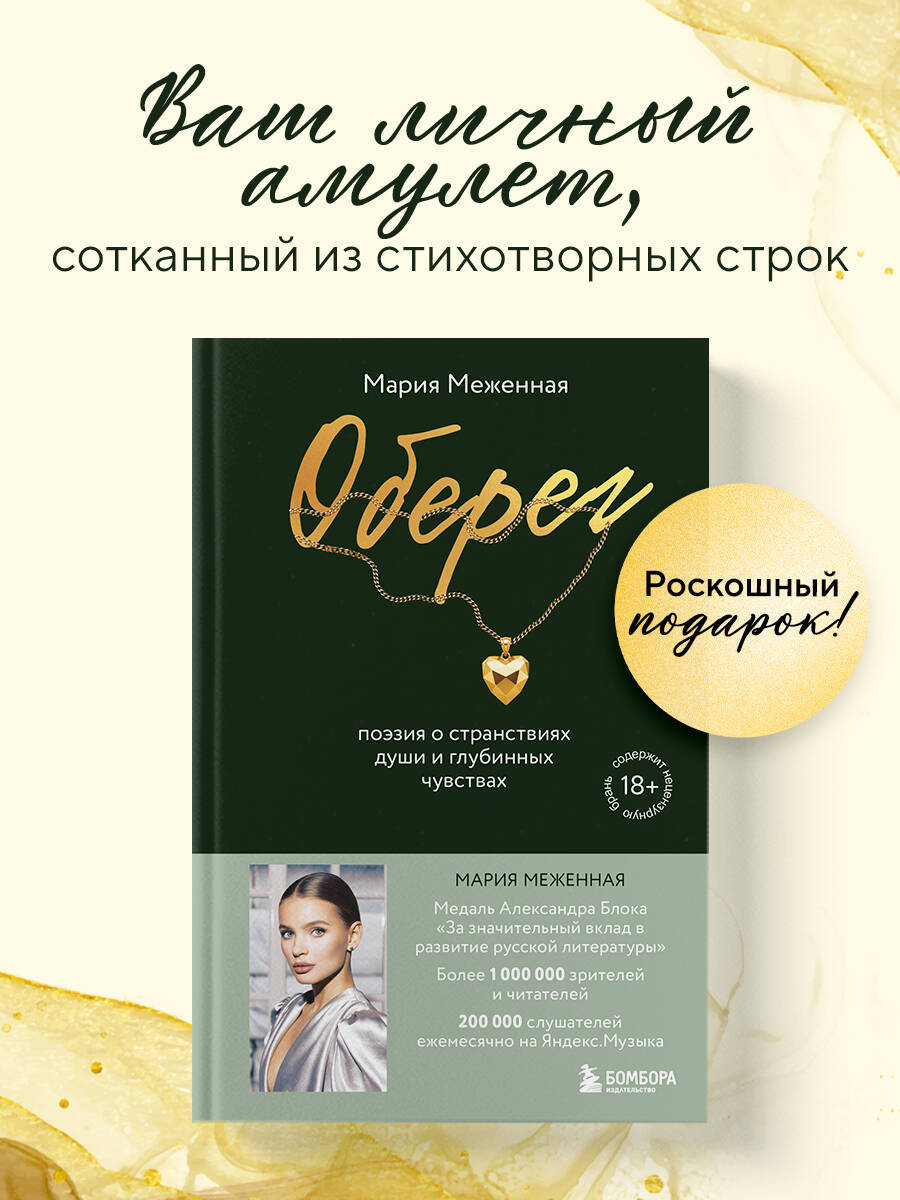 Мария Меженная - поэтесса и исполнительница, сила слов которой пробуждает сердца. Ее стихи оживают на сцене, в музыкальных альбомах и в поэтических программах. «Оберег» - книга-талисман. Каждое стихотворение в ней - путеводная нить на перекрестке, огонь свечи в темноте, рука, которая держит над пропастью. Эти стихи могут быть и утешением, и откровением, и дерзким вызовом миру - тем самым оберегом, который хранит, вдохновляет и ведет вперед. Прикоснитесь к ним - и они защитят ваши сокровенные чувства!| Издательство | ООО "Издательство "Эксмо" |