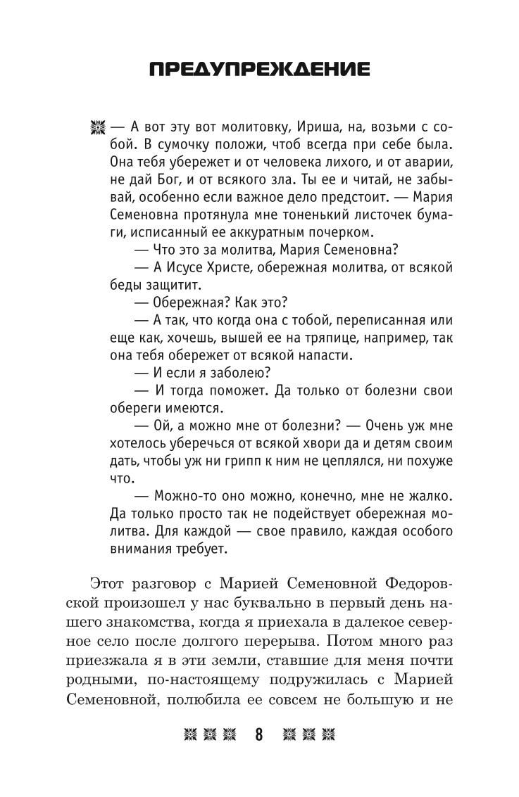 Потомственная печорская целительница Мария Семеновна Федоровская щедро делится сокровенными знаниями, позволяющими отвести беды и подстраховаться от любых невзгод. Этим заговорам и оберегам три сотни лет. Их собирали и тщательно хранили печорские целительницы-старообрядки Федоровские. Это не магия и не колдовство - это почти молитвы, только особые, цель которых - получение конкретных вещей. В комплект входят пять книг: «1500 заговоров для здоровья, богатства и любви», «Большая книга примет», «Большой толковый сонник», «Черные заговоры и как с ними бороться», «Обереги на все случаи жизни».| Издательство | Омега-Л |
