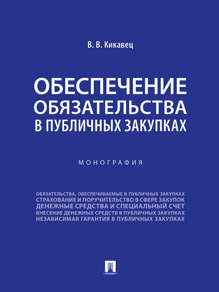 В монографии представлены виды обеспечения обязательства в публичных закупках, включая ретроаспект (страхование и поручительство). В процессе рассмотрения действующих видов обеспечения обязательства (внесение денежных средств на счет заказчика, использование специального счета, независимая гарантия, неустойка) в доступной и наглядной форме с учетом административной и судебной практик (более 200 дел) освещены наиболее значимые вопросы и проблемы правоприменения. Законодательство приведено по состоянию на 11 марта 2024 г. Монография рекомендована должностным лицам заказчика (работникам контрактных служб, контрактным управляющим, членам комиссии по закупкам), специалистам по продажам - поставщикам (подрядчикам, исполнителям), сотрудникам контролирующих, надзорных органов, практикующим юристам, а также студентам, аспирантам и преподавателям, реализующим программы дополнительного профессионального образования и повышения квалификации в сфере публичных закупок.| Автор/составитель | Кикавец В.В. |