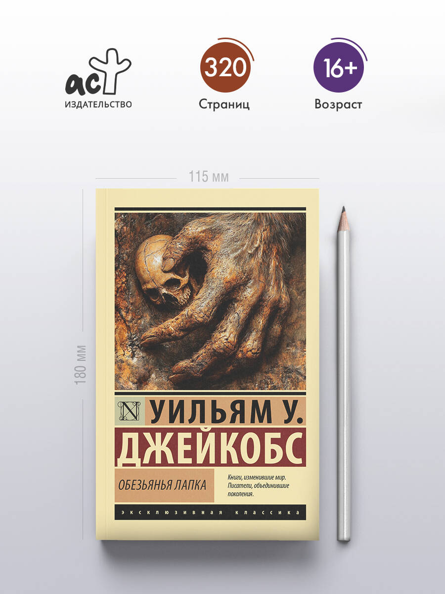 Таинственная обезьянья лапка, зачарованная некогда в Индии могучим факиром, исполняет три любых желания владельца. Но, увы, очередной заполучивший ее в руки легковерный бедолага не подозревает, какую цену придется заплатить за их исполнение... В сборник вошли и другие произведения Джейкобса, объединенные мистической темой, как серьезные и по-настоящему пугающие, так и ироничные, дразнящие читателя намеками на сверхъестественное, в итоге получающее неожиданное, но вполне реалистичное объяснение; а также озорные, принадлежащие к любимому автором жанру "моряцких баек о чудесах океанских глубин".| Издательство | Издательство "АСТ" |