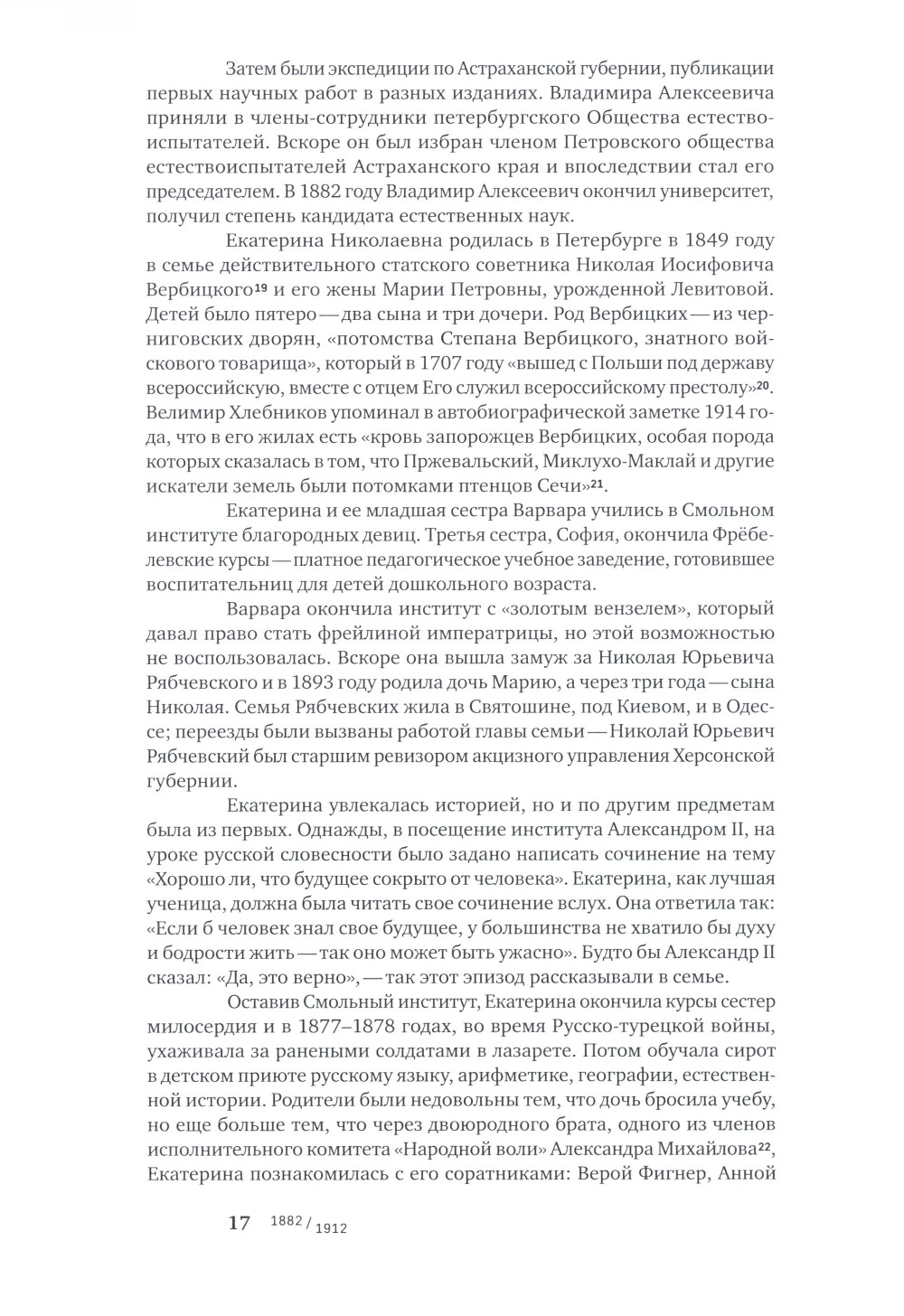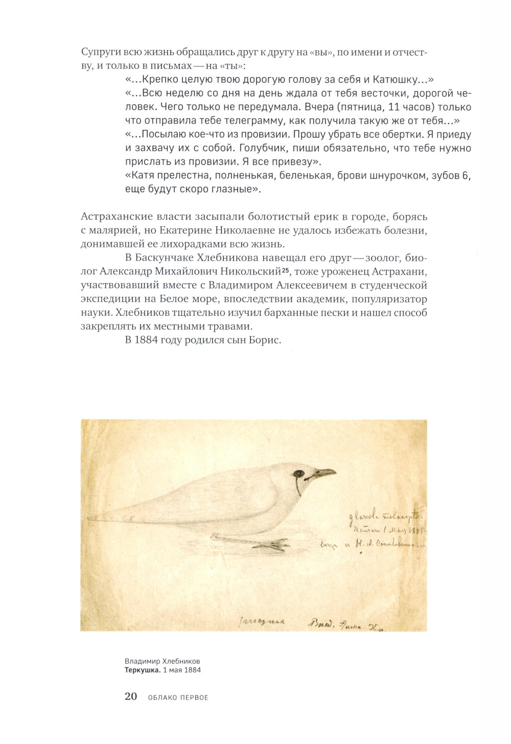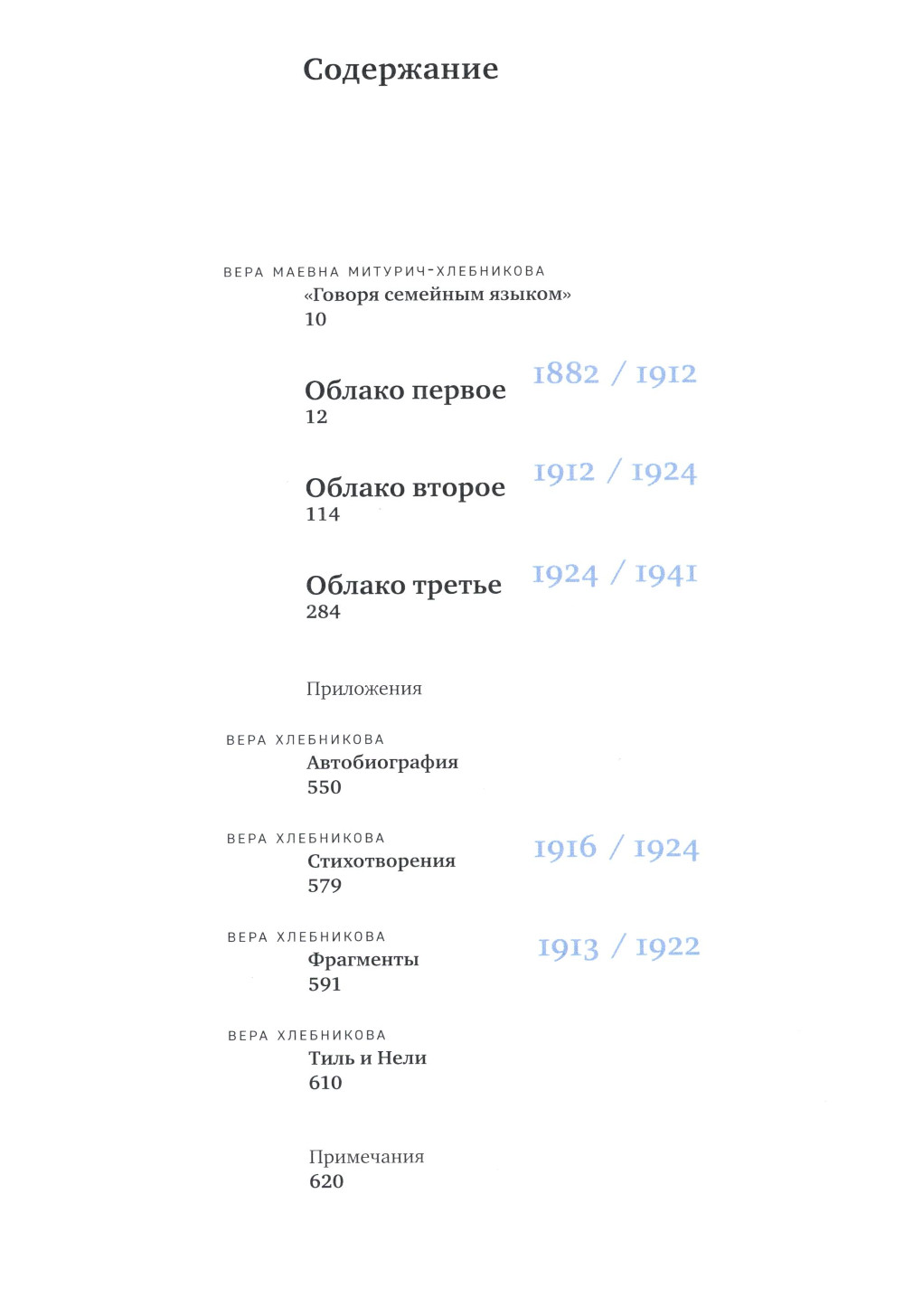 «Облака» - это хроника семьи Хлебниковых, составленная Верой Маевной Митурич-Хлебниковой из архивных материалов. Письма и воспоминания, многие из которых публикуются впервые, проиллюстрированы 300 фотографиями, рисунками и живописными работами из семейного архива и музейных собраний. Перед нами предстают не только яркие судьбы героев, но и бурная культурная жизнь России первых десятилетий прошлого века. Отец семейства Владимир Алексеевич Хлебников - ученый-орнитолог, один из организаторов и директор Астраханского биосферного заповедника, первого в стране. В книге прослеживаются пути его детей, наделенных разнообразными талантами: формирование гения Велимира Хлебникова, творческие поиски его сестры, художницы Веры Хлебниковой, и брата Александра, изобретателя и ученого-естественника. Особое место в книге занимает повествование о жизни Веры Владимировны Хлебниковой. Ярко одаренная - живописец и график, своеобразный поэт и литератор - она всегда оставалась в тени сначала великого брата Велимира, а затем мужа, знаменитого художника Петра Митурича. Вера и Пётр, преодолевая все трудности послереволюционного времени, воспитали сына, прекрасного художника Мая Митурича-Хлебникова. На листах писем Веры от ветхости, как по волшебству, проступило изображение облачного неба, что и дало название книге -«Облака».| Издательство | Изд.Арт-Волхонка |