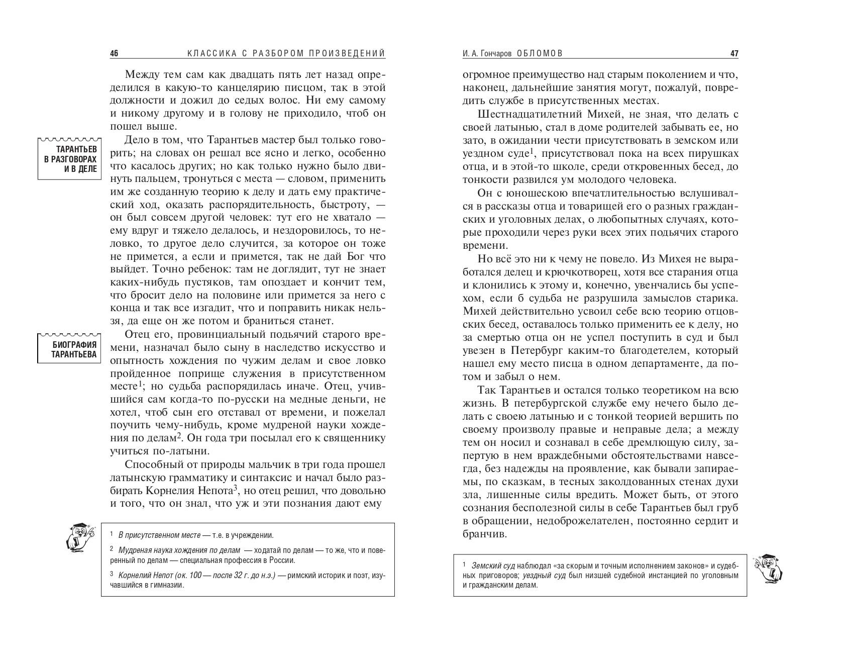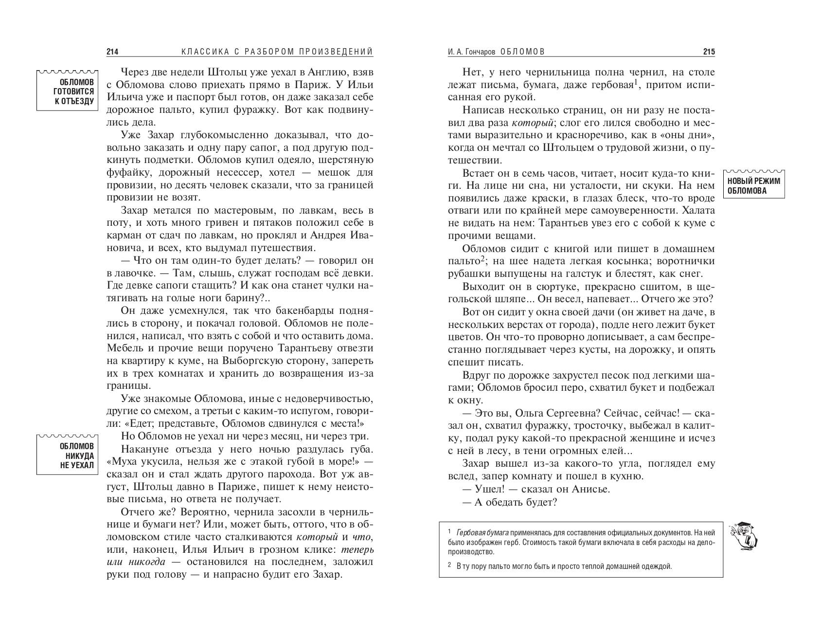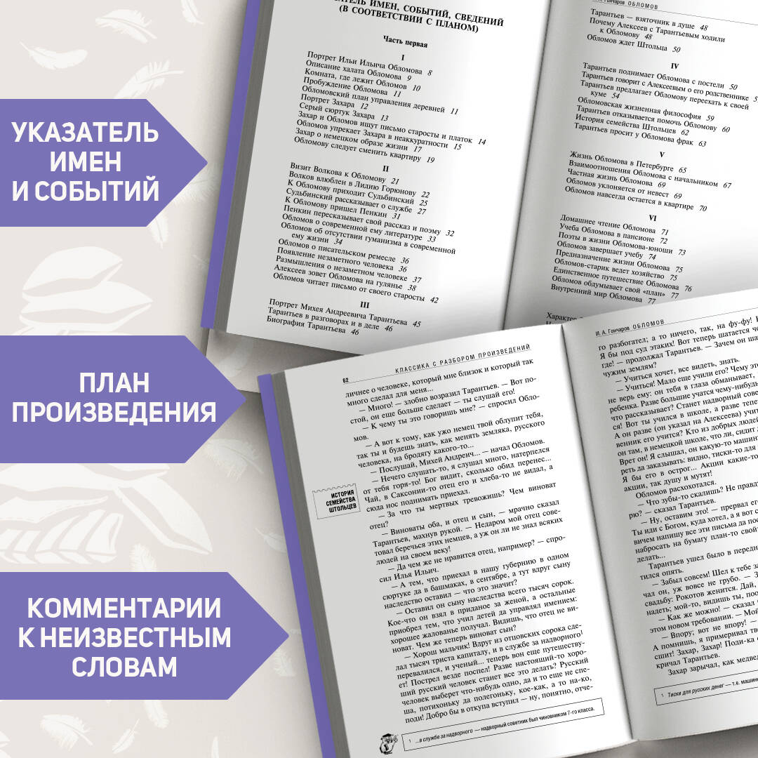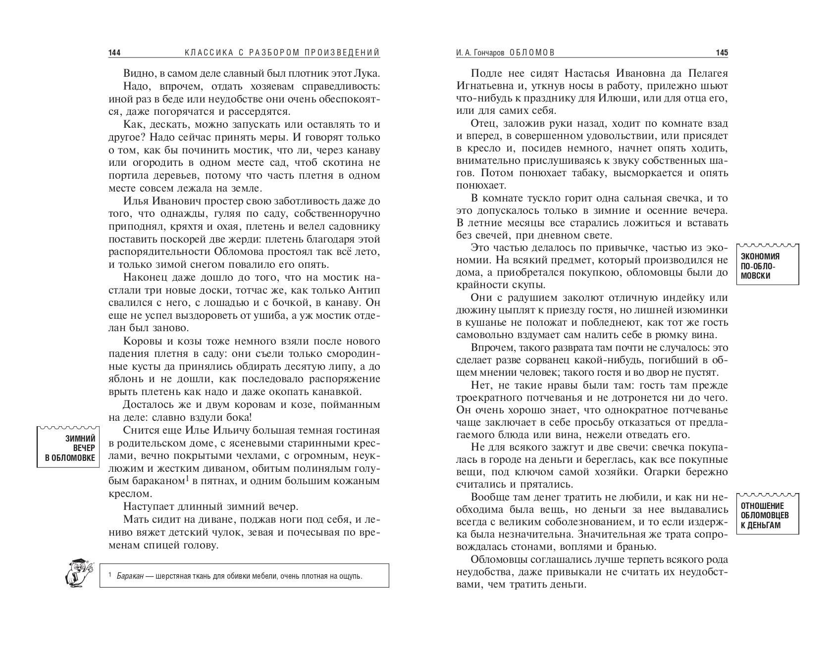 «Обломов» - известный роман И. А. Гончарова, написанный им в середине XIX века и затрагивающий острые социальные проблемы того времени. Эта гениальная книга до сих пор пользуется популярностью как среди школьников, так и среди старших поколений. Новое издание романа в невероятном оформлении с голографической фольгой на обложке станет не только незаменимым помощником в подготовке к ЕГЭ, ОГЭ, урокам литературы, но и приятным подарком для всех ценителей классической литературы. В нем вы найдете уникальные справочные материалы: заметки на полях для быстрого поиска нужного фрагмента, развернутые комментарии, где объясняются устаревшие слова и непонятные факты, историю создания произведения, указатель имен и событий. Все это поможет не только быстро и легко подготовиться к экзаменам, но и узнать новые факты, которые можно было упустить в школе. В произведении рассказывается о жизни главного героя, апатичного и ленивого Ильи Ильича Обломова, символизирующего гражданскую пассивность российского дворянства. Книга описывает его бездействие и страдания от неспособности сделать выбор между традиционным укладом жизни и большими социальными переменами. В центре романа находится противостояние «обломовщины» и активной жизненной позиции, представленной другим персонажем, Андреем Штольцом. Собрание всех книг серии «Классика с разбором произведений» в стильных обложках станет невероятным украшением домашней библиотеки. Ее яркое оформление можно будет заслуженно назвать жемчужиной вашей коллекции.