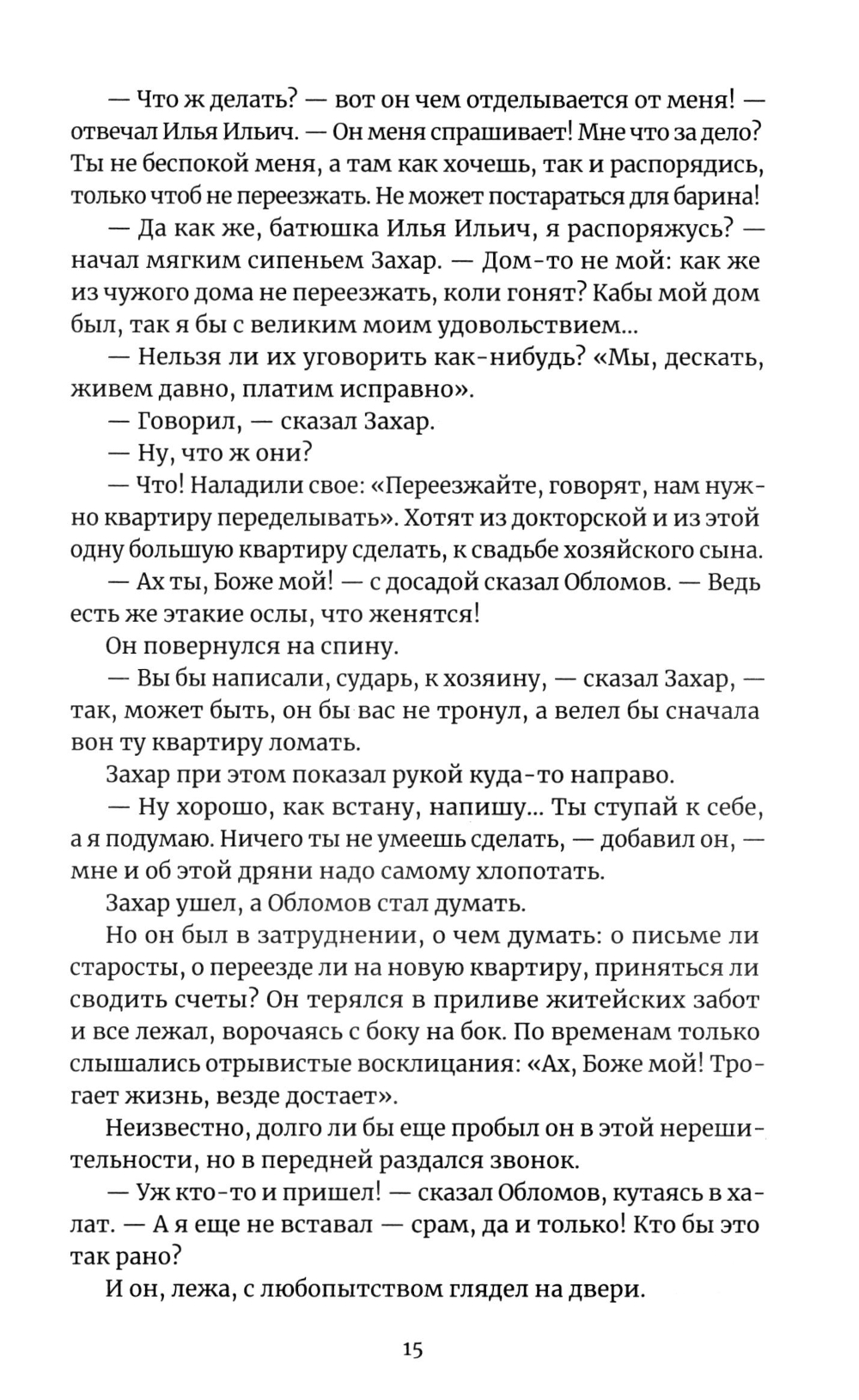 Роман «Обломов» завоевав огромный успех, спровоцировал бурные споры. Сторонники одного мнения трактовали обломовщину как символ косности России с «совершенно инертным» и «апатичным» главным героем романа. Другие видели в романе философское осмысление русского национального характера, особого нравственного пути, противостоящего суете всепоглощающего прогресса. Независимо от литературной критики, мы имеем возможность соприкоснуться с тонким психологическим рисунком, душевной глубиной героя, мягким юмором и лиризмом автора.| Издательство | Дримбук |