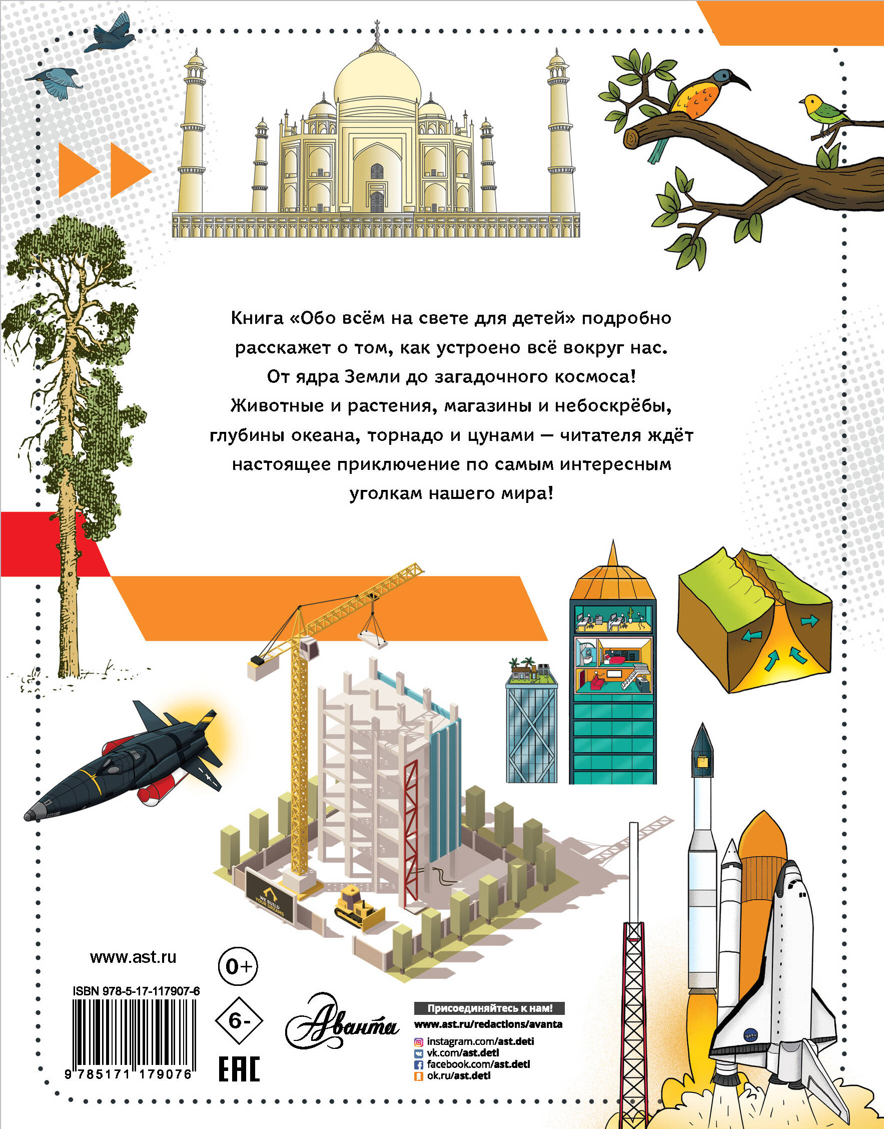 Книга "Обо всем на свете для детей" расскажет детям о том, как устроен наш мир - от ядра нашей планеты до необъятного космоса! Как устроена Международная космическая станция? Кто живет на склонах гор? Как питаются киты? Неужели и правда на крышах небоскребов устанавливают аттракционы? Автор этой книги, Кэтрин Чемберс, написала более 130 книг для детей и взрослых, она специализируется на истории, культурологии, географии и окружающей среде и с удовольствием делится с читателями своим опытом. Для среднего школьного возраста.