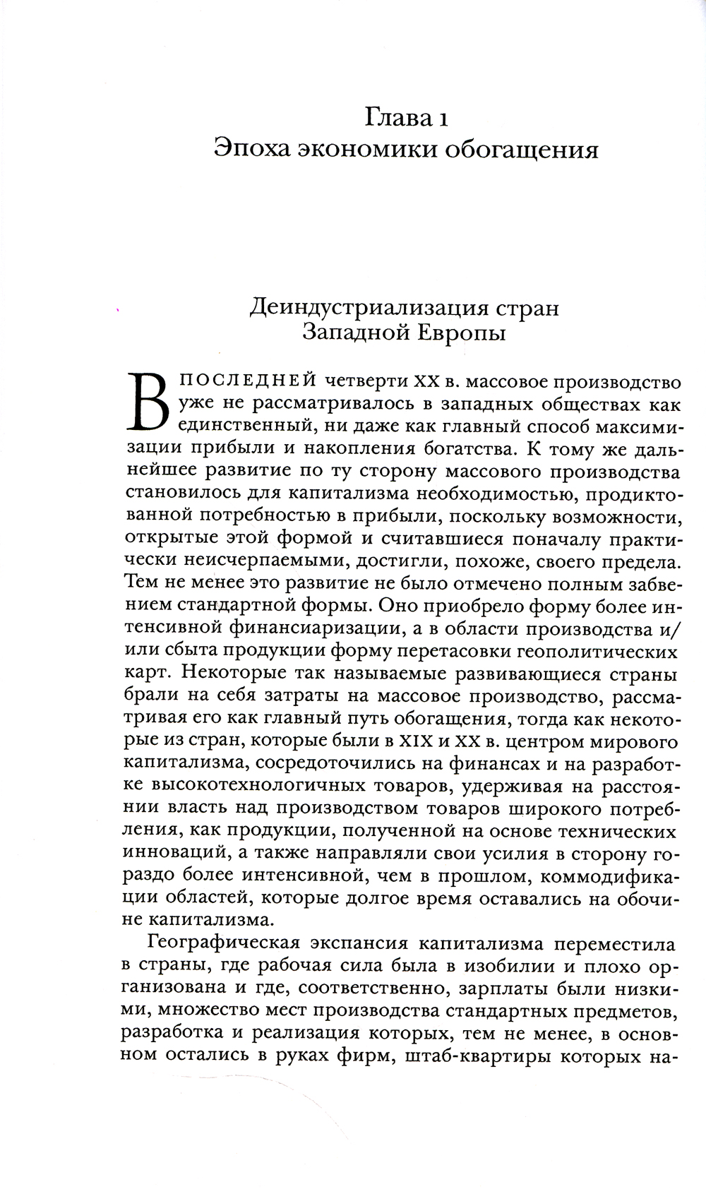 Люк Болтански и Арно Эскер воссоздают преобразование капитализма в Западной Европе начиная с последней четверти XX века, которое отмечено деиндустриализацией и усилившейся эксплуатацией ресурсов. Размах этого преобразования обнаруживается лишь при сближении областей, которые зачастую рассматриваются по отдельности: искусства, особенно пластические, культура, торговля антиквариатом, создание фондов и музеев, индустрия роскоши и туризм. Все они основаны на эксплуатации прошлого. Этот тип экономики Болтански и Эскер называют экономикой обогащения. Такая экономика основана не столько на производстве новых вещей, сколько на извлечении прибыли из торговли вещами, которые предназначены в основном богатым и которые образуют для богатых, торгующих этими вещами, источник обогащения.| Издательство | Изд. Института Гайдара |