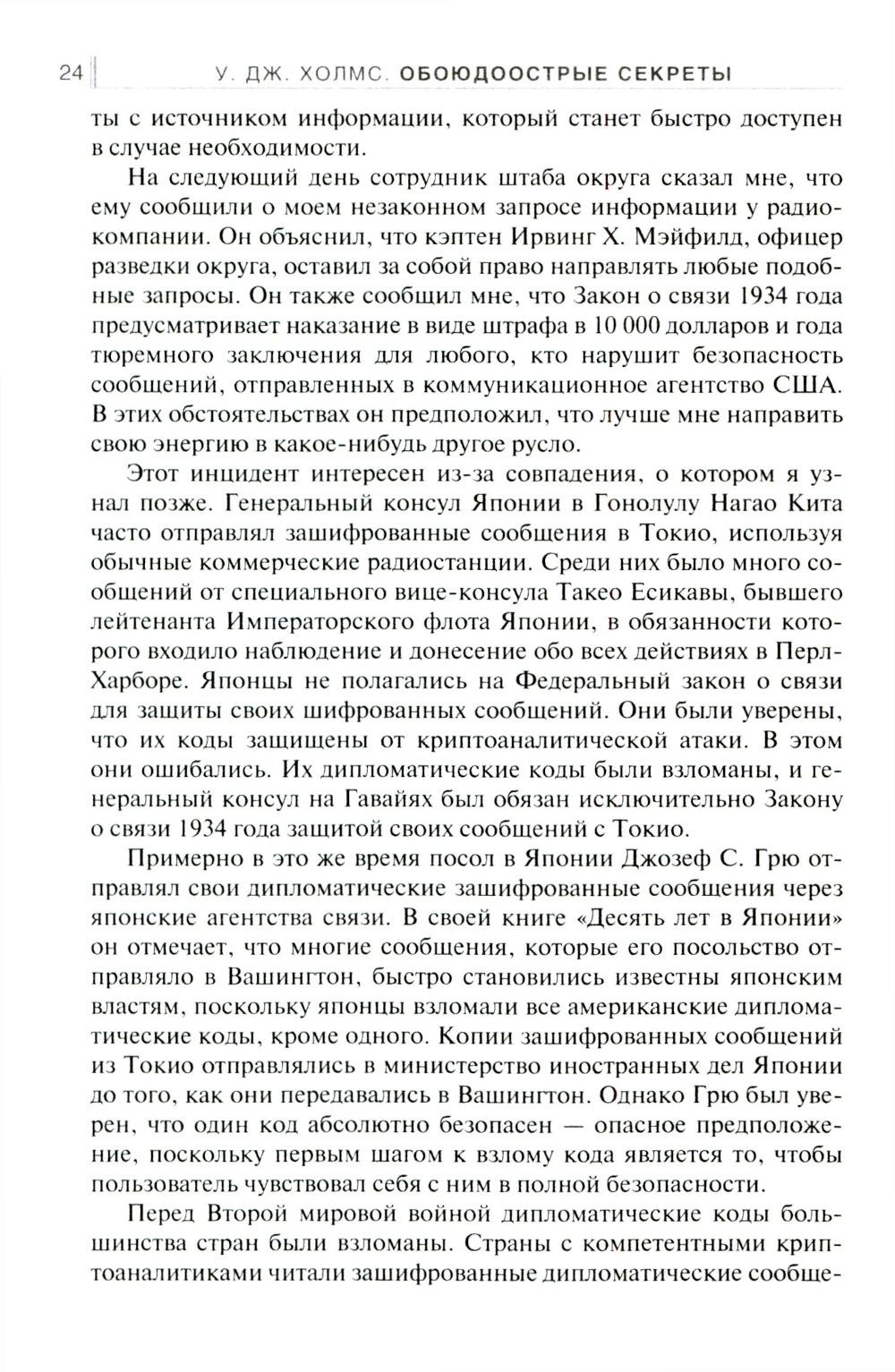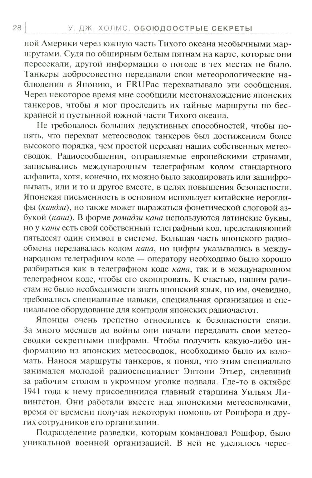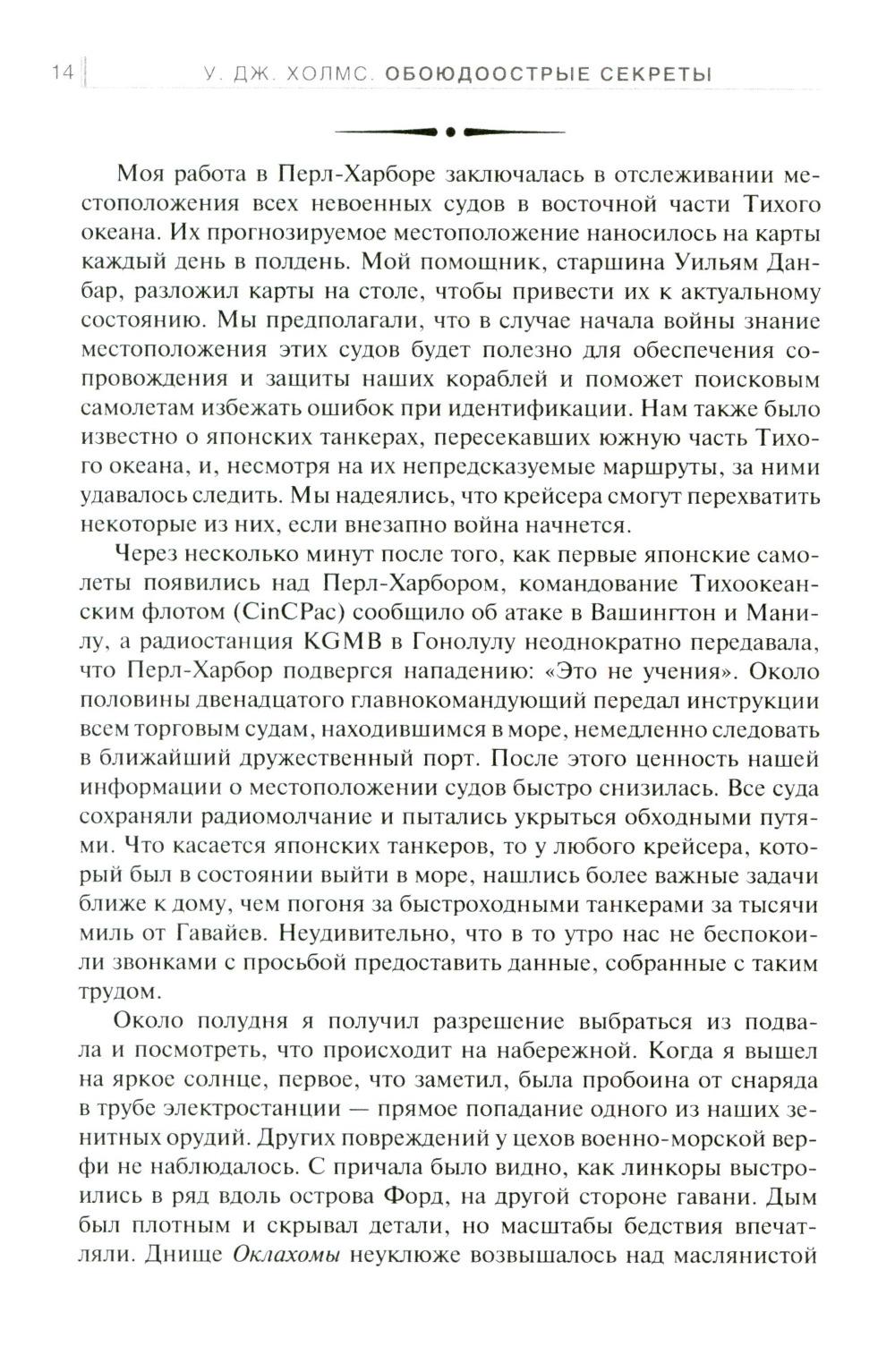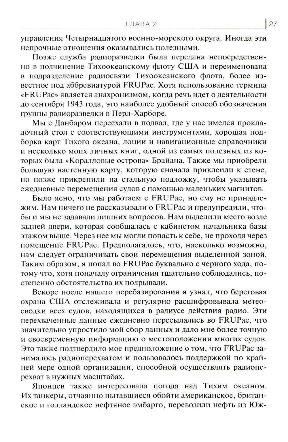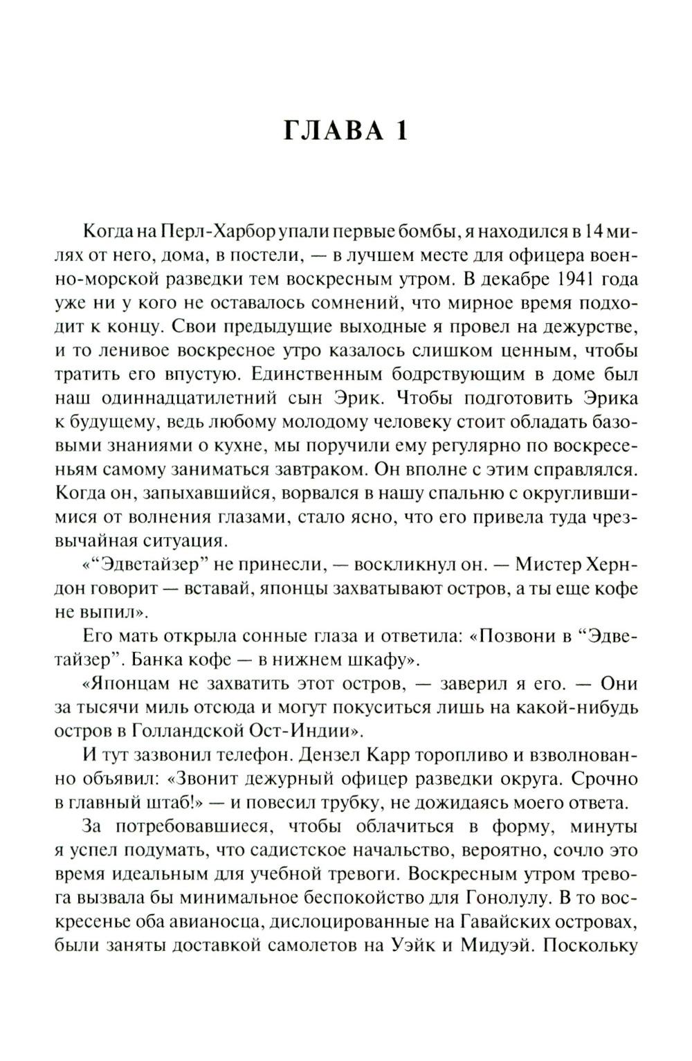 Впервые переведенные на русский язык воспоминания Холмса появились после снятия грифа секретности, через 30 лет после окончания Второй мировой войны. Это рассказ очевидца об организации, собиравшей, анализировавшей и распространявшей военно-морскую разведывательную информацию на Тихоокеанском театре военных действий. Используя уникальные знания о перехваченных японских сообщениях, Холмс привнес новые факты в историю войны на Тихом океане. Особенно это касалось таких событий, как нападение на Перл-Харбор, взлом невероятно сложных японских шифров, использование сообщений «Ультра»,битва при Мидуэе, направление подводных лодок США против японских авианосцев, американская противолодочная оборона, решение сбить самолет адмирала Ямамото. Кажется, что история Холмса - приключенческий вымысел. Однако все это реальная история, рассказанная в увлекательной и профессиональной манере.| Издательство | Принципиум |