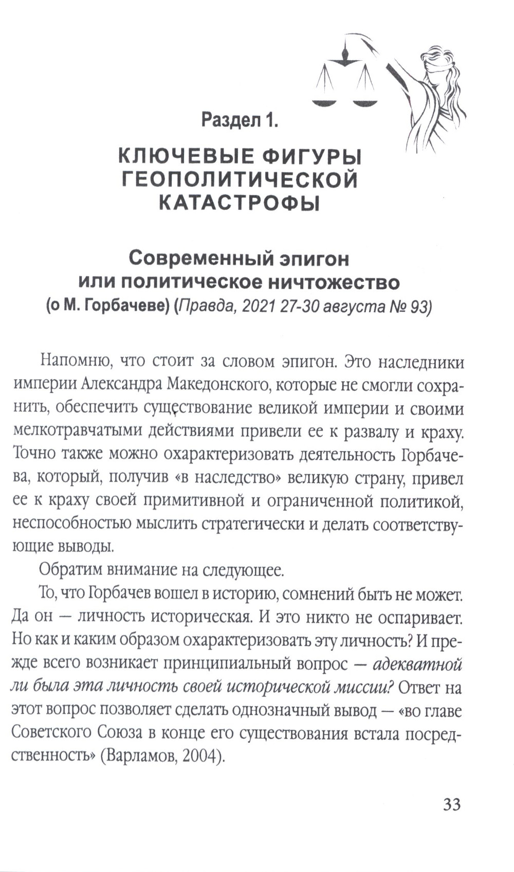 В конце ХХ века произошли трагические события, которые привели к исчезновению великой страны - Советского Союза. Их ещё называют геополитической катастрофой. Существует много попыток - от злорадных и примитивных до взвешенных и искренних - объяснить, что же на самом деле случилось тогда. Официальная точка зрения, провозглашённая сразу же антисоветчиками, пришедшими к власти в России, представила исчезновение Советской страны как нечто вполне естественное, закономерное и даже неизбежное. Но так ли это в действительности?! Свои усилия для ответов на самые сакраментальные вопросы о судьбах людей и советской страны, собранные в этой книге, объединили член-корреспондент Российской академии наук Ж.Т. Тощенко и ведущий журналист газеты «Правда» В.С. Кожемяко. Их главной целью было исследовать влияние субъективного фактора, а проще - идеологических оборотней на трагедию страны, их участие в ликвидации великого государства и потрясении жизни миллионов людей на территории, занимавшей пятую часть нашей Планеты.| Издательство | Родина |