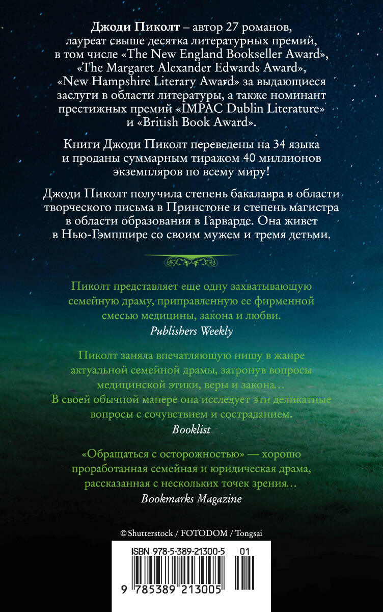 В маленьком городке в Нью-Гэмпшире живет, казалось бы, самая обычная семья: папа, мама и две дочери. Но, к несчастью, младшая дочь, пятилетняя Уиллоу, страдает редким генетическим заболеванием, и любое неосторожное движение может привести к перелому. А потому жизнь Шарлотты и Шона О'Киф состоит из бессонных ночей, растущих счетов, унизительной жалости других родителей и навязчивых мыслей о том, что, если… Что, если бы Шарлотта знала о болезни дочери до ее рождения? Что, если бы все было иначе? Что, если бы их любимая Уиллоу никогда не родилась? И насколько ценна каждая человеческая жизнь? И вот в мучительной попытке свести концы с концами, чтобы покрыть расходы на лечение дочери, Шарлотта решается на отчаянный шаг. Она предъявляет иск о неправомерном рождении своему врачу, не предупредившему ее заранее, что ребенок родится с тяжелой инвалидностью. В случае удачного исхода дела денежные выплаты смогут обеспечить уход за Уиллоу до конца жизни девочки. Перед Шарлоттой возникает сложная морально-этическая проблема, ведь врач, с которым она решает судиться, ее лучшая подруга… "Обращаться с осторожностью" - это берущий за душу роман, в котором поднимается проблема ценности человеческой жизни и того, на что мы готовы пойти, чтобы ее защитить.| Издательство | Издательство АЗБУКА ООО |