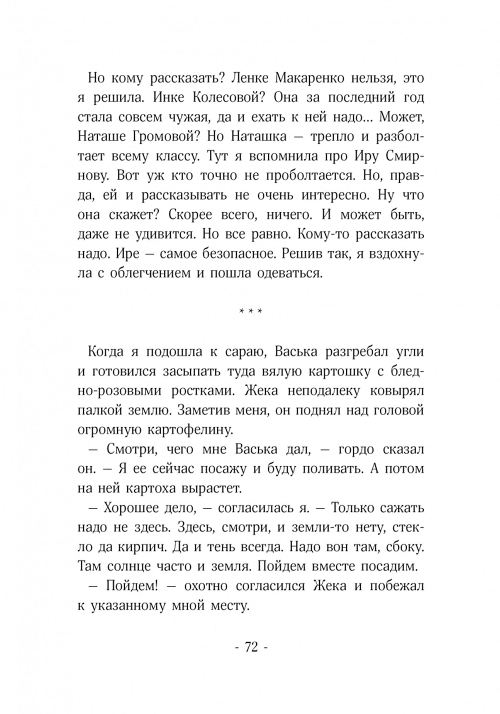 Оля переехала и перешла в другую школу. Подружиться с новыми одноклассниками пока не получается, и по вечерам девочка исследует окрестности большого вокзала - «полосу отчуждения». Это место кажется Оле заколдованной страной из книжки, пока она не встречает живущих здесь мальчишек - худого злого Ваську и маленького Жеку. А вместе с ними - целый мир сложных вопросов и незнакомые раньше чувство ответственности. Для детей среднего школьного возраста.