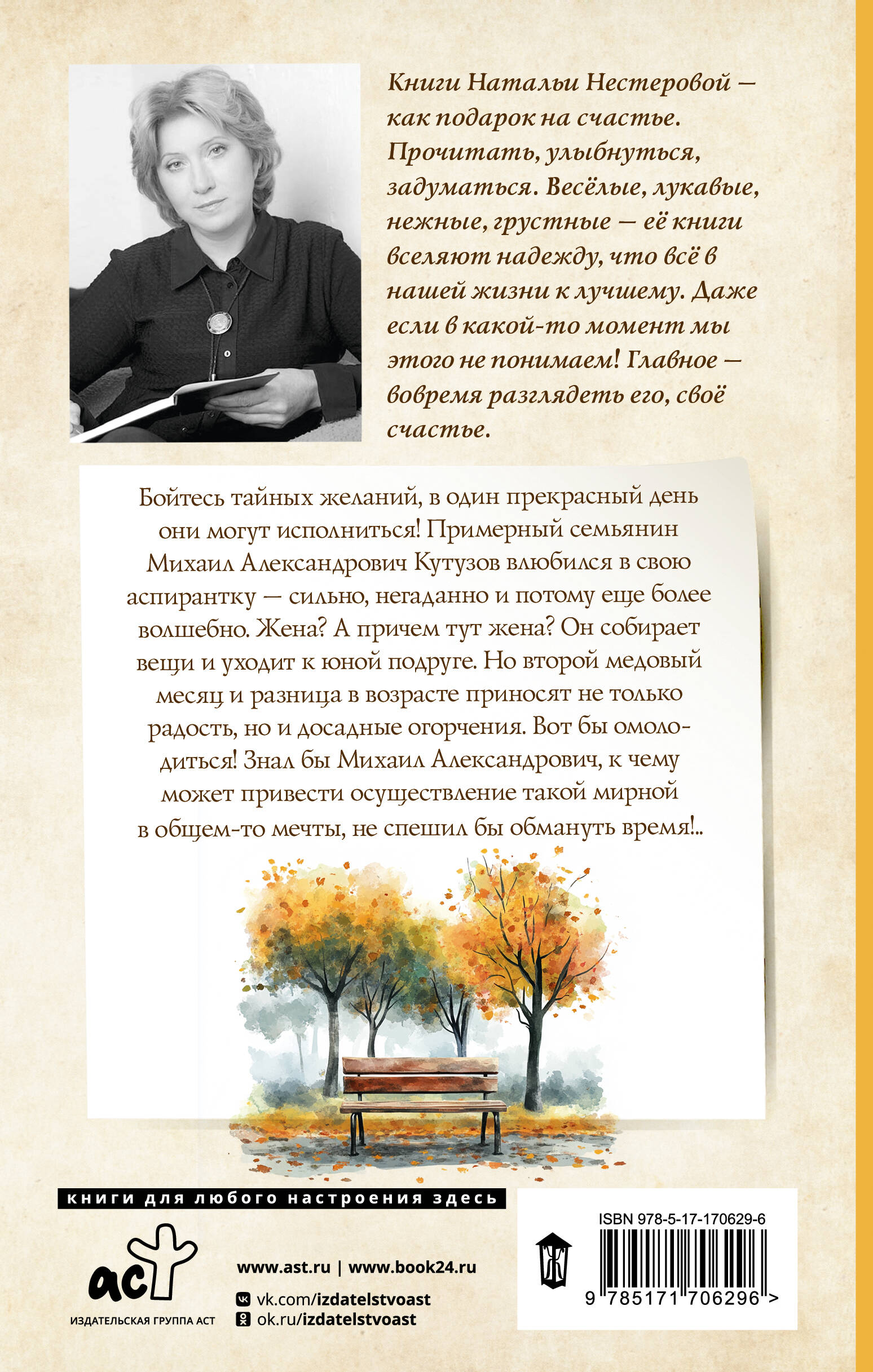 - Переиздание знаменитой фантастико-романтической истории о поиске вечной молодости в объятиях юной красотки. - Наталья Нестерова - автор проницательных житейских бестселлеров «Уравнение со всеми известными», «Позвони в мою дверь», «Бабушка на сносях» и других. - Совокупный тираж книг писательницы уже превысил 7 млн экземпляров. - Серия «Между нами, девочками. Истории Натальи Нестеровой».