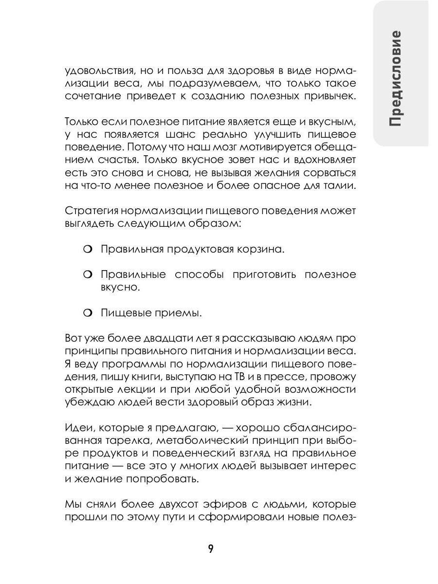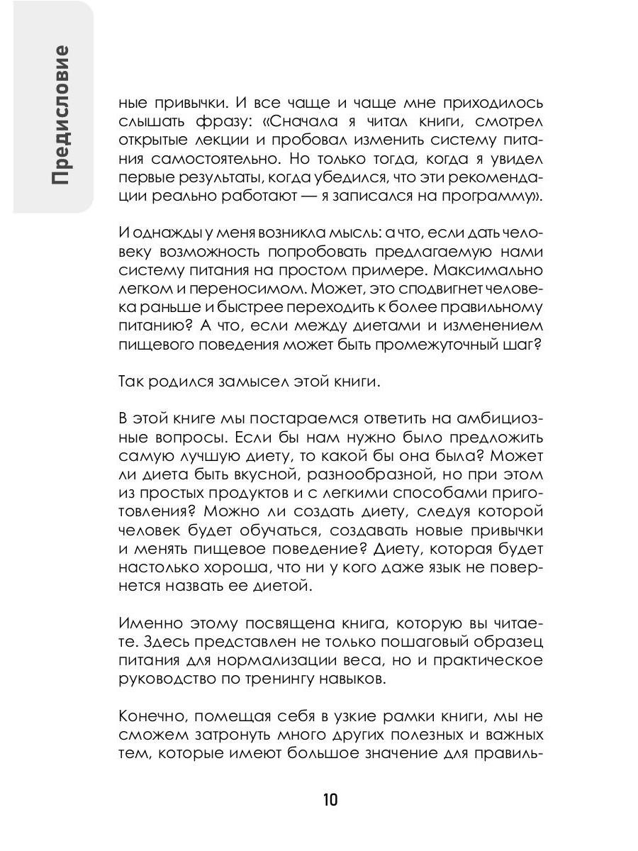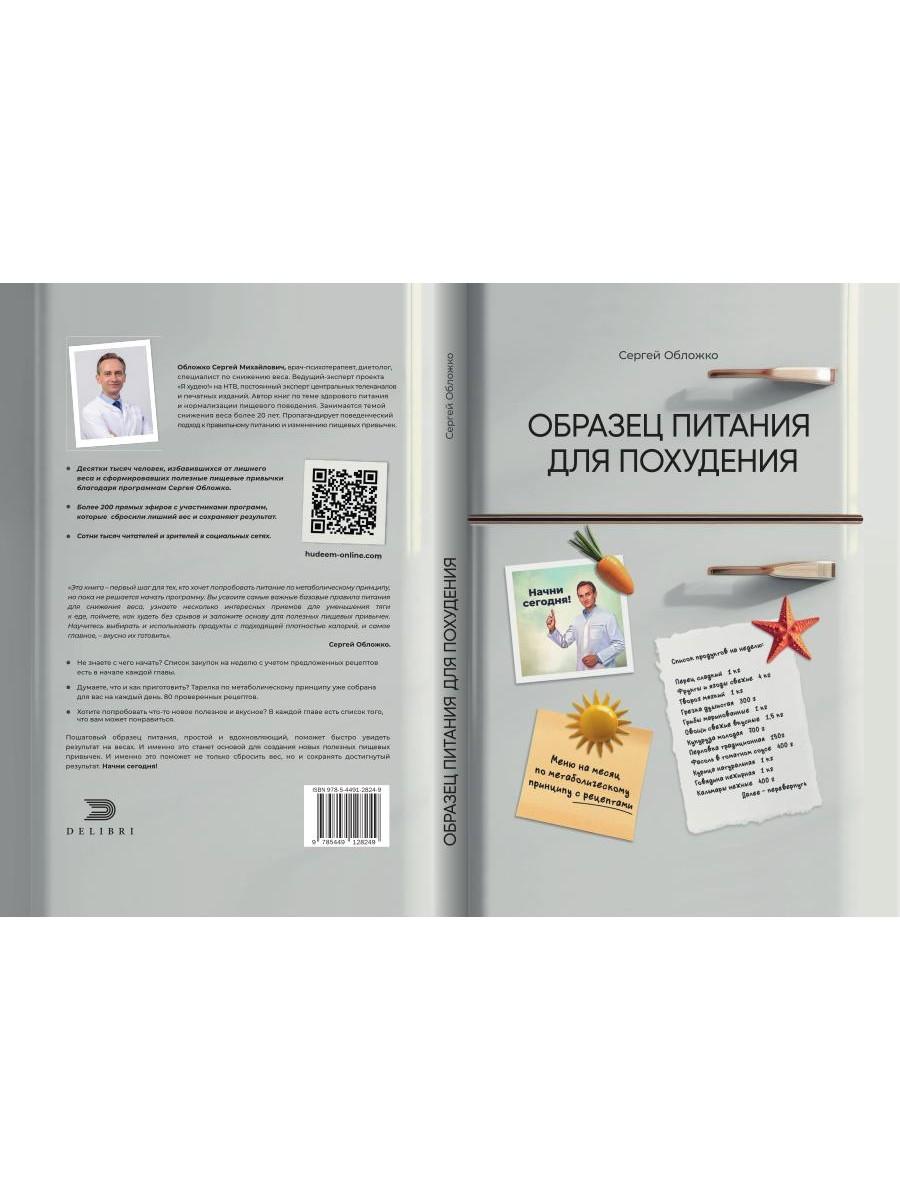 Книга врача-психотерапевта и диетолога Сергея Обложко «Образец питания для похудения. Меню на месяц по метаболическому принципу с рецептами» - первый шаг для тех, кто хочет на себе проверить эффективность разработанного автором метода и, как и сотни тысяч его учеников, за первые недели уже увидеть результат на весах. В книге приведено 80 проверенных рецептов на каждый день, представлены примеры компоновки блюд в разные приемы пищи и даны ценные рекомендации и лайфхаки по снижению тяги к сладкому, безопасным перекусам и правильным разгрузочным дням. Они вас точно удивят и обрадуют.| Издательство | Рипол Классик |